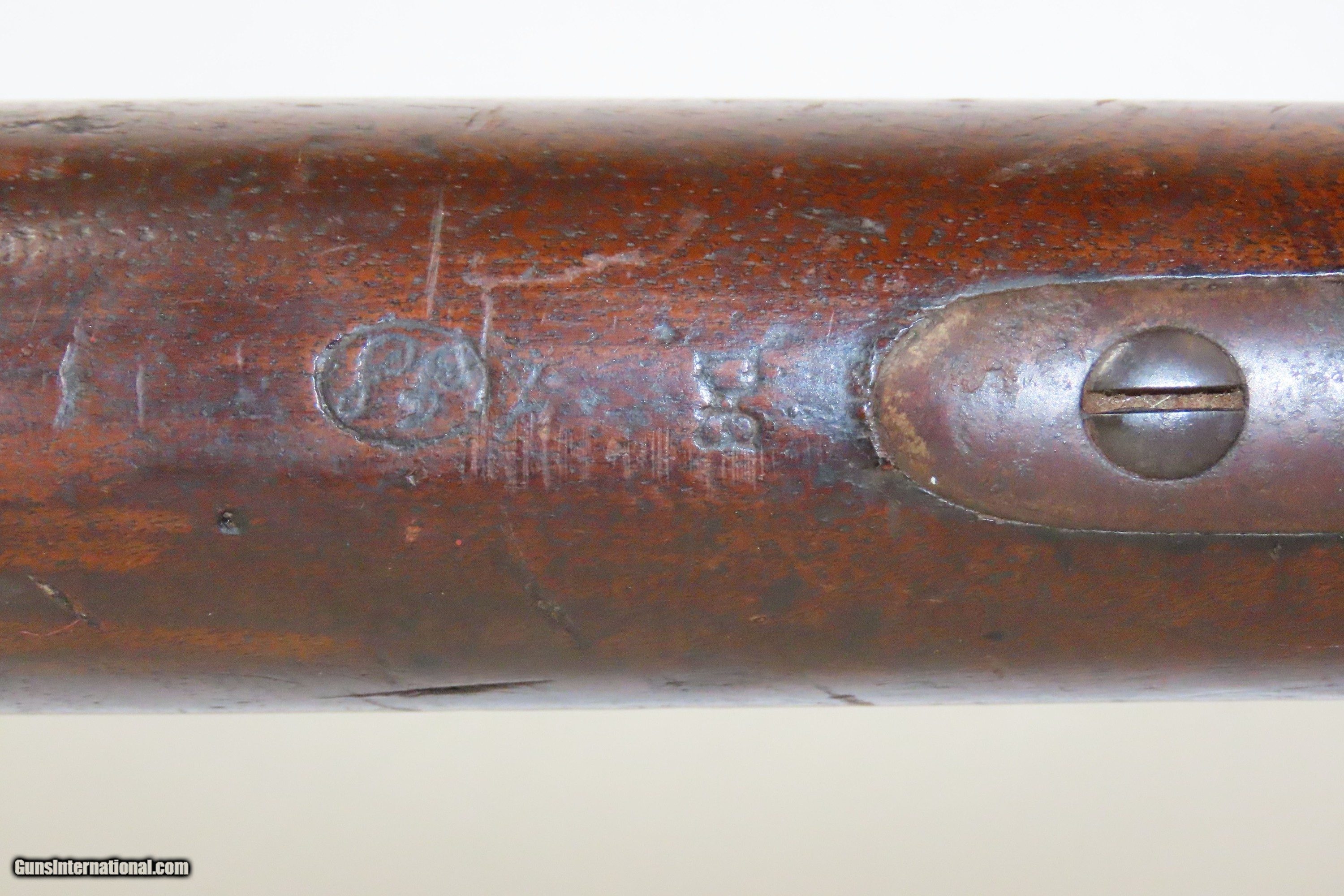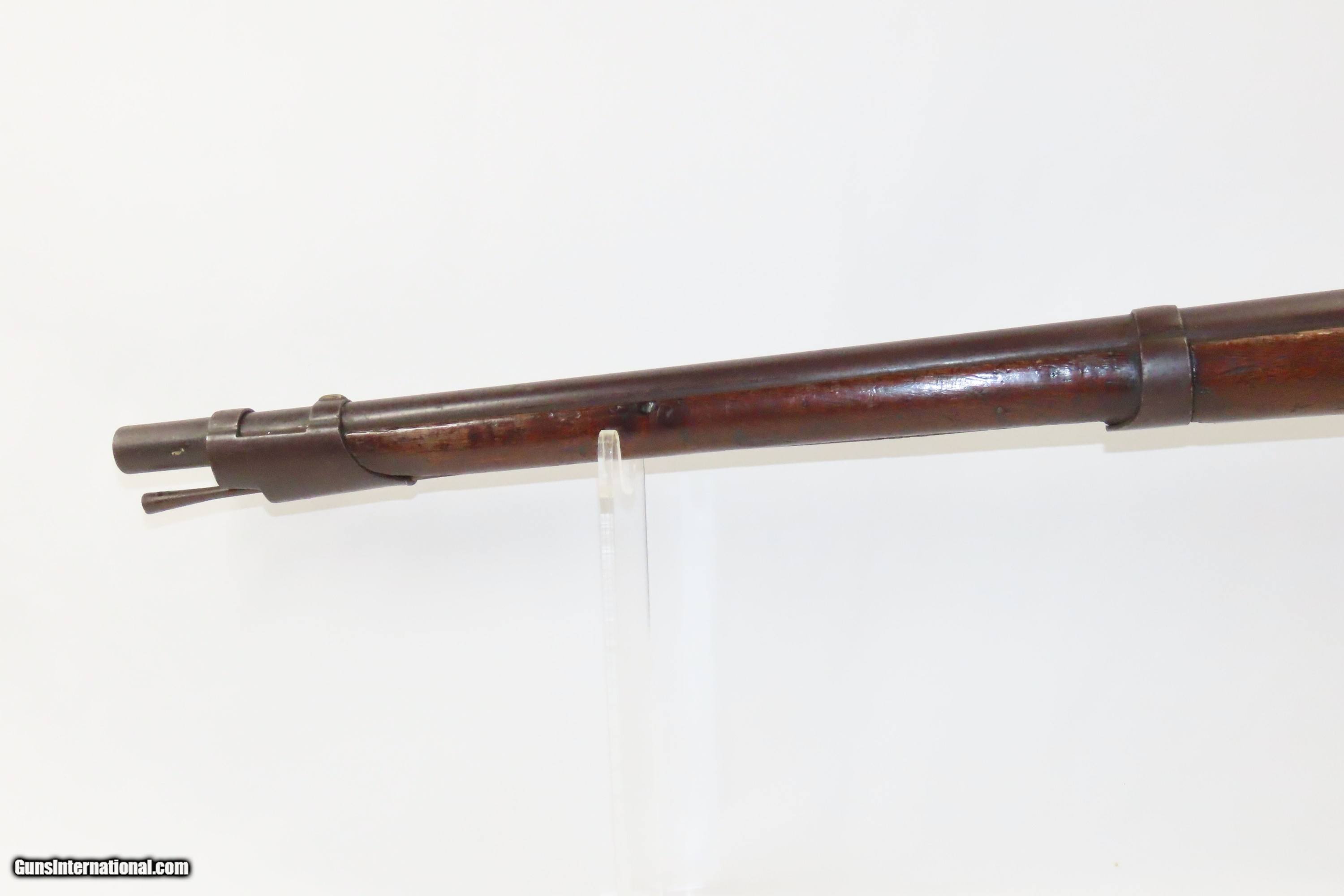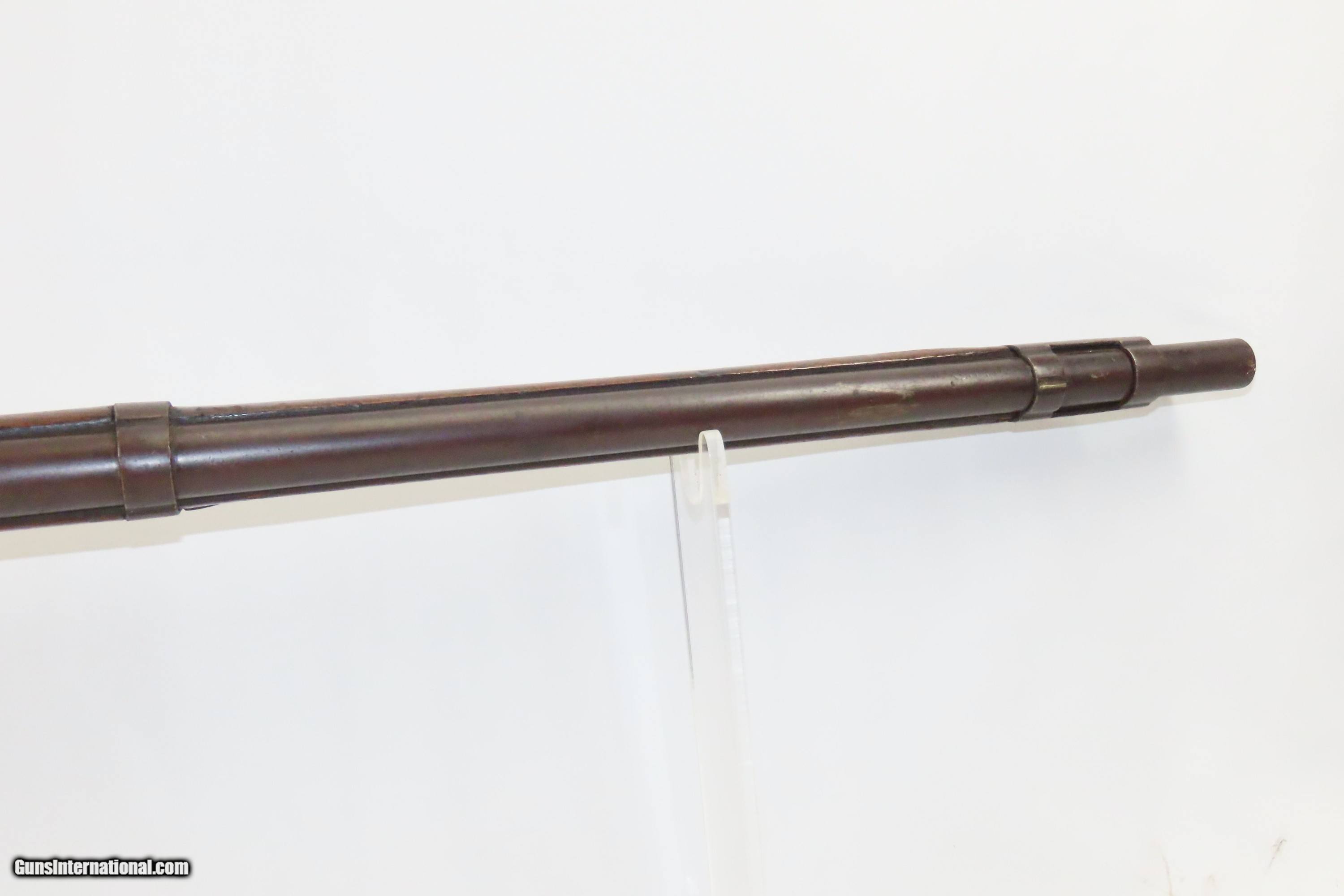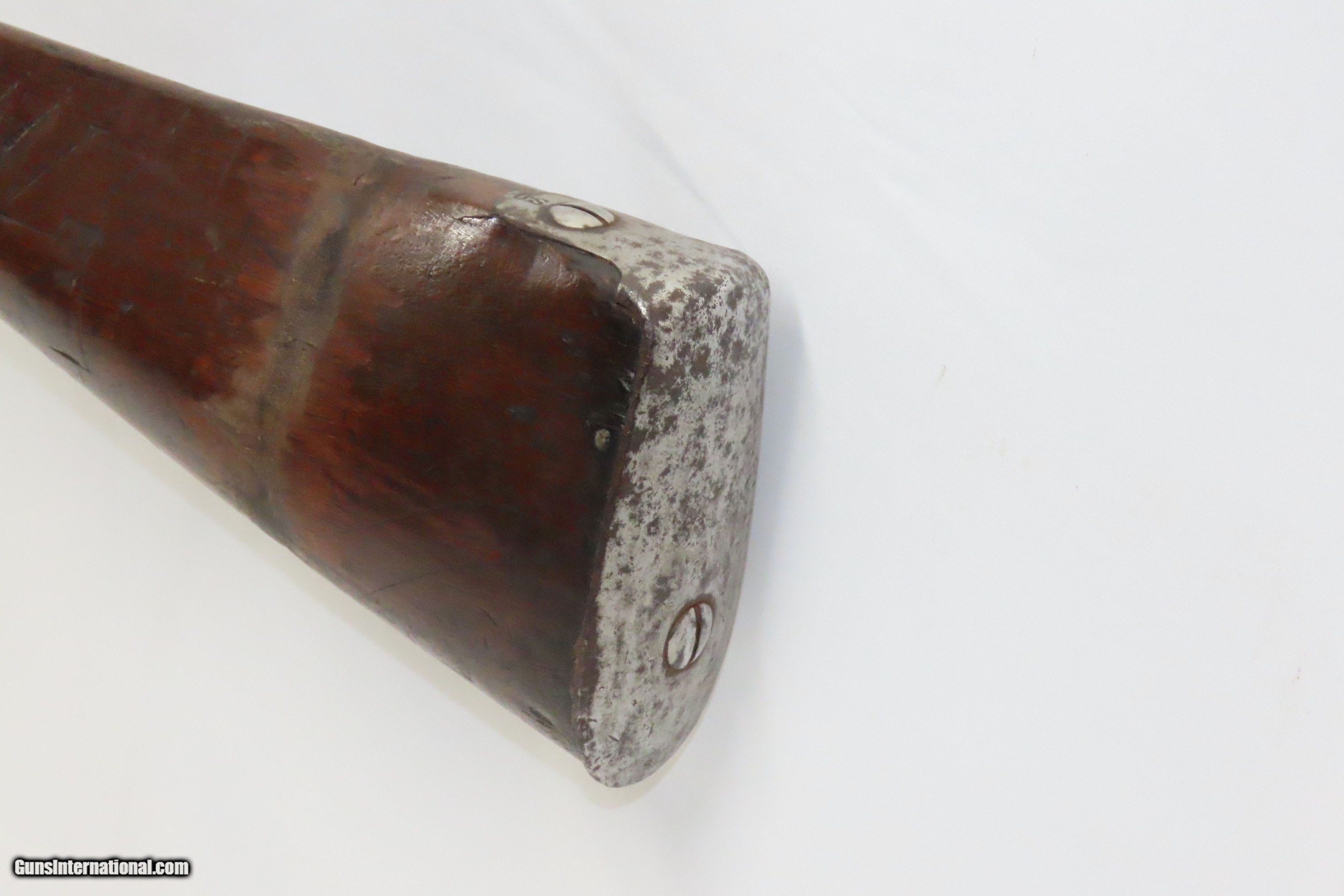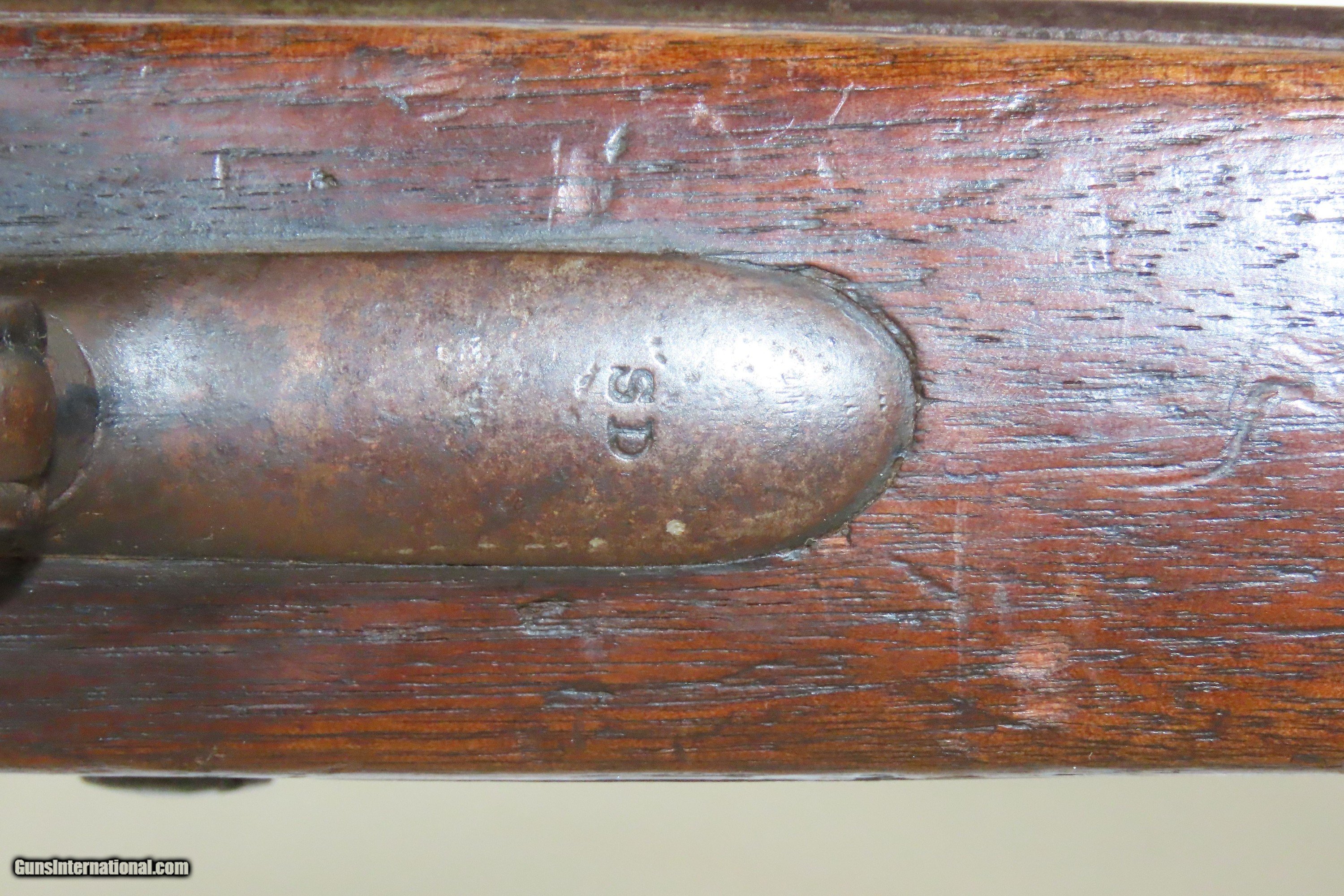 Description: Antique US SPRINGFIELD ARMORY Model 1816 Short Musket Converted Flintlock to Percussion US Military Weapon Here we present an antique Springfield U.S. Model 1816 Conversion Musket, manufactured at the armory at Springfield, Massachusetts, circa 1838. This musket would have started out life as a smoothbore flintlock and likely converted around the start of the American Civil War. The War of 1812 revealed many weaknesses in American muskets. In an attempt to improve both the design and manufacture of the musket, the Model 1812 musket was created. The Model 1816 made further improvements and replaced the Model 1812. Harpers Ferry became America’s second national armory after the site was personally selected by George Washington, with the Springfield Armory being the first. The U.S. Congress authorized the building of the new foundry in 1794, and by the following year, was producing hundreds of arms for the national army, which was primarily flintlock muskets and pistols. Inspired largely by the French Charleville Model 1777 musket, Harpers Ferry began producing the Model 1816. The M1816 was a smoothbore, muzzle loading weapon which used a .69 caliber musket ball. A trained shooter could fire between two and three rounds at a range of up to 200 yards per minute. The M1816 was in production at Springfield (325,000) and Harpers Ferry (350,000) between 1816 to 1844 with around 675,000 muskets produced during this run. It saw service during the Mexican-American War and was even pressed into service during the Civil War in both the updated percussion and the old flintlock format. In the 1850’s, many 1816’s, just as this one is, went through the conversion from flintlock to the more reliable percussion system. The advent of the Model 1842 Musket made the M1816 obsolete, but not unserviceable. Eventually, most made their way to storehouses and armories. Beginning in 1848, when more than 700,000 of all types of flintlock muskets were reported in storage, the most serviceable were converted to percussion ignition. Three types of alteration were performed. All alterations involved grinding the flash pan down and replacing the hammer. The "French Style" conversion added a drum and nipple to the flashhole. The "Belgian Style" involved plugging the vent hole with a weld and tapping a nipple directly into the barrel. This is the type of conversion that was only done at Harper's Ferry and Springfield and is sometimes referred to as an "Armory” or “Cone” conversion. The last type of conversion was used late in the renovation process, beginning about 1852, and involved adding a bolster to the breech of the barrel, so it is termed the "Bolster Style" of conversion. The overall condition is good. Shortened during the period of use. The action remains strong. The bore is smooth and patinated. The stock shows much use and maintains its inspection markings throughout. There is a stable crack on the left stock flat. There is a line of patch or filler all the way around the butt stock. Nothing moves or wobbles. Own the original! This is a legitimate antique and not a reproduction. Barrel is 29-1/4 inches. Caliber: .69 Percussion Overall condition as seen in photos. Very Fast. Very Safe. FREE SHIPPING WORLDWIDE. Delivered directly to your door by express mail! Guaranteed AUTHENTIC & Includes CERTIFICATE OF AUTHENTICITY. ancestryguns $1400 #230302 SOLD Antique: Yes |