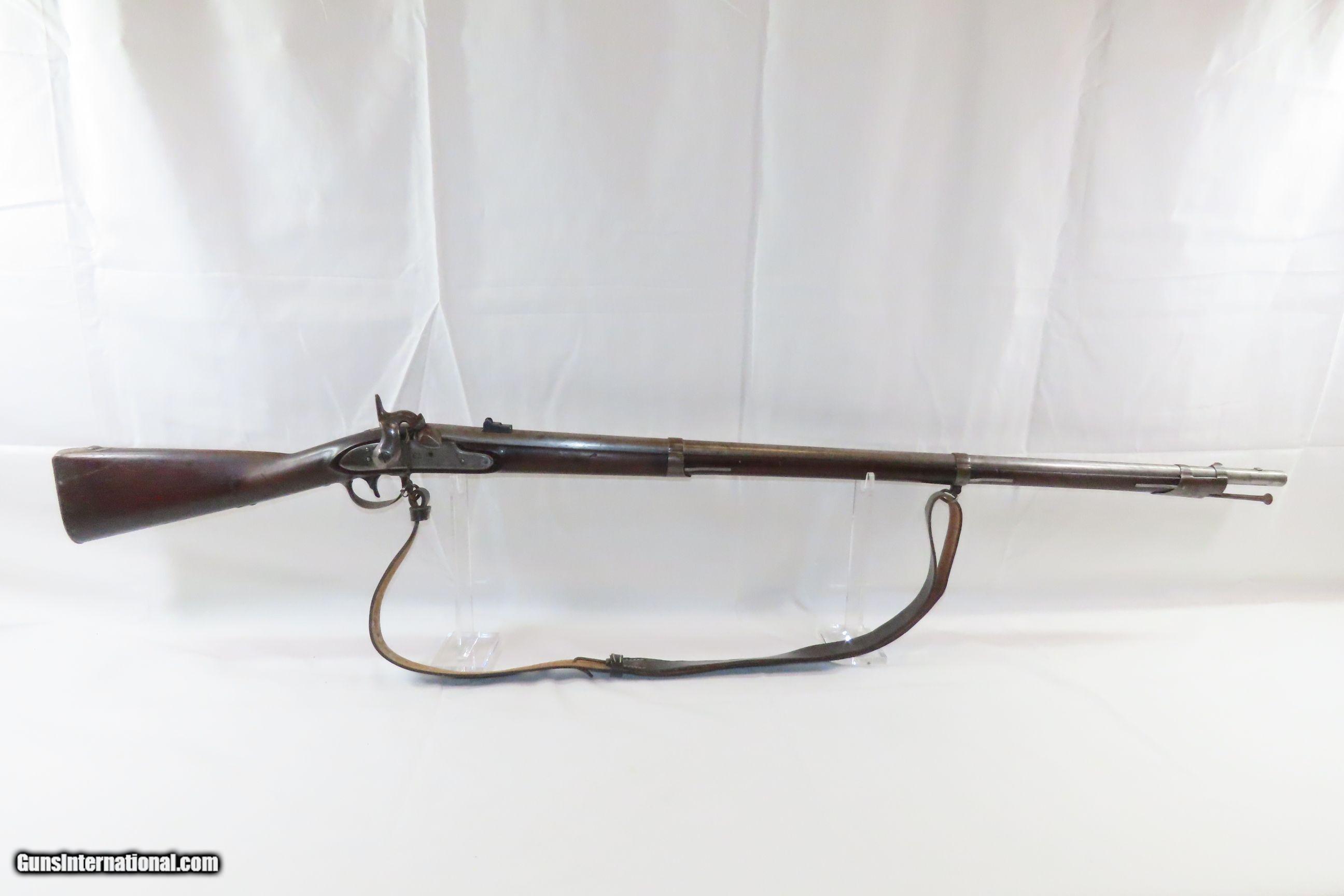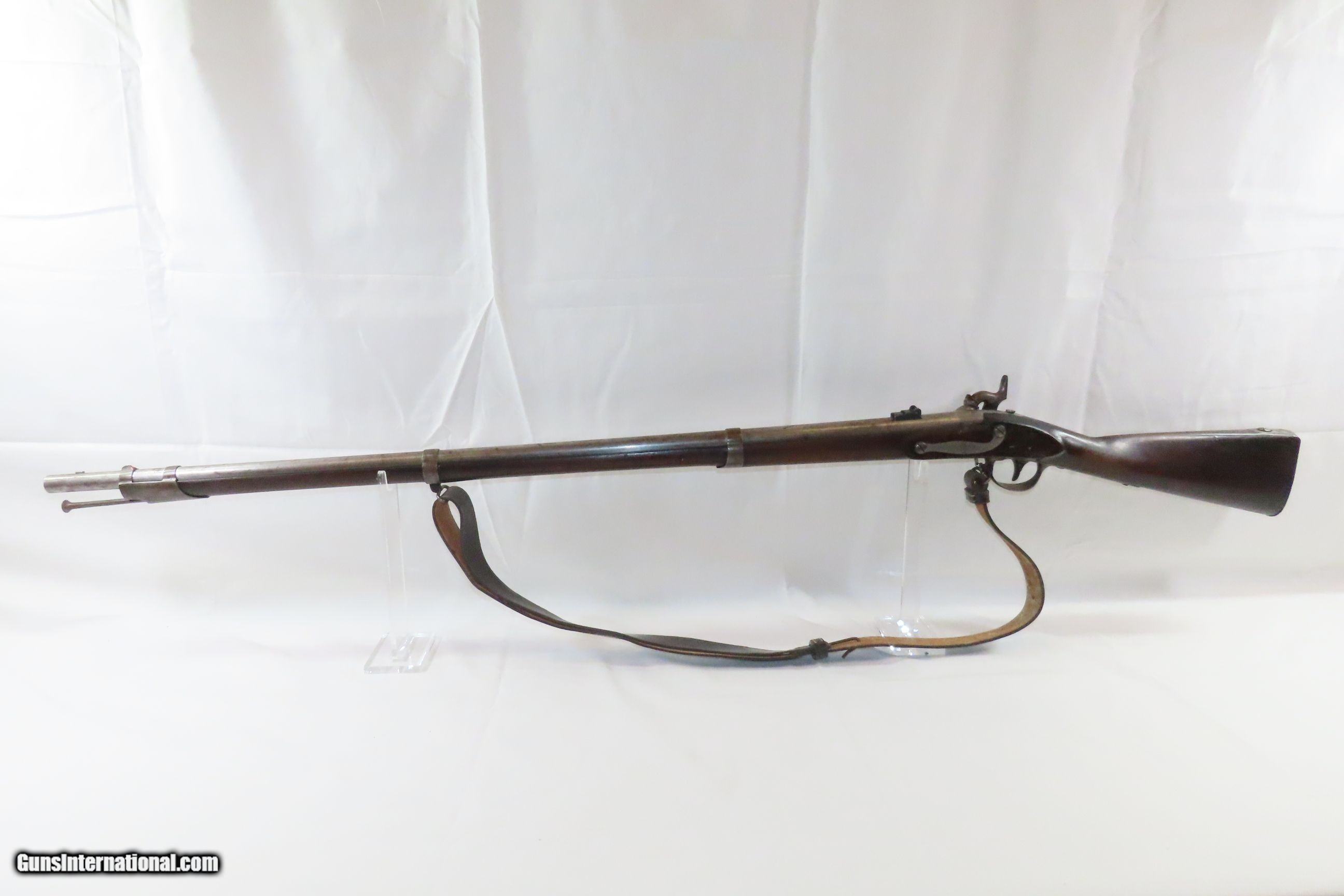 Description: H&P Antique U.S. SPRINGFIELD Model 1816 .69 Caliber Conversion MUSKET CIVIL WAR Dated HEWES & PHILLIPS Bolster Conversion Here we present an antique U.S. Springfield Model 1816 Percussion Conversion Musket, manufactured in Springfield, Massachusetts circa 1826 and was converted to the “Bolster” style” conversion from flintlock to percussion by Hewes and Phillips circa 1862, early in the Civil War. Hewes and Phillips began their business in the manufacture of steam engines in New York City in 1845 and transferred to Newark, New Jersey, the following year. After two more moves the company was settled in its Civil War location at the foot of Orange Street, facing the Passaic River. Here the muskets were converted, and some 400 hands were employed. So far, no actual contracts for the war work have been uncovered, but library sources state their first order was the 8,000 converted muskets for New Jersey Militia. These are known dated 1861. Hewes and Phillips were known to convert many muskets for other state militias using the “Bolster” conversion method. The musket work was done concurrently with that of producing motive steam machinery for the Federal Navy. The advent of the Model 1842 Musket made the M1816 obsolete, but not unserviceable. Eventually, most made their way to storehouses and armories. Beginning in 1848, when more than 700,000 of all types of flintlock muskets where reported in storage, the most serviceable where converted to percussion ignition. Three types of alteration were performed. All alterations involved grinding the flash pan down and replacing the hammer. The "French Style" conversion added a drum and nipple to the flashhole. The "Belgian Style" involved plugging the vent hole with a weld and tapping a nipple directly into the barrel. This is the type of conversion that was only done at Harper's Ferry and Springfield and is sometimes referred to as an "armory conversion." The last type of conversion was used late in the renovation process, beginning about 1852, and involved adding a bolster to the breech of the barrel, so it is termed the "Bolster Style" of conversion. The overall condition is very good. Gray patina. The action is excellent. The interior of the lock is missing a screw but does not affect the functionality. The bore is smooth and in good condition. The stock shows wear and two faint cartouches on the left stock flat; solid. The modern musket sling is in nice condition. This musket was in use by its former owner. Own the original! This is a legitimate antique and not a reproduction. Barrel is 41 inches. Caliber: .69 Percussion Overall condition as seen in photos. Very Fast. Very Safe. FREE SHIPPING WORLDWIDE. Delivered directly to your door by express mail! Guaranteed AUTHENTIC & Includes CERTIFICATE OF AUTHENTICITY. ancestryguns $1800 #227573 SOLD Antique: Yes |