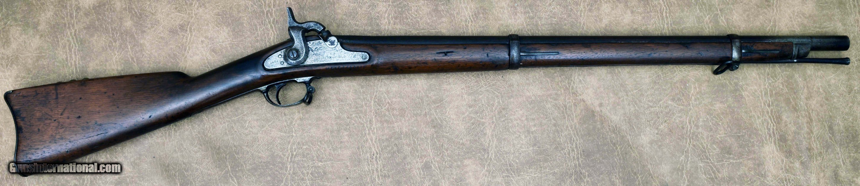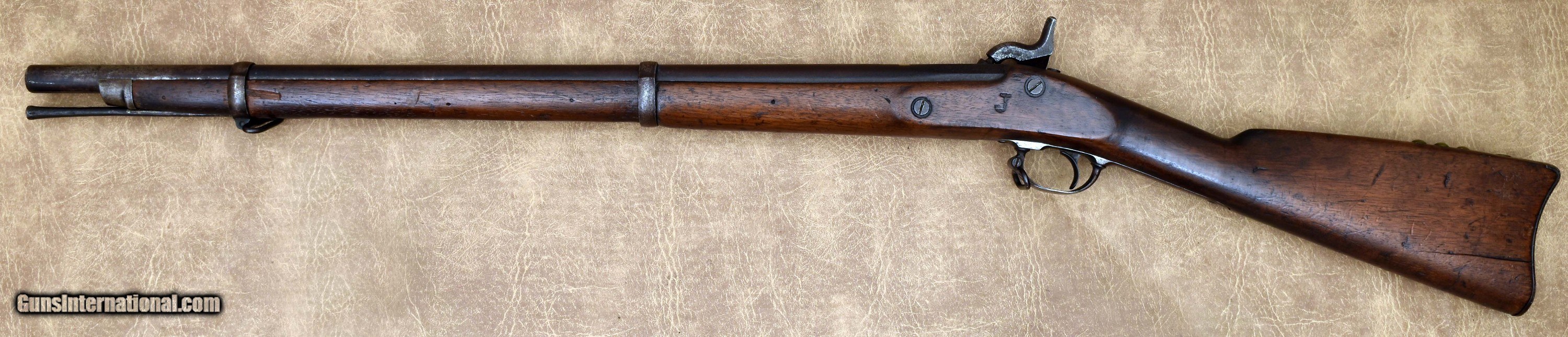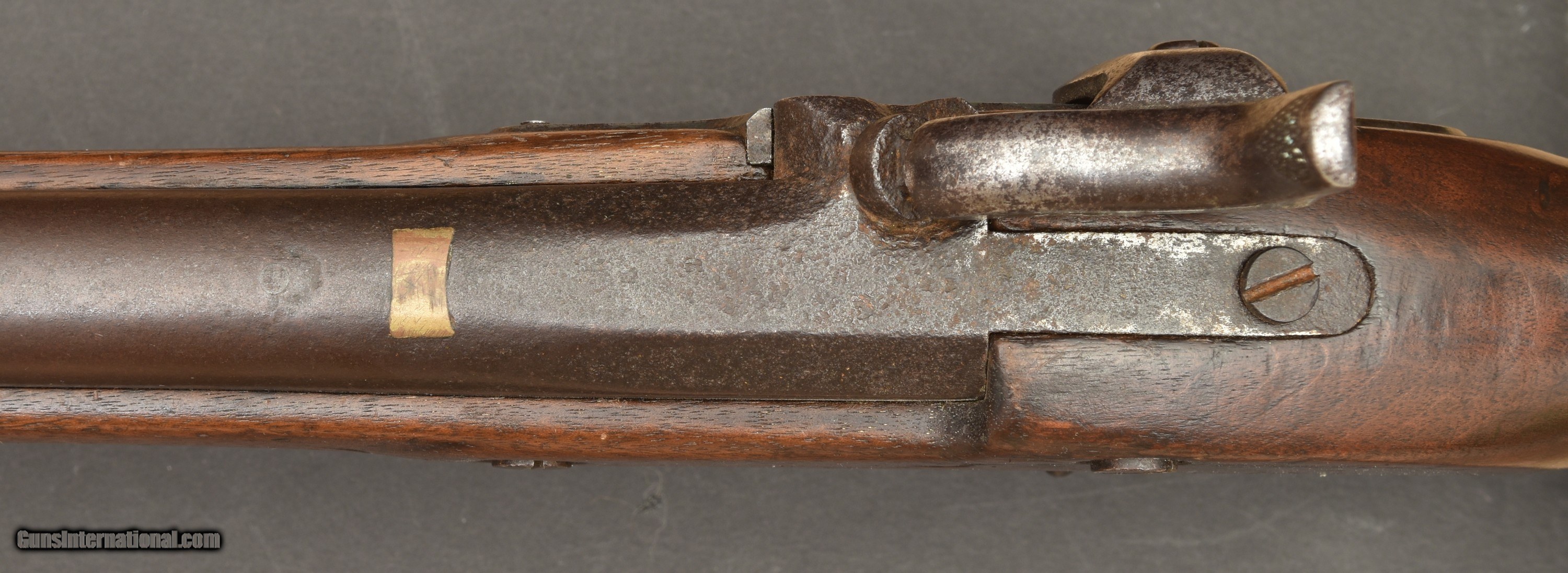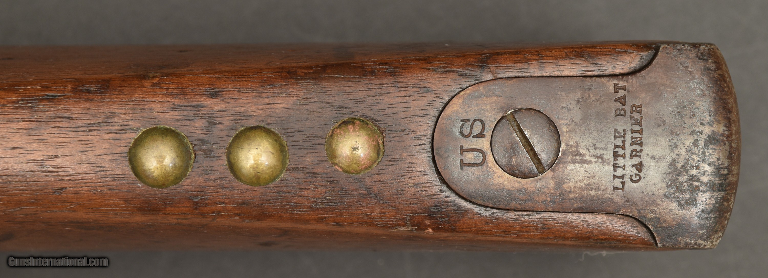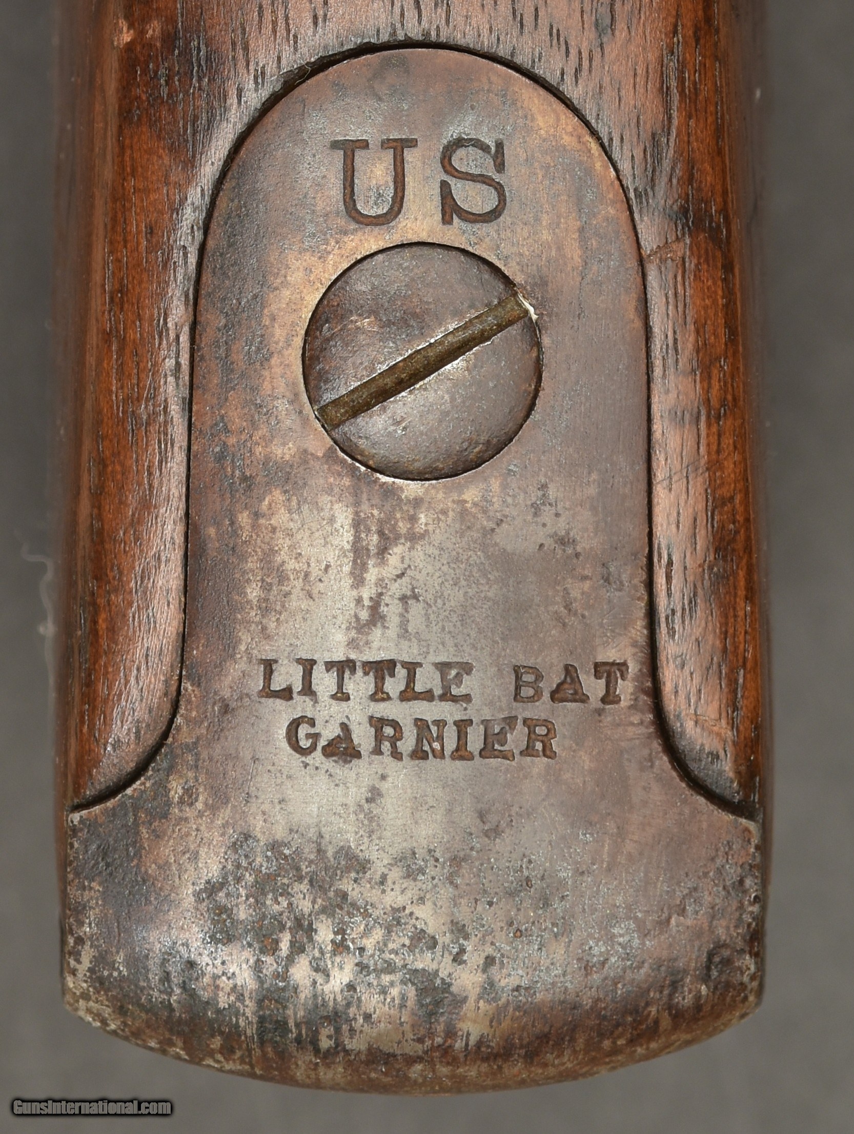 Description: Historic U.S. Model 1863 Rifle Musket Attributed to Chief of Fort Robinson Scouts, Baptiste “Little Bat” Garnier - 2nd Type "Model 1864" mfg. circa 1864-1865; .58 cal; single shot muzzleloader; 28” round barrel with solid barrel bands fastened by springs; missing rear sight with bronze blank in dovetail slot; flared ramrod; right side lockplate marked with eagle, "U.S.", "Springfield", and "1864" behind hammer; top of buttplate marked "U.S.", “LITTLE BAT / GARNIER”. See photos for condition. The U.S Model 1863 Type II, also known as the Model 1864, was the U.S. Army's last regulation muzzle-loader. Over 250,000 rifle-muskets of this pattern were completed at Springfield Armory, and these long arms saw extensive use in the last year of the Civil War. The Type II is nearly identical to the Model 1863 Type I, but saw a return to band springs rather than screws as a means to secure barrel bands. The barrel bands themselves were solid rather than split, as in the Type I. In addition, a single-leaf rear sight replaced the earlier two-leaf sight, and some parts which had been blued on the Type I were without finish on the newer design. Baptiste Garnier, known by friends and comrades as ‘Little Bat,’ was a scout and interpreter for the United States Army at Fort Laramie and Fort Robinson. In Fifty Years on the Old Frontier, author James H. Cook stated that Garnier was one of “the best-known army scouts and interpreters in the land of the Sioux.” U.S. Army Scout Frank Grouard noted that: “Little Bat was the greatest hunter that he ever met, and that he could outrun the fleetest horse in a long-distance contest. He has known him to start out after a band of elk, shoot them as he ran, and followed them until he had killed every last one in the band. He was an excellent shot, and never wasted ammunition. Cool and brave, he made a dangerous enemy, but a royal good friend.” Although Garnier’s father was French, he lived amongst his mother’s people, the Sioux. ‘Little Bat’ was well thought of by those who knew him and he was considered one of the best interpreters and big game hunters in the Rocky Mountain region of the Nebraska Territory. Garnier was “good natured and even tempered at all times… [and] a fine specimen of manhood.” His “honesty and fearlessness were never questioned,” and his skill as a hunter and knowledge of Sioux culture made him invaluable as a government scout. Both his wife, Julia and his sister Eulalia were artists noted for their great sewing and beading skills. The Chief of Fort Robinson Scouts, Baptiste “Little Bat” Garnier was shot by James Haguewood, bartender, in this building known as Dietrich’s Saloon, December 16, 1900. “Little Bat” died near the center of the street intersection about 3 a.m. and was buried at the Fort Robinson cemetery. The record of death and interment states: “Deceased was brutally shot while wholly unarmed and without cause or justification.” On a plea of “self-defense,” Haguewood was acquitted. Garnier served his country well in bringing peace to the frontier. SOLD Antique: Yes Rifle Caliber: .58 |