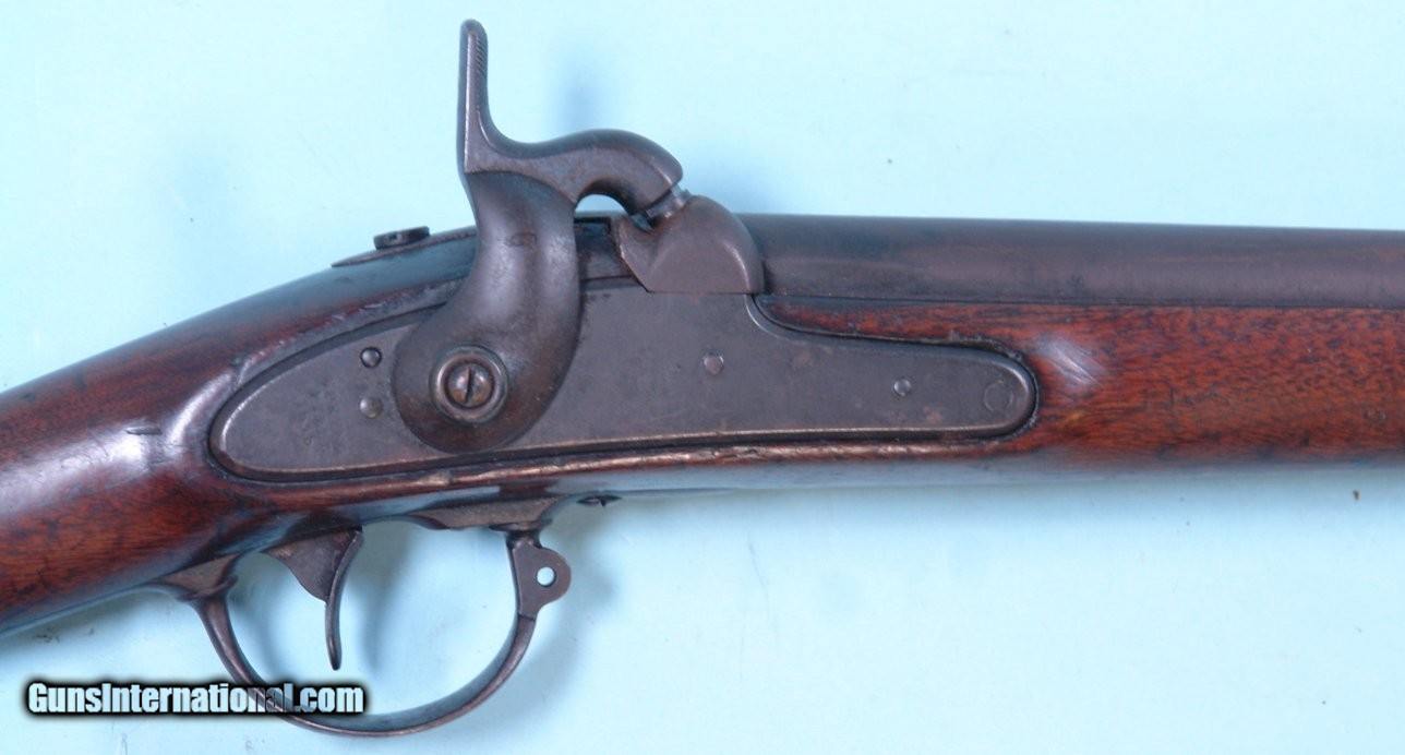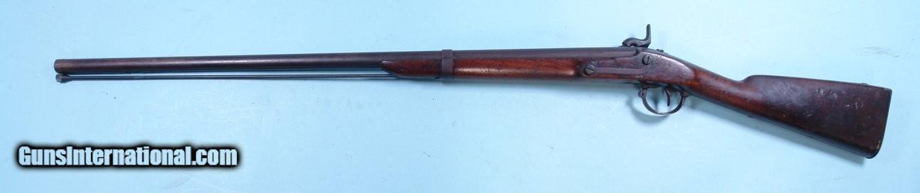 Description: MEXICAN WAR SPRINGFIELD U.S. MODEL 1842 ALTERED PERCUSSION MUSKET DATED 1846. Barrel shortened to 34”. Forend shortened and ramrod a modern replacement. Otherwise original with nice lock markings on lock with Springfield Eagle and “US”. Barrel with Springfield “V//P/EAGLE HEAD” proofs at left breech. Visible ordnance cartouche on side panel. Lock in working order and nice old original metal and stock finish. Reasonably priced. SOLD Antique: Yes |