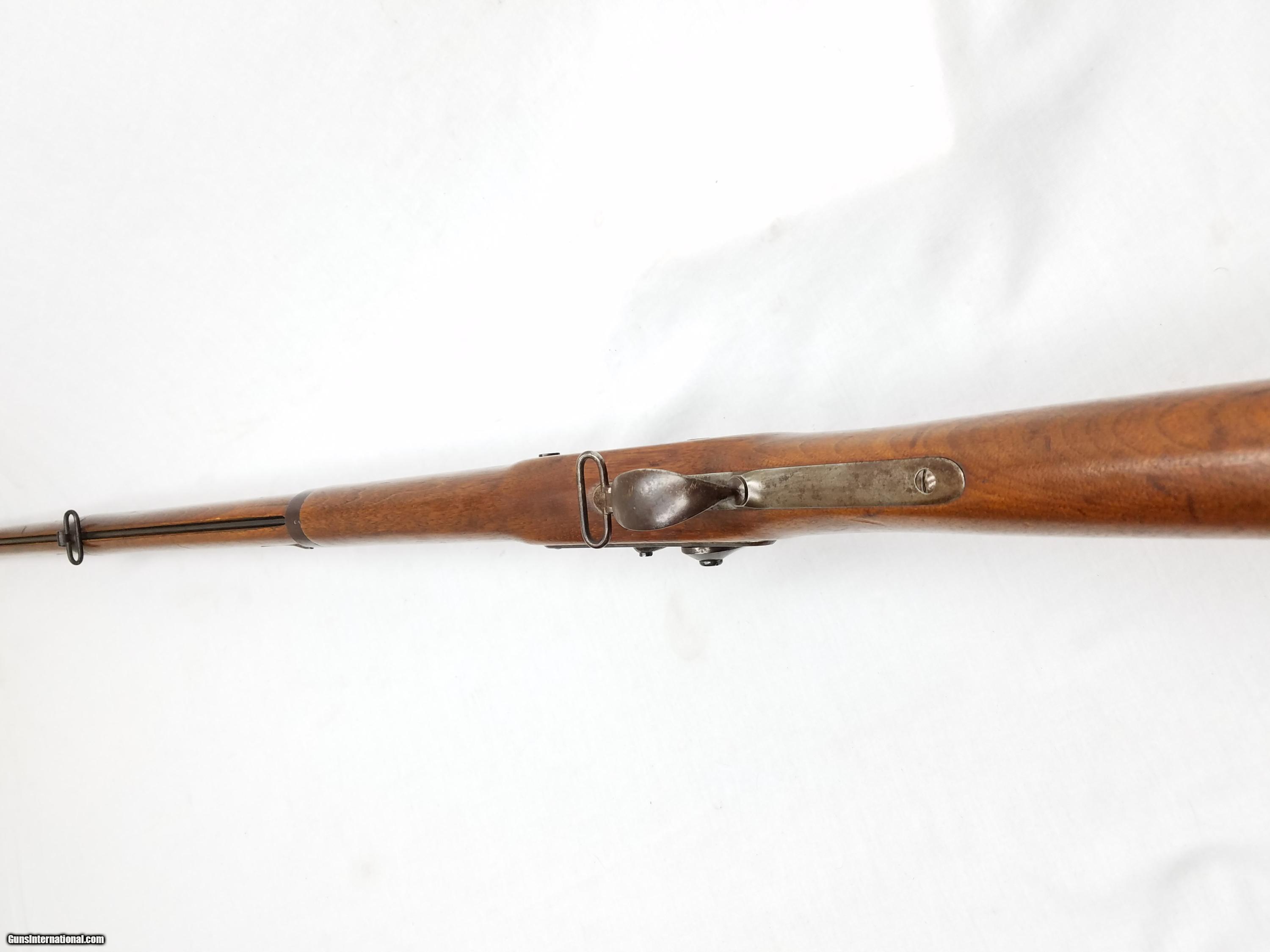 Description: This .60 caliber Original - Springfield - Model 1862 - Musket has a tapered round 1-1/16" to 3/4" x 39" smooth bore barrel with an adjustable folding leaf rear sight. The P grade Walnut stock is fitted with iron furniture, including the metal ramrod. The large military percussion lock with Springfield 1862, a spread eagle and US stamped on the lock plate, is activated by a single trigger. Please Note: The original rifling was bored out by a previous owner. Length of pull is 13-3/8", overall length is 56”, and weight is 7.8 lbs. Good wood to metal fit - made by the Springfield Armory. Condition: Good. Our stock number #P-97-78. Willing to ship anywhere in the US, buyer pays freight and insurance. SOLD Manufacturer: Springfield Caliber Info: 60 black powder Metal Condition: good Wood Condition: good Bore Condition: good Barrel Type: round Action: percussion Stock: walnut LOP: 13-3/8 Finish: patina, blue Weight: 7.8 lbs |