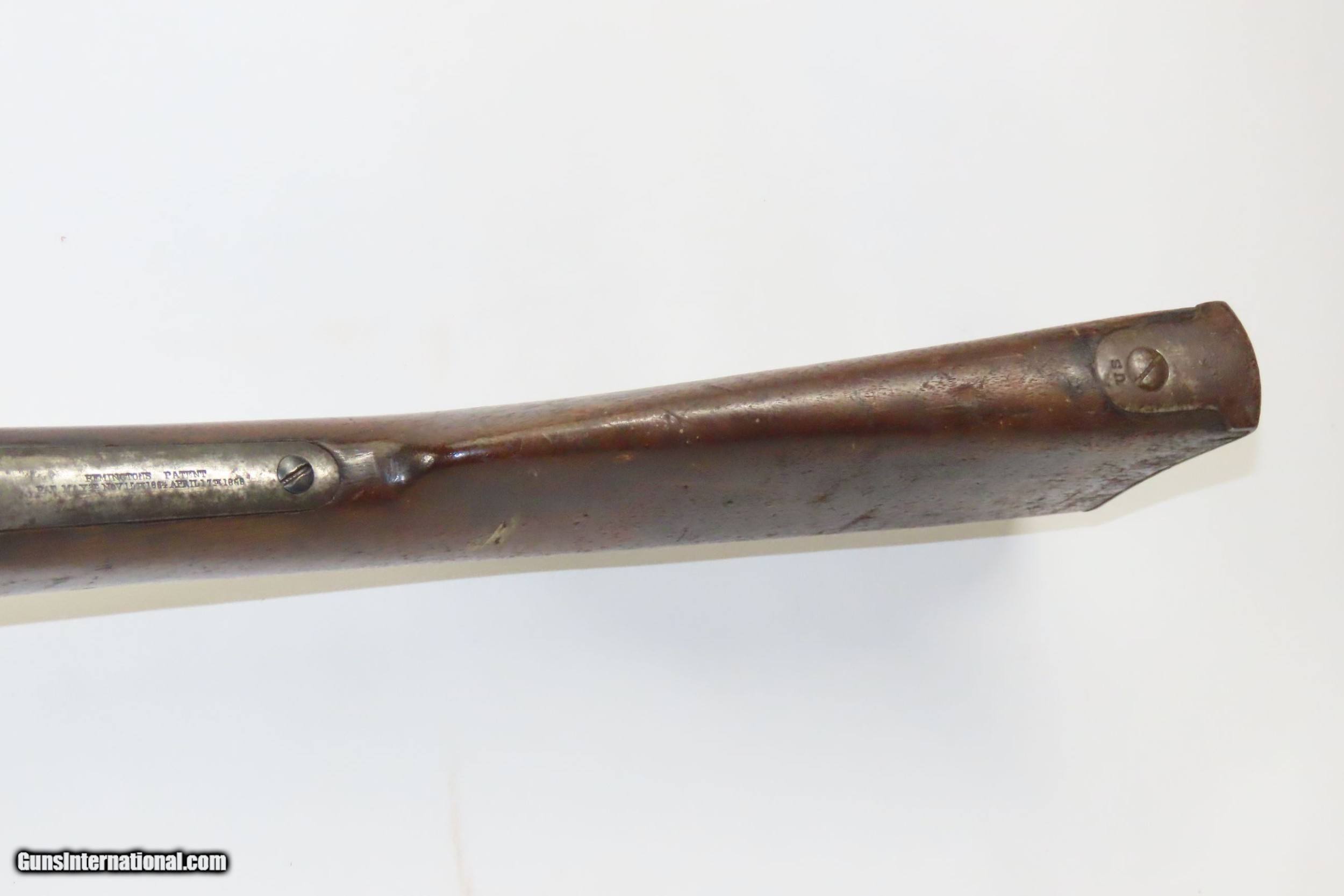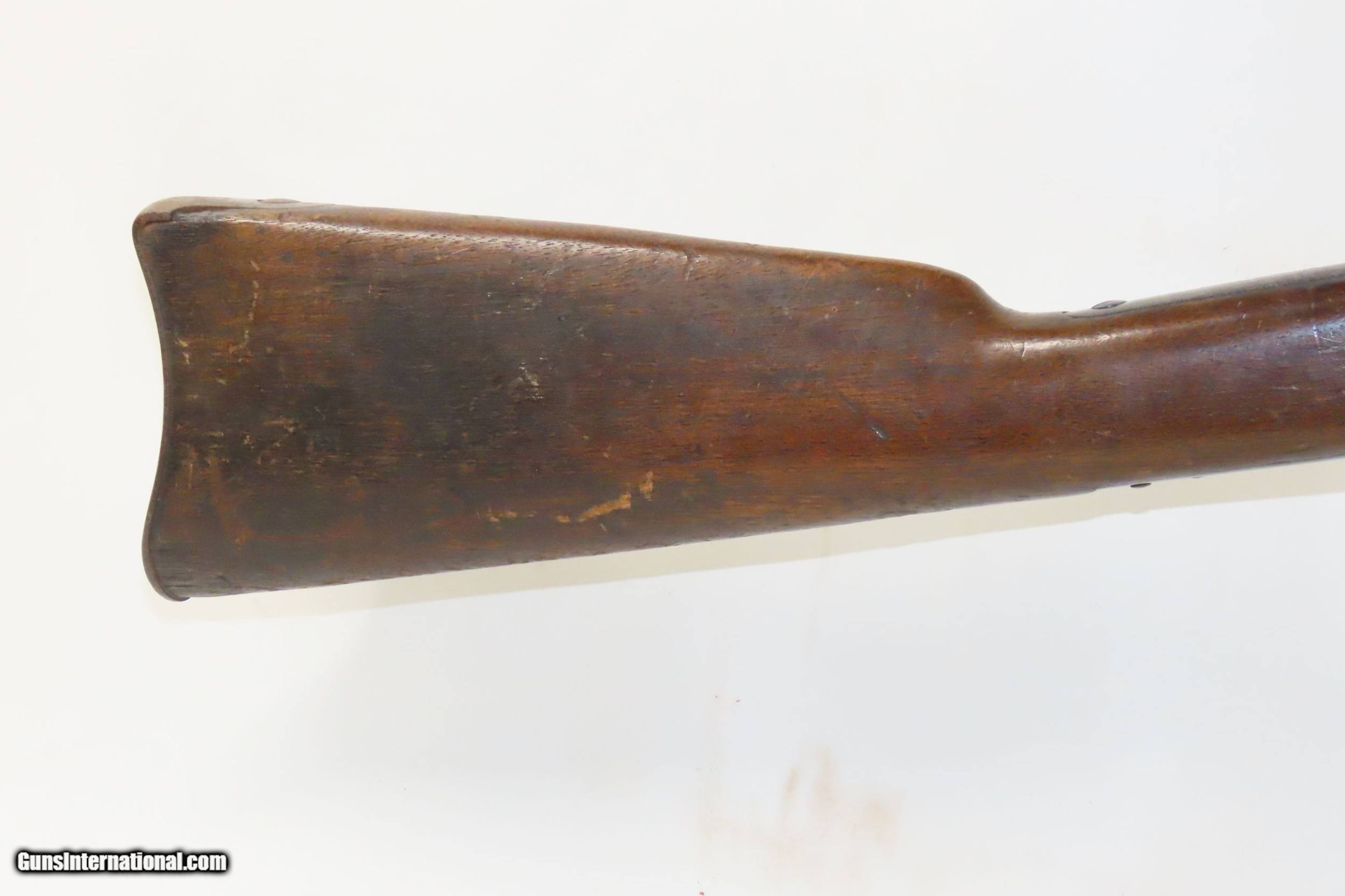 Description: RARE US NAVY SPRINGFIELD Model 1870 .50-70 GOVT Rolling Block Rifle Antique Marked “USN/SPRINGFIELD/1870” Here we present an antique U.S. Navy Springfield Model 1870 Rolling Block Rifle, manufactured at the Springfield Armory circa 1870. This rifle employs the Remington Arms Company rolling block design and was manufactured under a royalty agreement with Remington, for use by the United States Navy as a shipboard small arm. Only 22,013 were produced, with the first shipment of 10,000 rejected by the Navy. This rifle would have been on ships like the Colorado, Alaska, Palos, Monocacy, and Benicia when they sailed for the United States Expedition to Korea in 1871. The lock is marked “EAGLE/USN/SPRINGFIELD/1870”. The side is also marked “P/H.B.R./ANCHOR”. The overall condition is very good. Original finish. The action is excellent. The bore is bright with nice rifling. The stock shows wear and use and remains solid. Own the original! This is a legitimate antique and not a reproduction. Barrel is 32-5/8 inches. Caliber: .50-70 GOVT Overall condition as seen in photos. Very Fast. Very Safe. FREE SHIPPING WORLDWIDE. Delivered directly to your door by express mail! Guaranteed AUTHENTIC & Includes CERTIFICATE OF AUTHENTICITY. ancestryguns $2250 #226942 SOLD Antique: Yes |