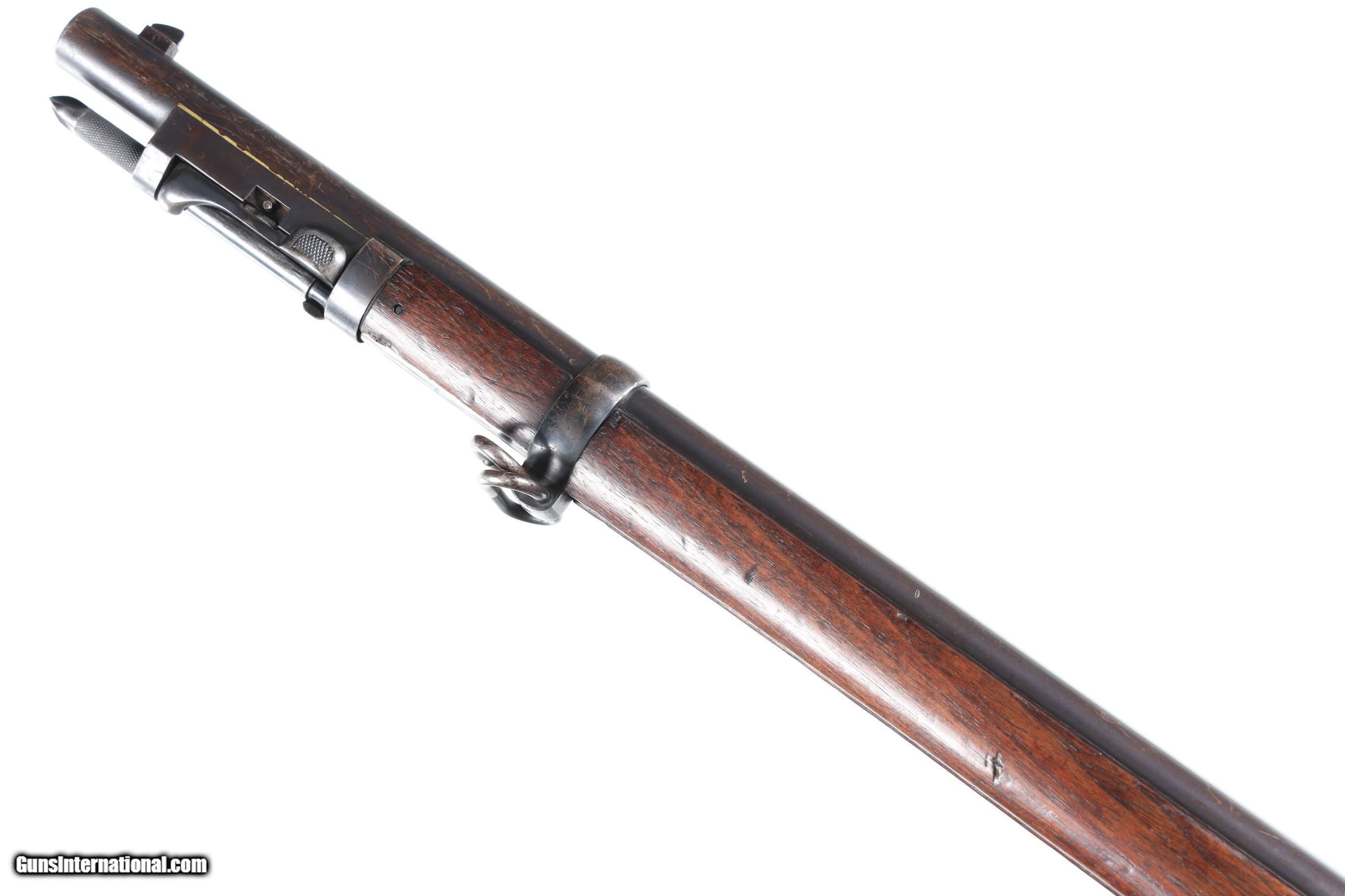 Description: Very good overall condition. Receiver manufactured 1879-1885 and subsequently arsenal upgraded to Model 1888 specifications. "SWP/1891" stock cartouche. Right side of buttstock stamped "12/273". • Free Shipping, No Credit Card Fees. • Lay-a-way available for this firearm. • 1/3 Down, a 1/3 in 30 Days, 1/3 in 60 Days. SOLD Antique: Yes Manufacturer: Springfield Armory Model: 1879 Serial Number: 138876 Barrel Length: 32 1/2 |