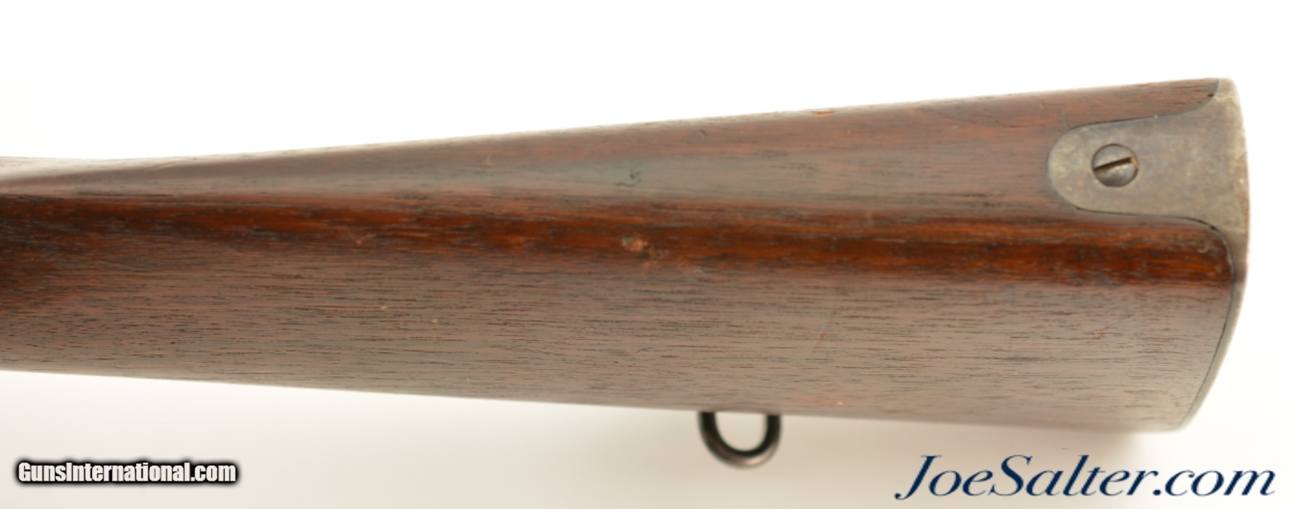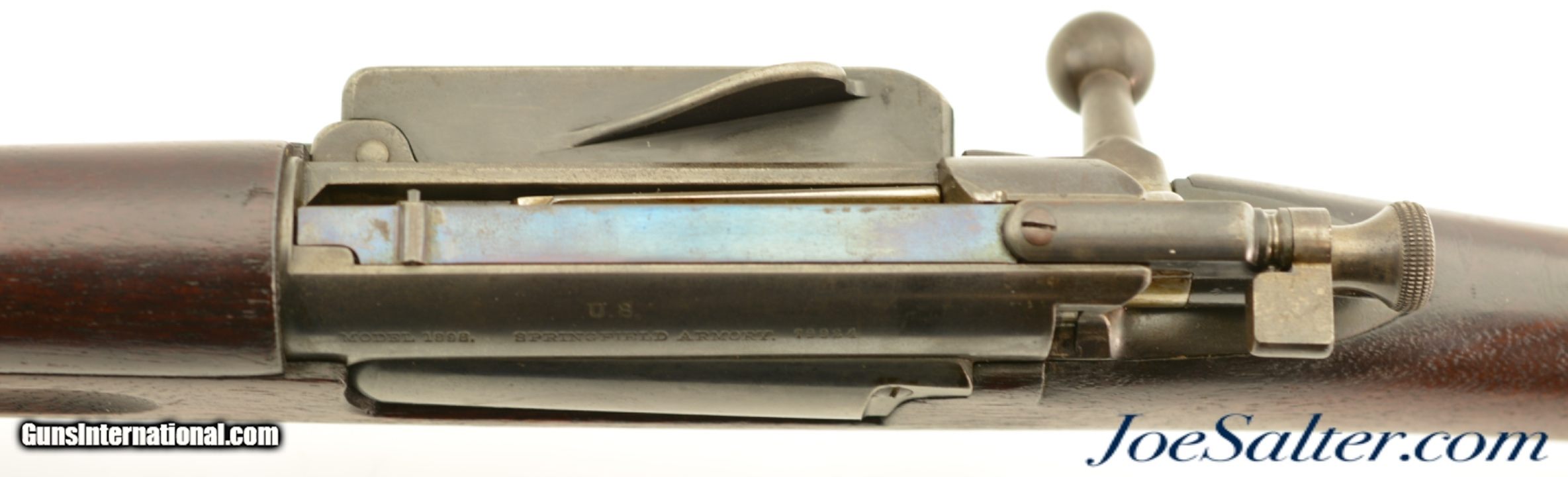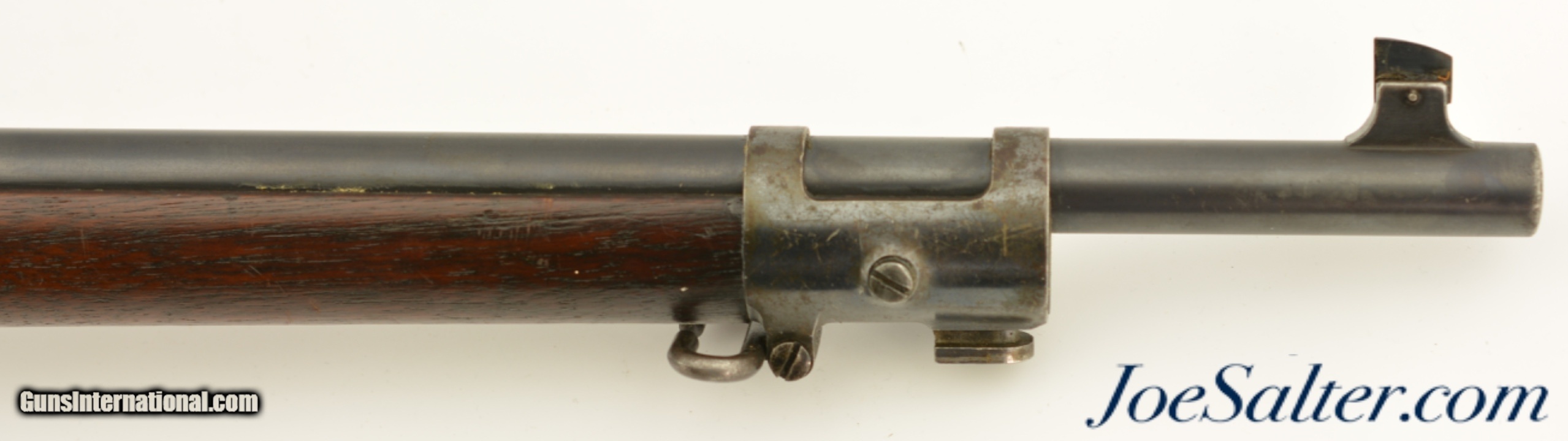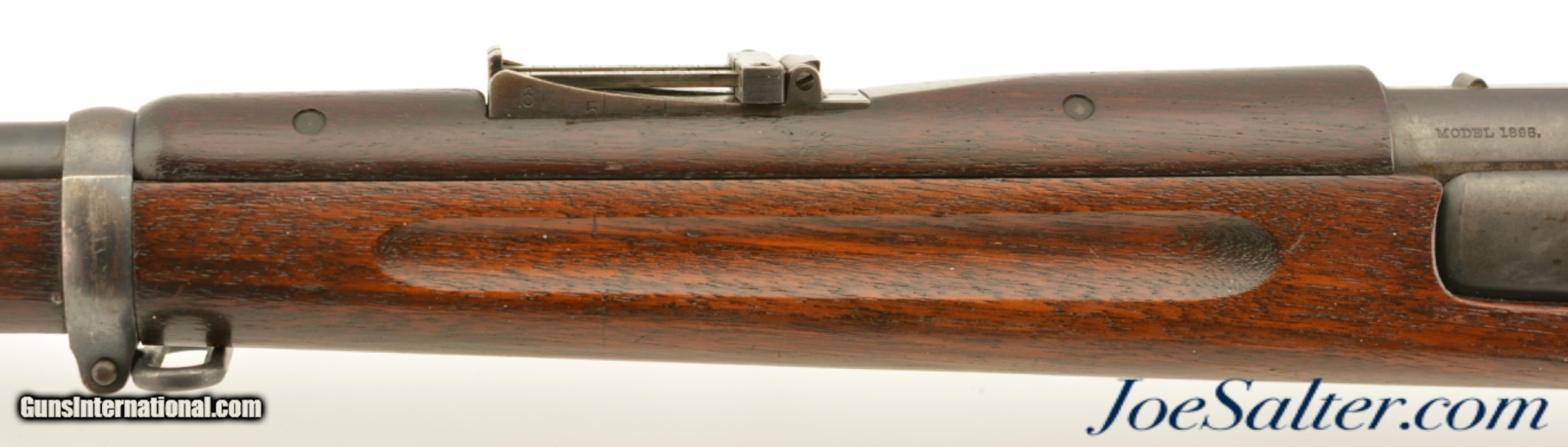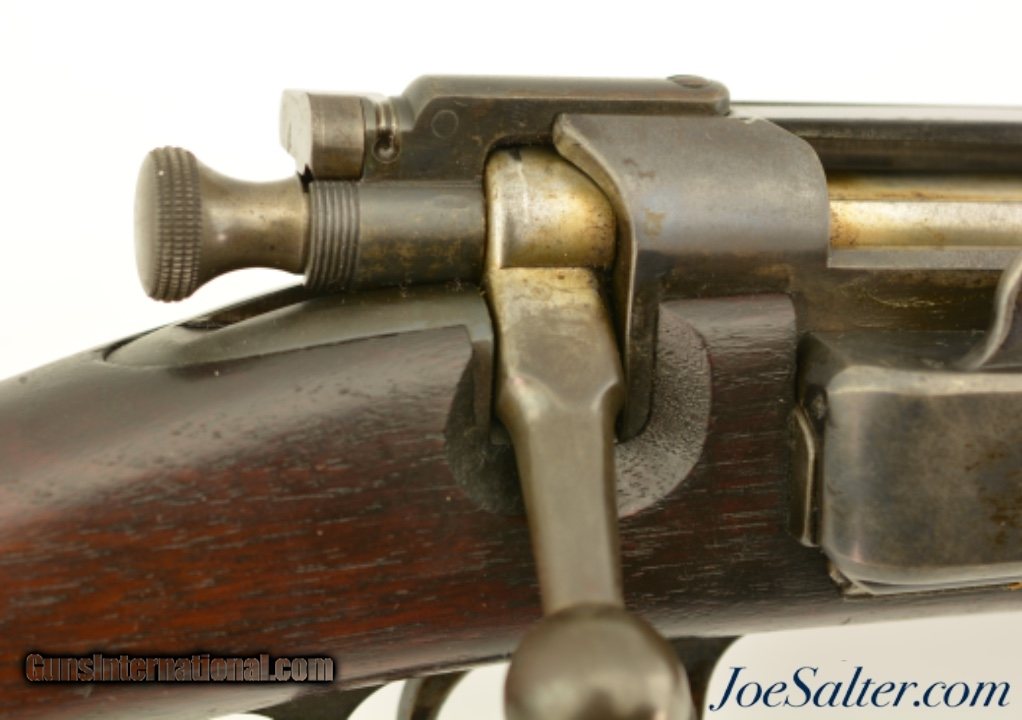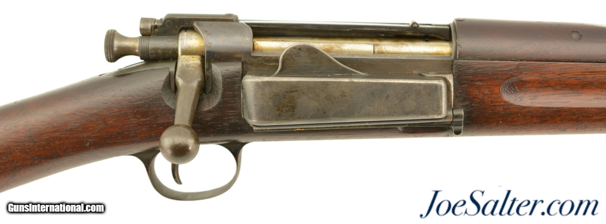 Description: Serial #79924, .30-40 Krag, 30" barrel with an excellent, bright bore. This is a handsome rifle that retains 92-95% of the original blue finish, with some mild silvering at the muzzle, as well as a few small spots of fading along the exposed portion of the barrel, and on some of the high edges and projections. The bolt has a plum-brown patina on the handle, with the body having a bright gray patina under a thin coating of protective grease. The extractor has most of the original brilliant fire blue remaining. The magazine cutoff selector was removed at some point. The walnut stock and handguard have not been sanded, and a thin coat of protective varnish added. There are small handling marks and minor blemishes scattered about and some small spots of white paint near the butt, but the cartouche is still quite clear and legible: "ISA / 1896." Additionally, a large "S" was neatly carved into the According to the Springfield Research ledger, this rifle was assigned to Co. I, 4th US Volunteer Infantry Regiment, and was received on September 10, 1898. The 4th was organized and mustered at Washington DC, and environs during June of 1898, comprised of 46 officers and 962 enlisted men and NCOs. The regiment was assigned to 3rd Brigade, 1st Division, 7th Army Corps on August 19, when they arrived at Jacksonville. FL prior to embarking for Cuba. They arrived at Manzanillo, Cuba on October 18, 1898, and performed garrison duties at Manzanillo, Campachuela, Bayamo, Niquero, Jiguani, and Viquetas before embarking for the US aboard the steamer "Dixie" on May 11, 1899. They arrived at New York City five days later and traveled to Camp Meade, PA, on May 17. The regiment mustered out of service on June 8, 1899. This is a great, documented Spanish-American War Krag, and is in fine-near excellent condition. Antique SOLD Antique: Yes |