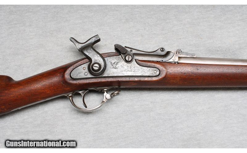 Description: The Springfield Model 1865 is a breech-loading rifle manufactured by U.S. Armory in Springfield, Massachusetts. It is a modified variation of the muzzle loading Springfield Model 1861. It was determined that a breech-loading rifle tripled the rounds per minute and allowed the user to operate in a safer prone position. The 1865 is referred to as the "First Allin" as Erskine S. Allin was the designer of the modification. The Model 1865 fired a .58 rimfire cartridge with a 500-grain bullet and 60 grains of black powder. Approximately 5000 of the Model 1865 were made. .58 Rimfire SOLD Antique: Yes Metal Condition: Very Good Wood Condition: Very Good Bore Condition: Bright bore with good rifling Barrels: 40 Inches Triggers: Factory Stock Dimensions: LOP 13 Inches Fore End: Smooth Butt Pad: Metal Crescent plate Item Location: La Vista, NE |