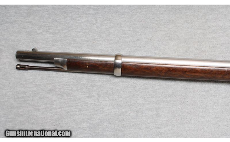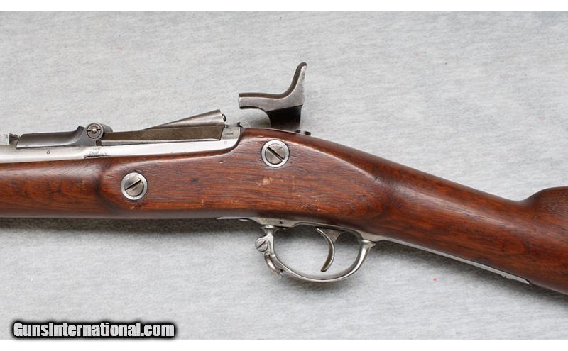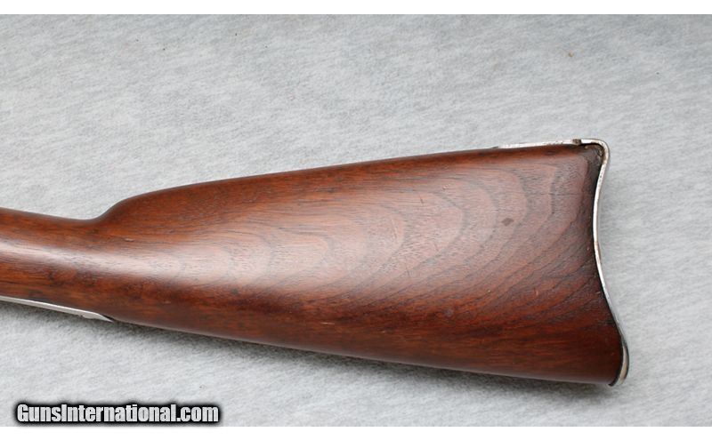 Description: The Springfield Model 1866 is a breech-loading rifle manufactured by U.S. Armory in Springfield, Massachusetts. It is the second variation of the Allin-designed trapdoor breech-loading mechanism which converted rifle muskets to breechloaders. The Model 1866 fired a .50-70 Government cartridge with a 450-grain bullet and 70 grains of black powder. Approximately 25,000 of the Model 1866 were made. .50-70 Government SOLD Antique: Yes Chambers: .50-70 Goverment Metal Condition: Very Good Wood Condition: Very Good Bore Condition: Bright Barrels: 40 Inches Triggers: Factory Stock Dimensions: LOP 13 1/2 Inches Fore End: Smooth Hardwood Butt Pad: Crescent metal plate Sights: Iron SIghts Item Location: La Vista, NE |