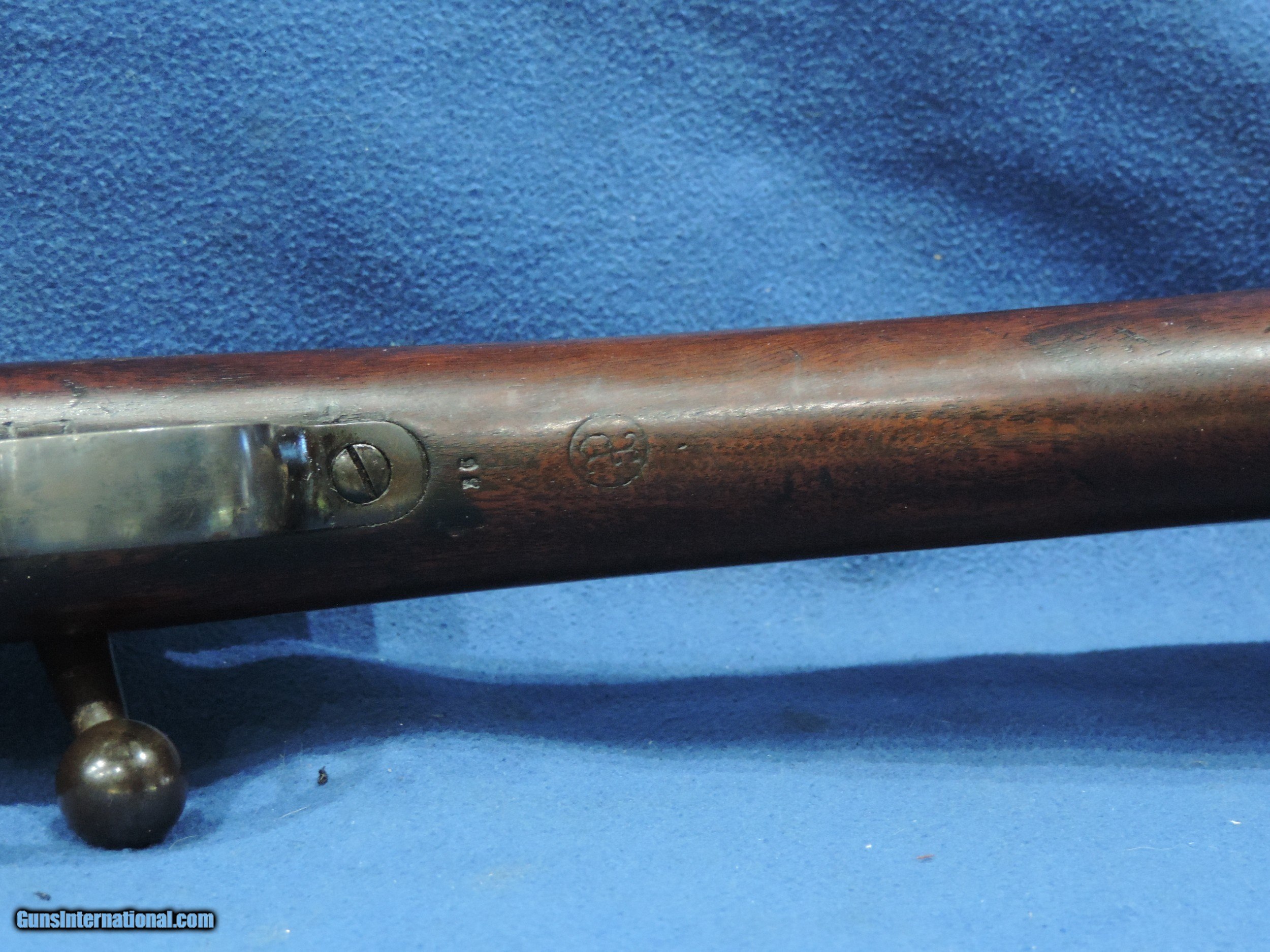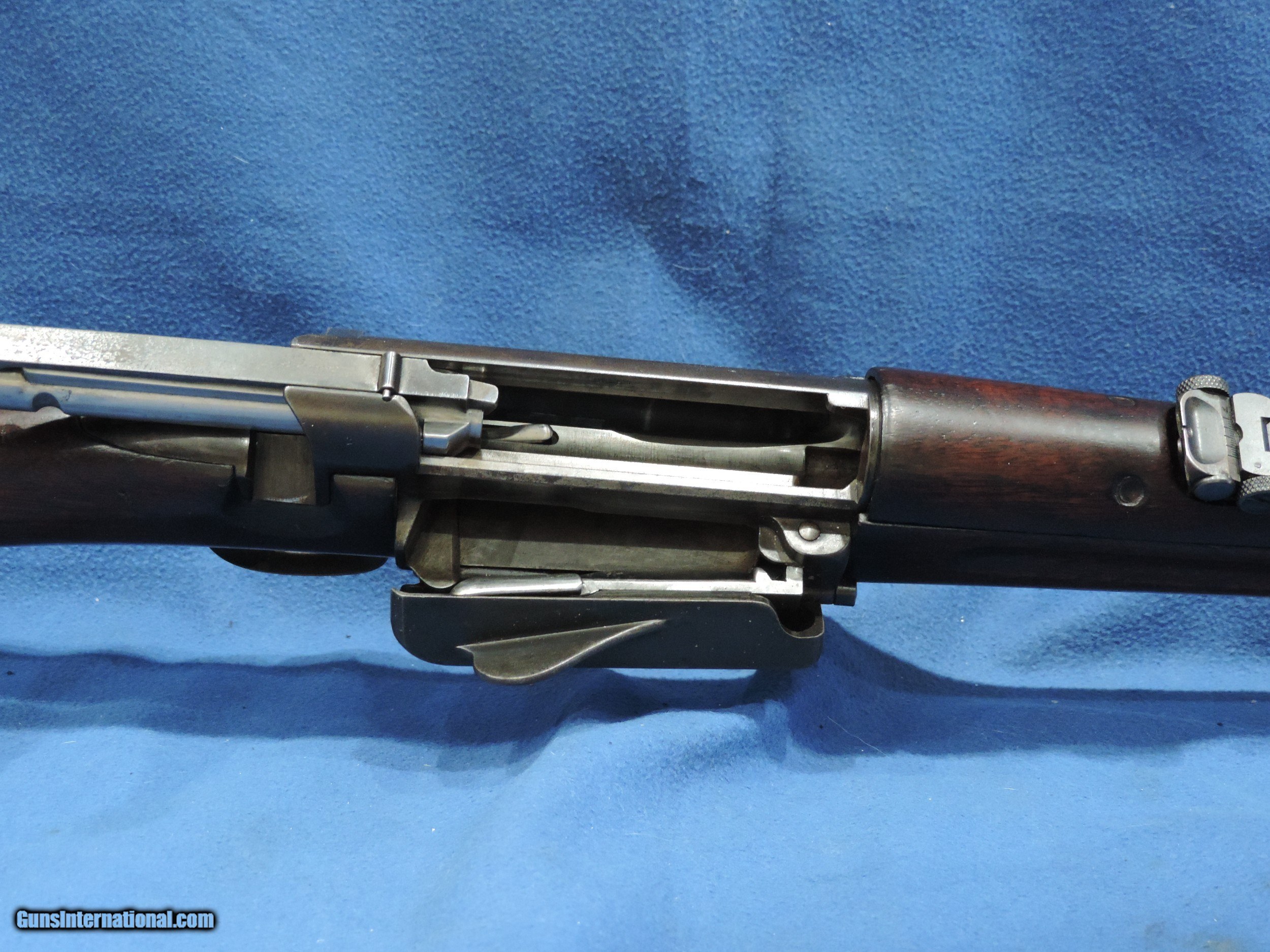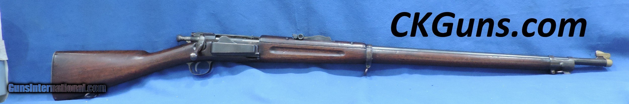 Description: INV. 8975 SPRINGFIELD 1896, KRAG JORGENSEN, CAL. .30-40, SER. 82431, THIS BEAUTY HAS RETAINED ABOUT 80-85% OF THE ORIGINAL FINSH. THE BULK OF THE LOSS IS FROM SOME SHARP SIVERING FROM SLIGHT SCATTERED PINPRICKS AND AND FADING DUE TO AGE. ALL PARTS ARE CORRECT. THE STOCK AND FOREARM ARE GREAT RETAINING ABOUT 95% OF THE ORIGINAL LACQUER. THERE ARE NO SPLITS, OR DINGS, BUT MAYBE A SCRATCH OR TWO. THE PISTOL GRIP HAS THE PROPER CIRCLE "P", AND THERE IS A BARELY VISIBLE CARTOUCHE ON THE LEFT SIDE ABOVE THE TRIGGER GUARD. THE REAR SIGHT IS PERFECT THE SLIDE RAILS, BOLT FACE AND FEED RAMP SHOW MODEST USE. THE BORE IS STILL BRIGHT WITH CRISP DESCERNABLE RIFLING AND SCATTERED LIGHT FROST. IT COMES WITH A SCARCE ORIGINAL FRONT SIGHT PROTECTOR. THIS BIG BEAUTY WOULD ENHANCE ANY COLLECTION AND BE A REAL ATTRACTION AT THE ANGE. VERY MODESTLY PRICED....$1595.*** *** 100% SATISFACTION GUARANTEED. To purchase this firearm or if you want to request more information contact us at: Email ckguns[at]ymail[dot]com Phone 201-512-0002 Cell 201-575-6838 FAX 201-215-4759 We accept most major credit cards. Prices shown are Discounted 3% for Cash or Check. The buyer must be familiar with all the laws governing the purchase and the ownership of firearms in their own city and state. The Yankee Armorer, Inc is not responsible for any failure to comply with or observe these laws. The Yankee Armorer, Inc will only ship after full payment and receipt of all required documents. Shipping: Add $35.00 for handguns, $45.00 for long guns. New Jersey buyers are subject to a 7% sales tax. The Yankee Armorer, Inc offers a 3 day inspection period with full refund upon return of intact firearm and in the original condition. The Yankee Armorer, Inc offers a no interest lay away program - 25% down; 25% in 30 days; 25% in 60 days; and full payment in 90 days. Any violation of this policy is subject to restocking and forfeiture of all payments. Any variation from this policy must be agreed to in advance. Unshipped Cancelled sales are subject to a 20% restocking fee. Be advised that all firearms sold by The Yankee Armorer, Inc. or the Gun Exchange, LLC (SELLER) are sold as collector’s items. They have not been fired or tested for safety and must be examined by a license gunsmith prior to use. By purchasing any item from the (SELLER), you are agreeing to hold the (SELLER) free from any damages or lawsuits of any nature. Any item left for transfer or storage will be charged to $25.00 per month, per item from the day of its receipt. Any variation from this policy must be agreed to in advance. Store hours 10:00 am to 5:00 pm Tuesday -Saturday. It's always best to call for appointment. Store 201-512-0002, cell 201-575-6838. SOLD |