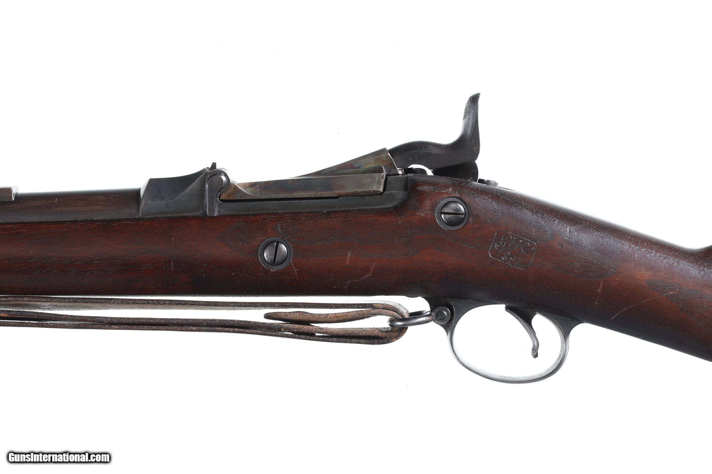 Description: Very good overall condition. Manufactured 1891, "SWP/1891" cartouche, ramrod bayonet. With leather sling. • Free Shipping, No Credit Card Fees. • Lay-a-way available for this firearm. • 1/3 Down, a 1/3 in 30 Days, 1/3 in 60 Days. SOLD Antique: Yes Manufacturer: Springfield Armory Model: 1888 Serial Number: 529711 Barrel Length: 32 5/8 |