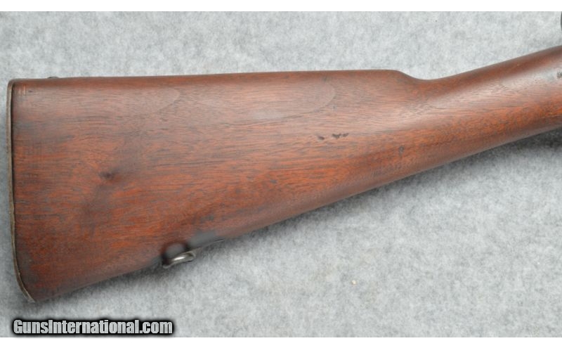 Description: ANTIQUE firearm. SOLD Antique: Yes Manufacturer: Pre 1898, this firearm is an ANTIQUE. Caliber Info: .30-40 Krag Chambers: Bolt action, five round internal rotary magazine. Metal Condition: Good, bluing has faded a bit, and there is very minor pitting. Wood Condition: Good, several small minor dents and scratches. Bore Condition: Fair to good. Barrels: 30 inch round blue barrel. Triggers: Single stage trigger. Stock: Smooth, straight grip. Stock Dimensions: 13 1/4 inch length of pull. Fore End: Smooth fore-end with finger grooves on both sides, matches the stock. Butt Pad: Steel butt plate with access door. Weight: 8 3/4 pounds. Sights: Blade front sight, rear ladder sight. Item Location: Berlin, MA |