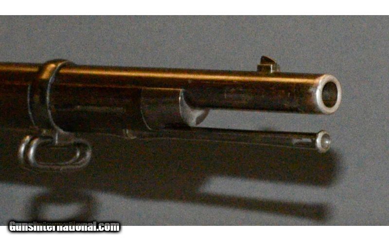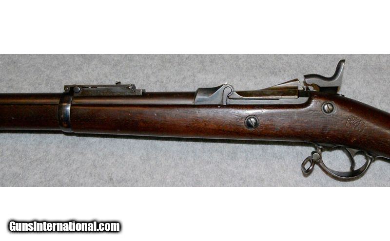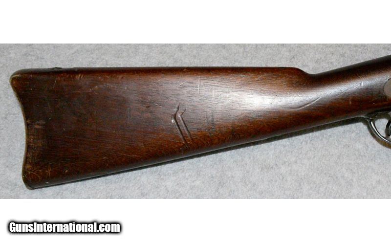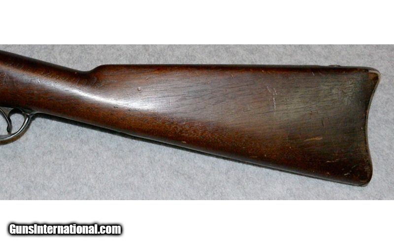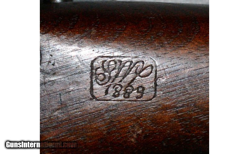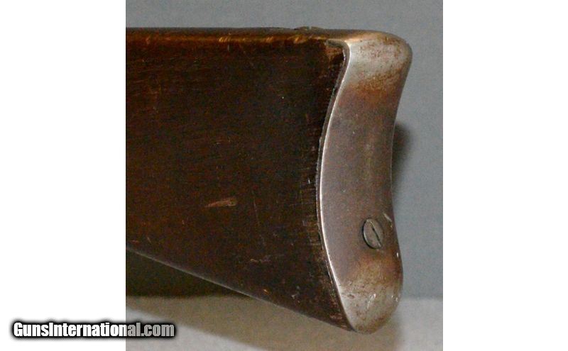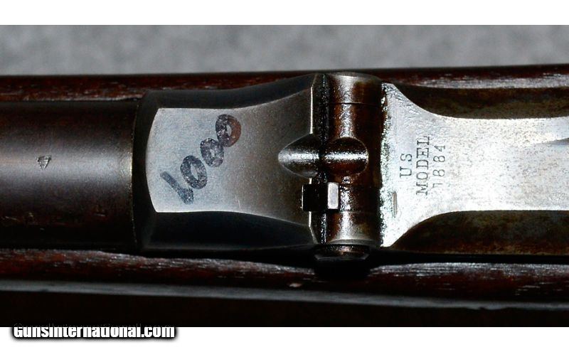 Description: This rifle, serial number 464960, was made in 1889. None SOLD Metal Condition: "Fair-Good, Some of the finish has worn off but most of it has turned to a patina. The stamps by and large remain prominent and clean. The number ""1000"" has been written infront of the breech block in permanent marker. Wood Condition: "Fair, While free of cracks there are many handling marks of varying severity. Many bumps, dings and gouges exist on the gun. The stamps though, remain clean and sharp. Bore Condition: "Very Good, Very clean and shiny with sharp rifling. Barrels: 32 5/8" Barrel Triggers: Grooved trigger Stock Dimensions: 13 1/4" LOP Fore End: Walnut forearm Butt Pad: Steel buttplate Weight: 9lbs 1oz Sights: Steel front sight with Buffington rear sight. Item Location: Lacey, WA |