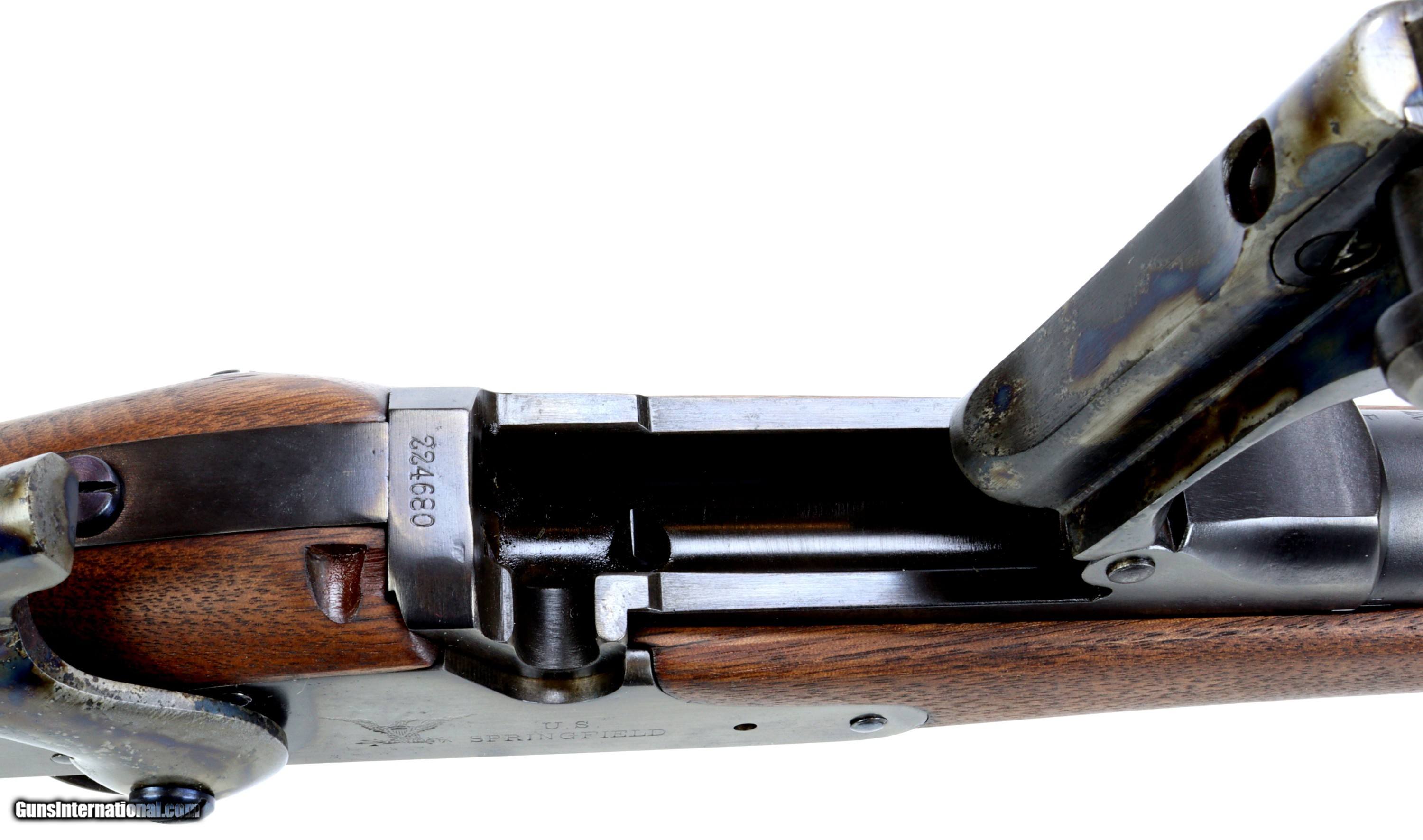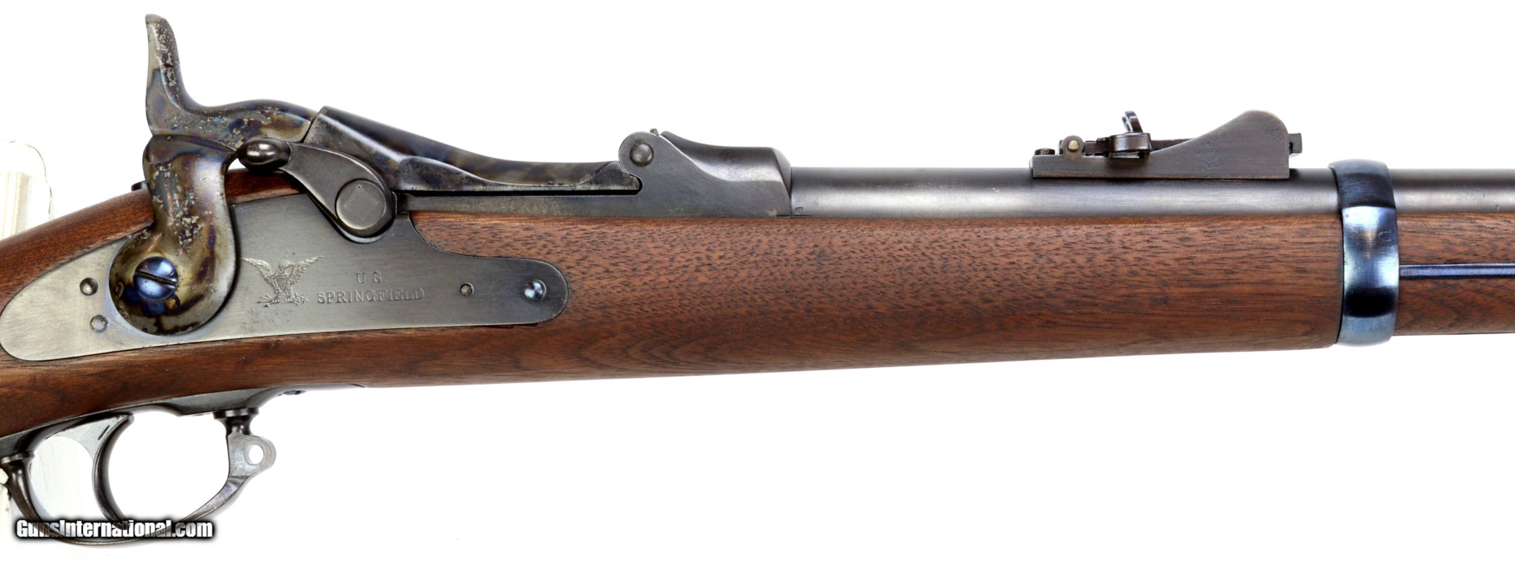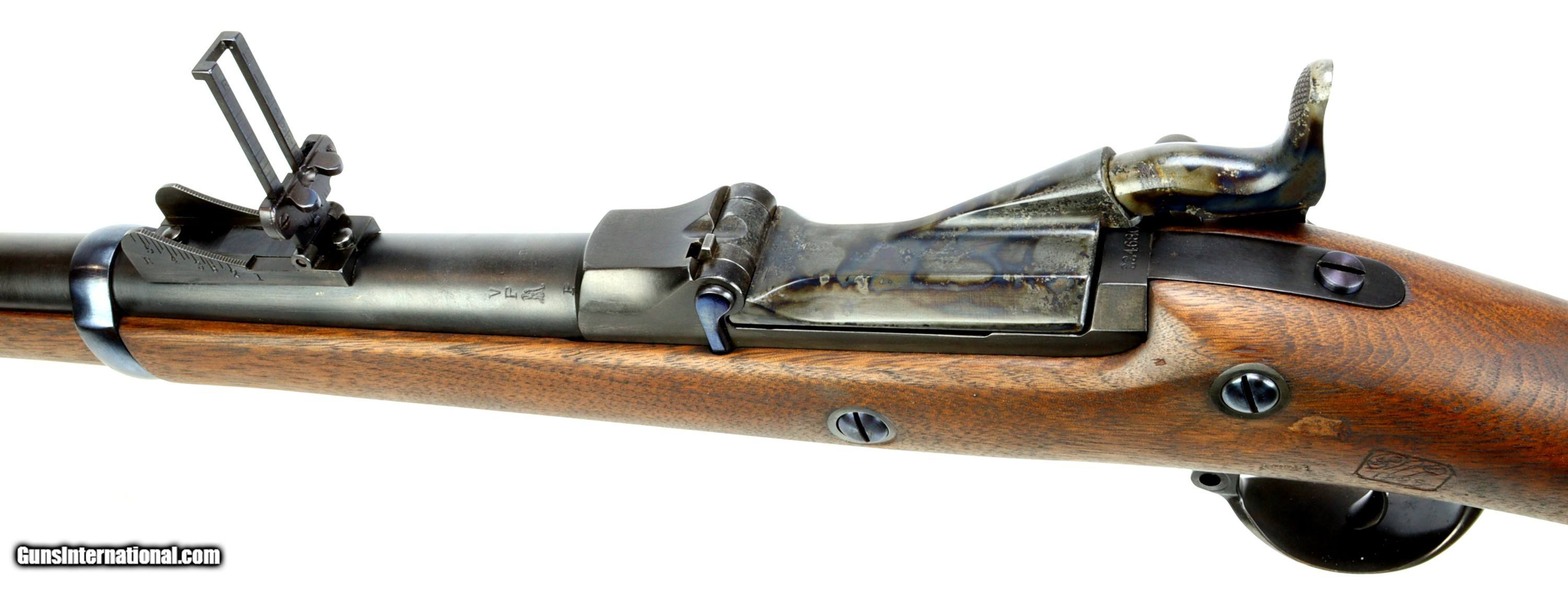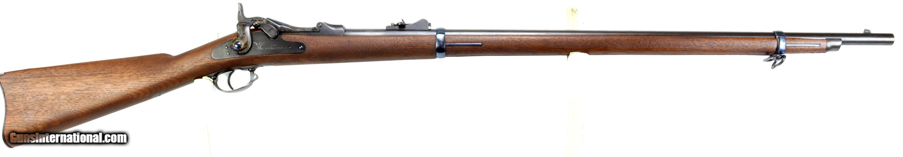 Description: Springfield Armory M1873 Trapdoor Rifle chambered in 45-70, serial #224680 mfr'd in 1883. The bluing and wood have been refinished, excellent bore that is bright and reflective with strong clean rifling.Missing rear sling swivel and cleaning rod. We can get replacement cleaning rods and will provide one to the buyer. Insured shipping $70.00 to the lower-48. This rifle is an antique and will ship directly to the buyer. Sold Pending Shipment to Customer SOLD Antique: Yes Rifle Caliber: .45-70 Government |