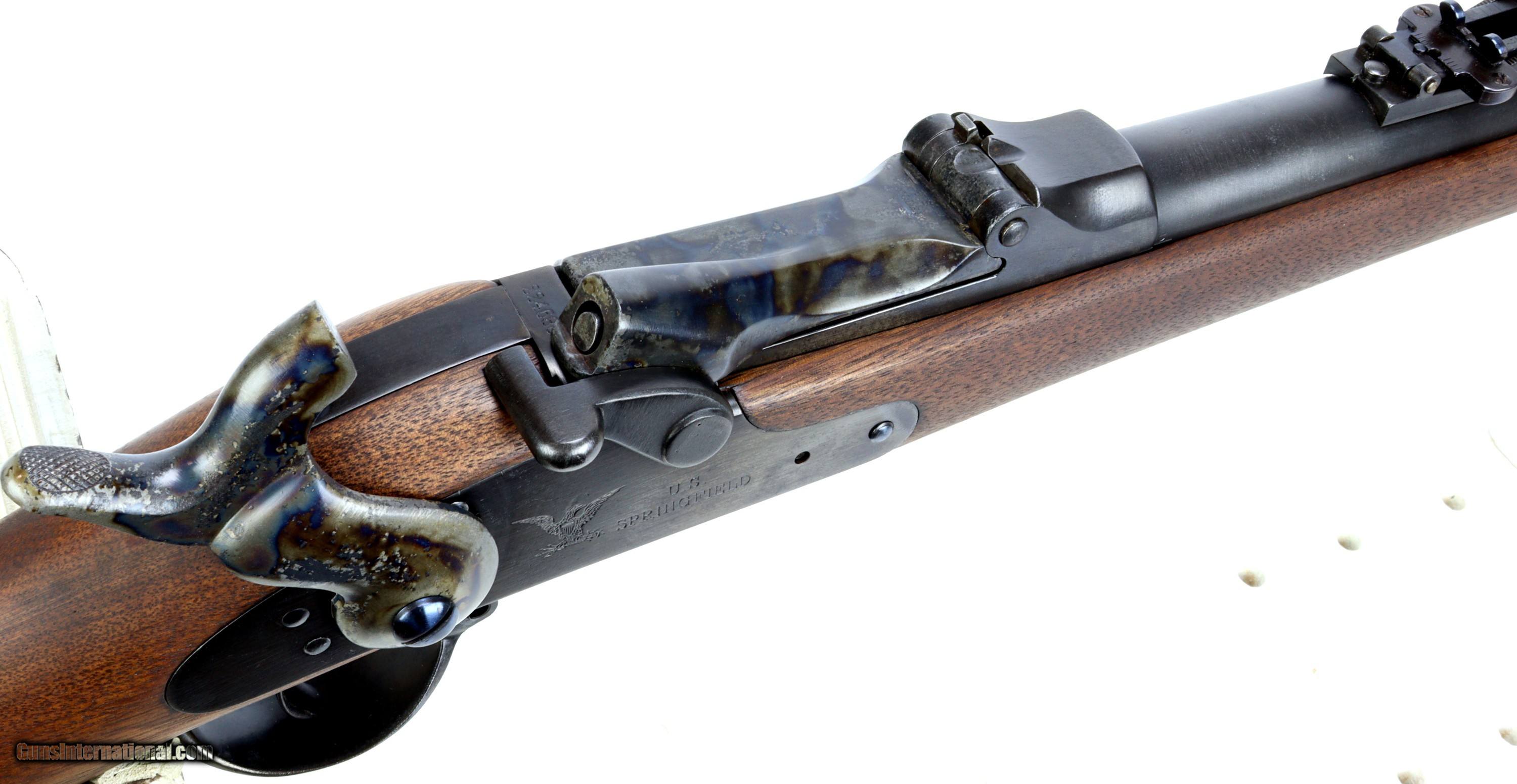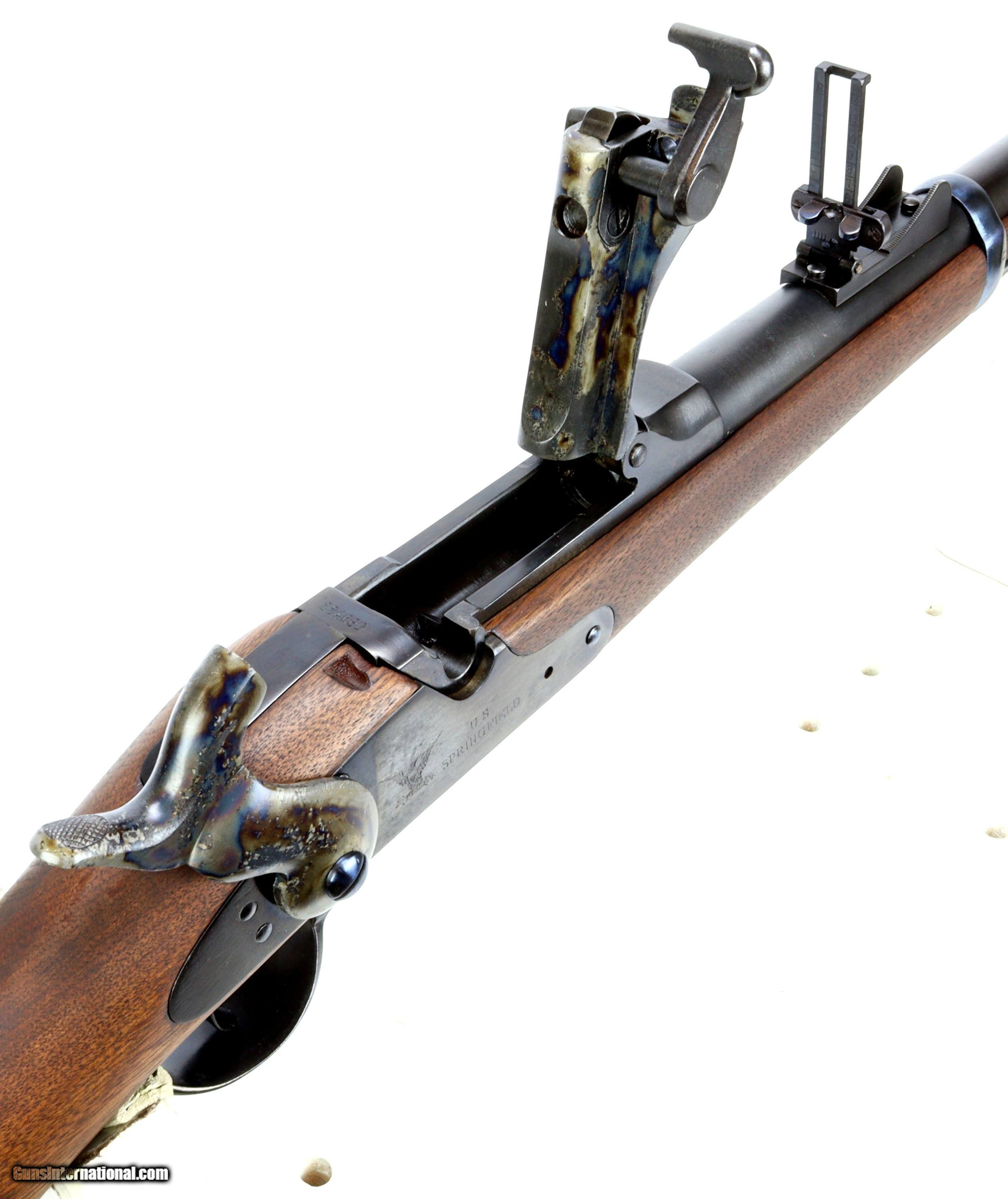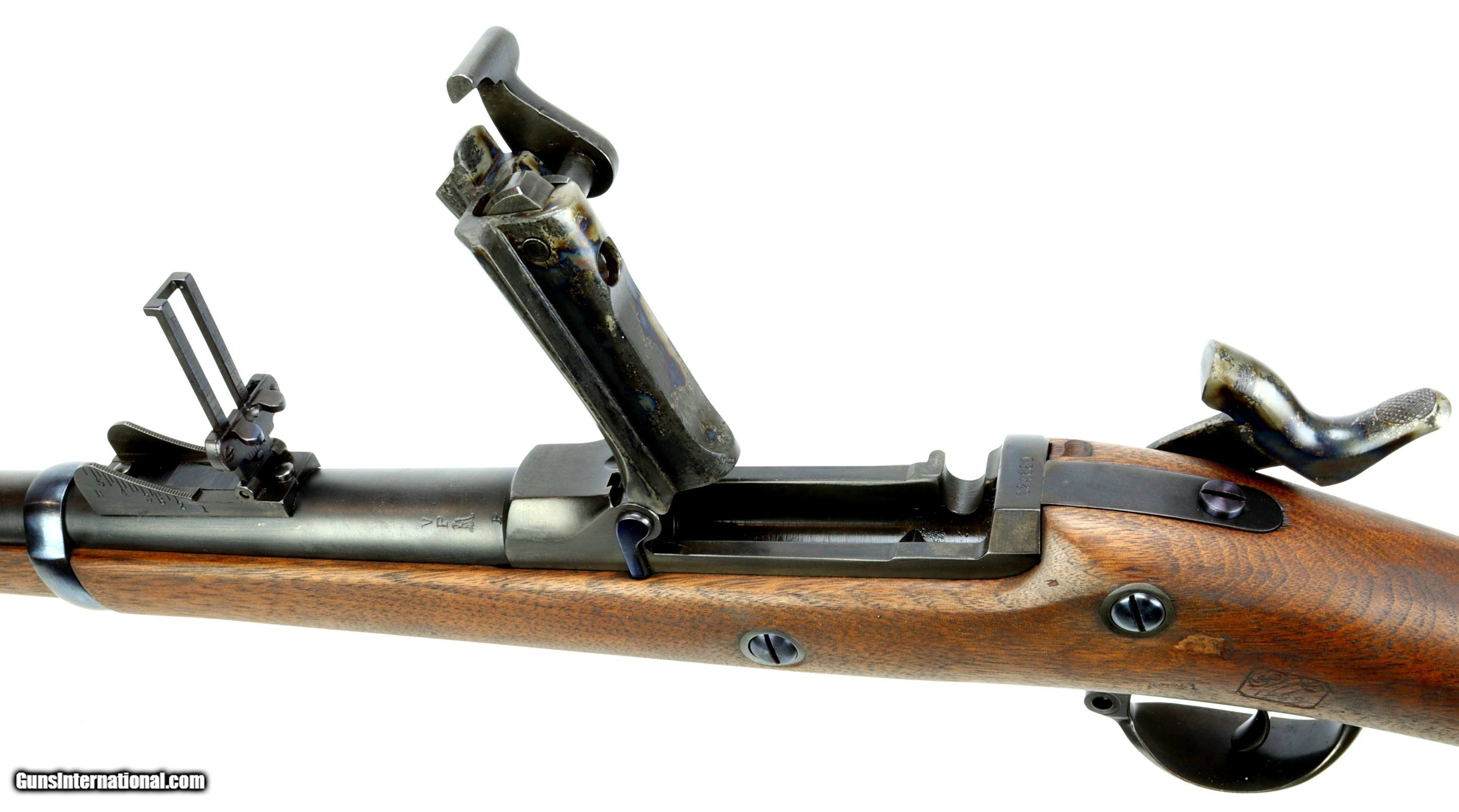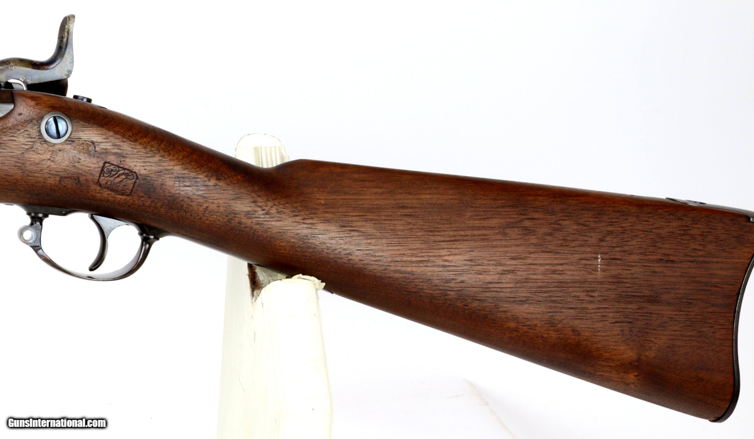 Description: Springfield Armory M1873 Trapdoor Rifle chambered in 45-70, serial #224680 mfr'd in 1883. The bluing and wood have been refinished, excellent bore that is bright and reflective with strong clean rifling.Missing rear sling swivel and cleaning rod. We can get replacement cleaning rods and will provide one to the buyer. Insured shipping $70.00 to the lower-48. This rifle is an antique and will ship directly to the buyer. Sold Pending Shipment to Customer SOLD Antique: Yes Rifle Caliber: .45-70 Government |