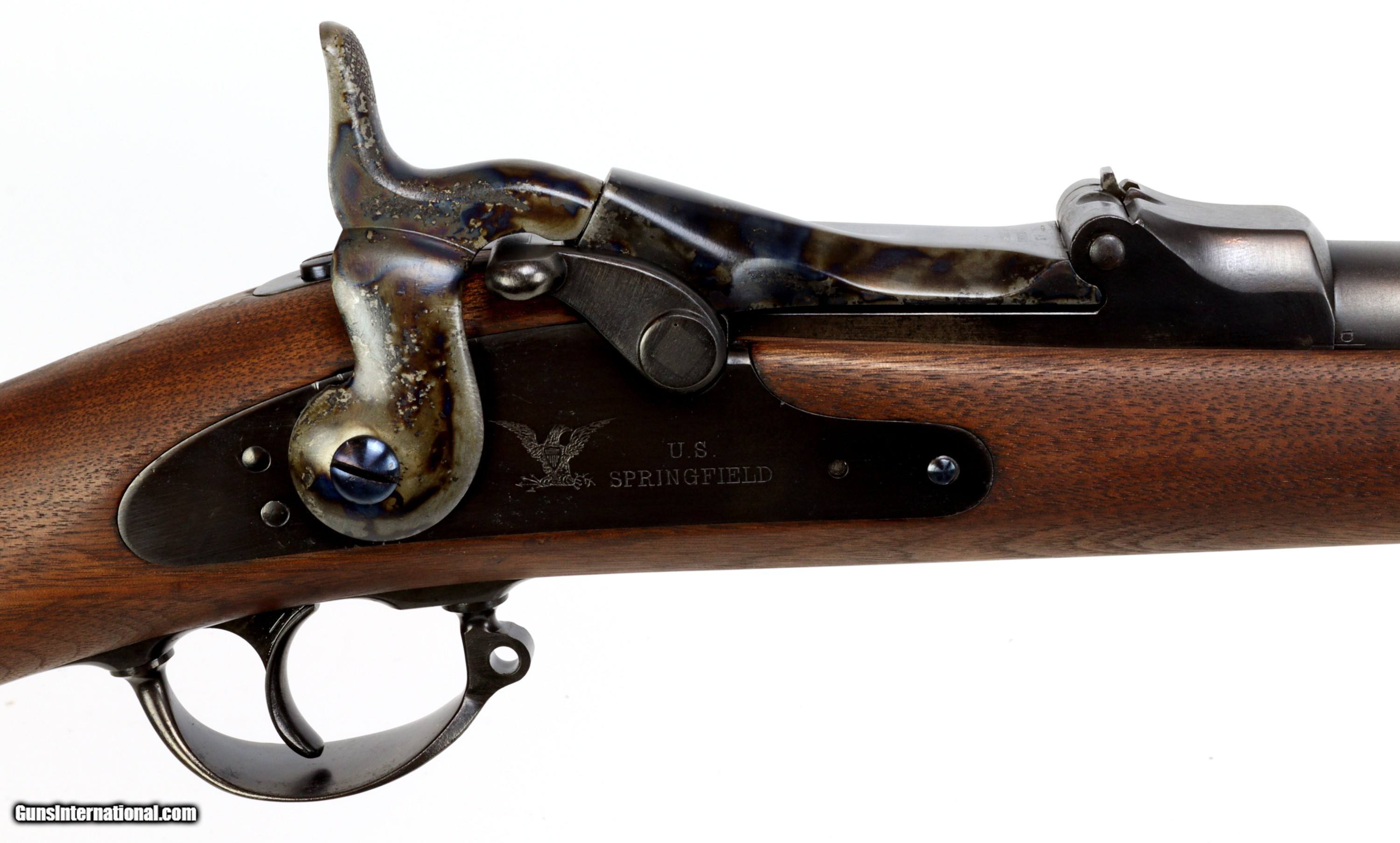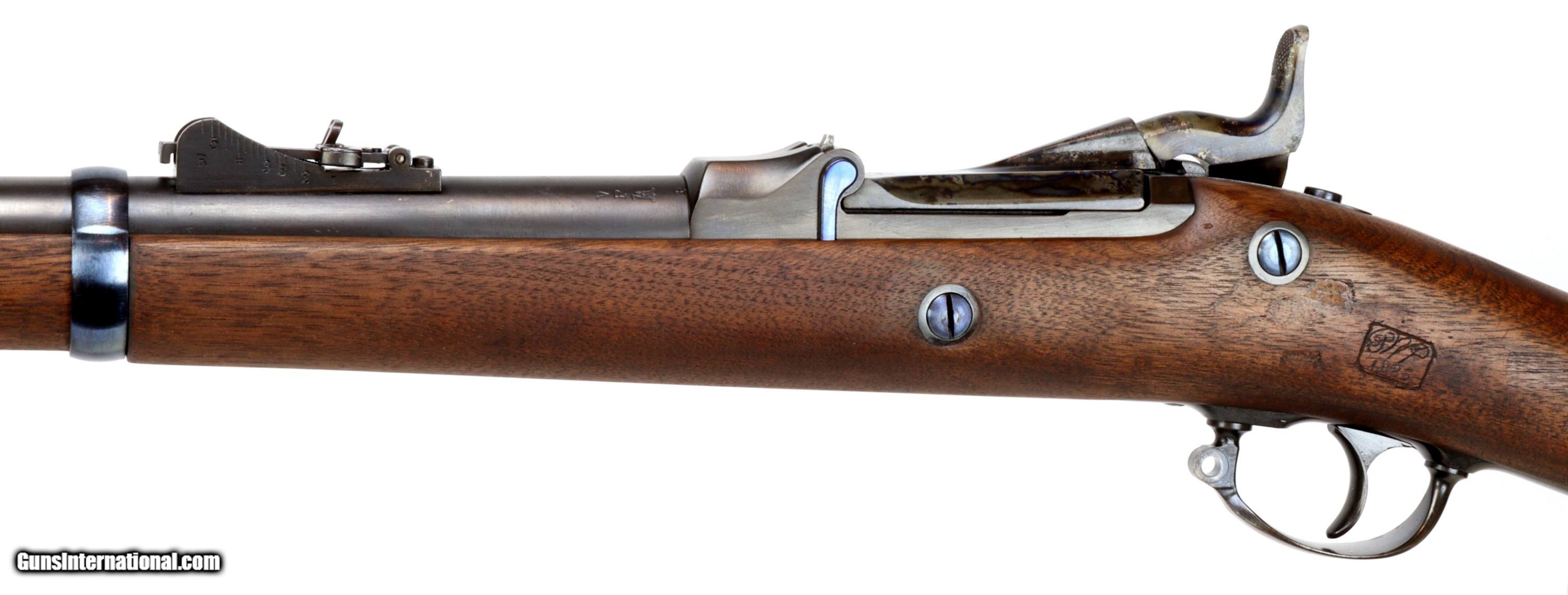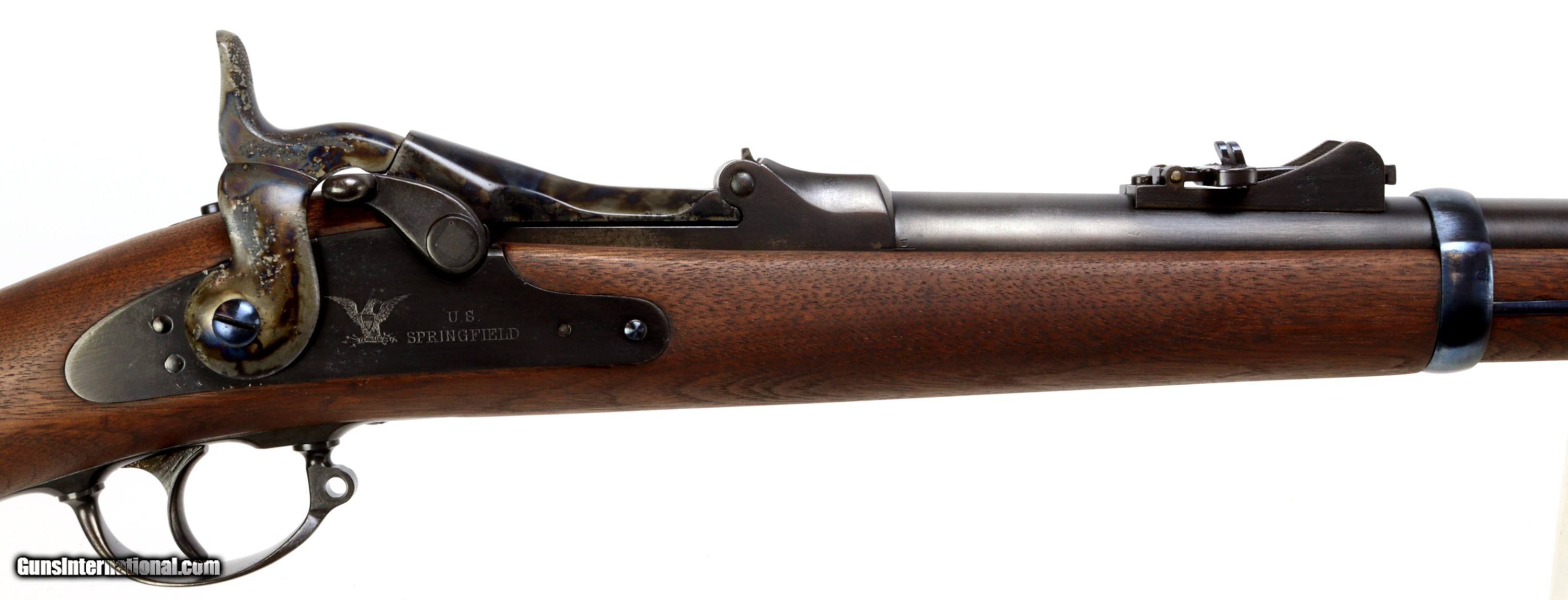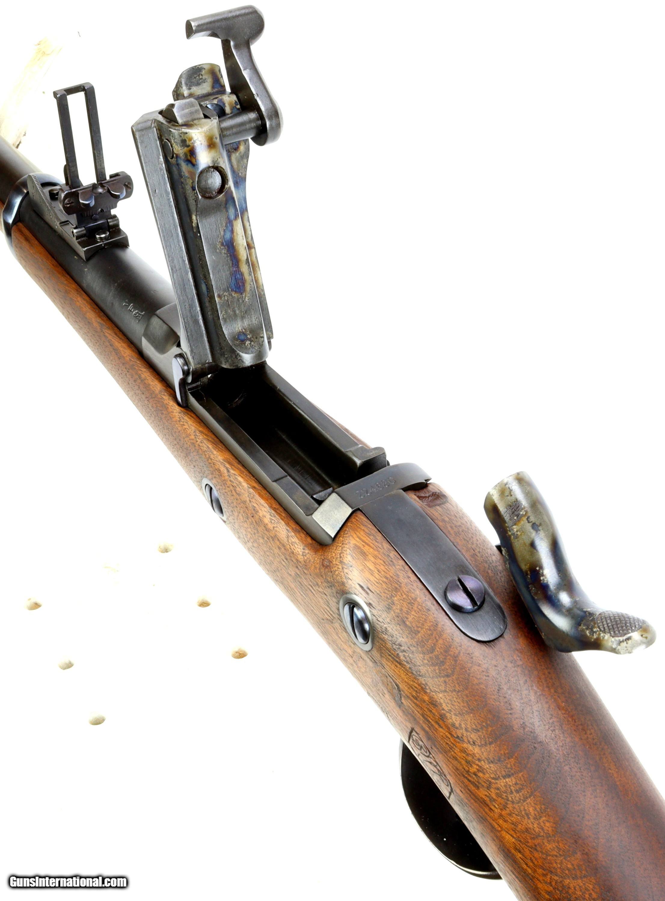 Description: Springfield Armory M1873 Trapdoor Rifle chambered in 45-70, serial #224680 mfr'd in 1883. The bluing and wood have been refinished, excellent bore that is bright and reflective with strong clean rifling.Missing rear sling swivel and cleaning rod. We can get replacement cleaning rods and will provide one to the buyer. Insured shipping $70.00 to the lower-48. This rifle is an antique and will ship directly to the buyer. Sold Pending Shipment to Customer SOLD Antique: Yes Rifle Caliber: .45-70 Government |