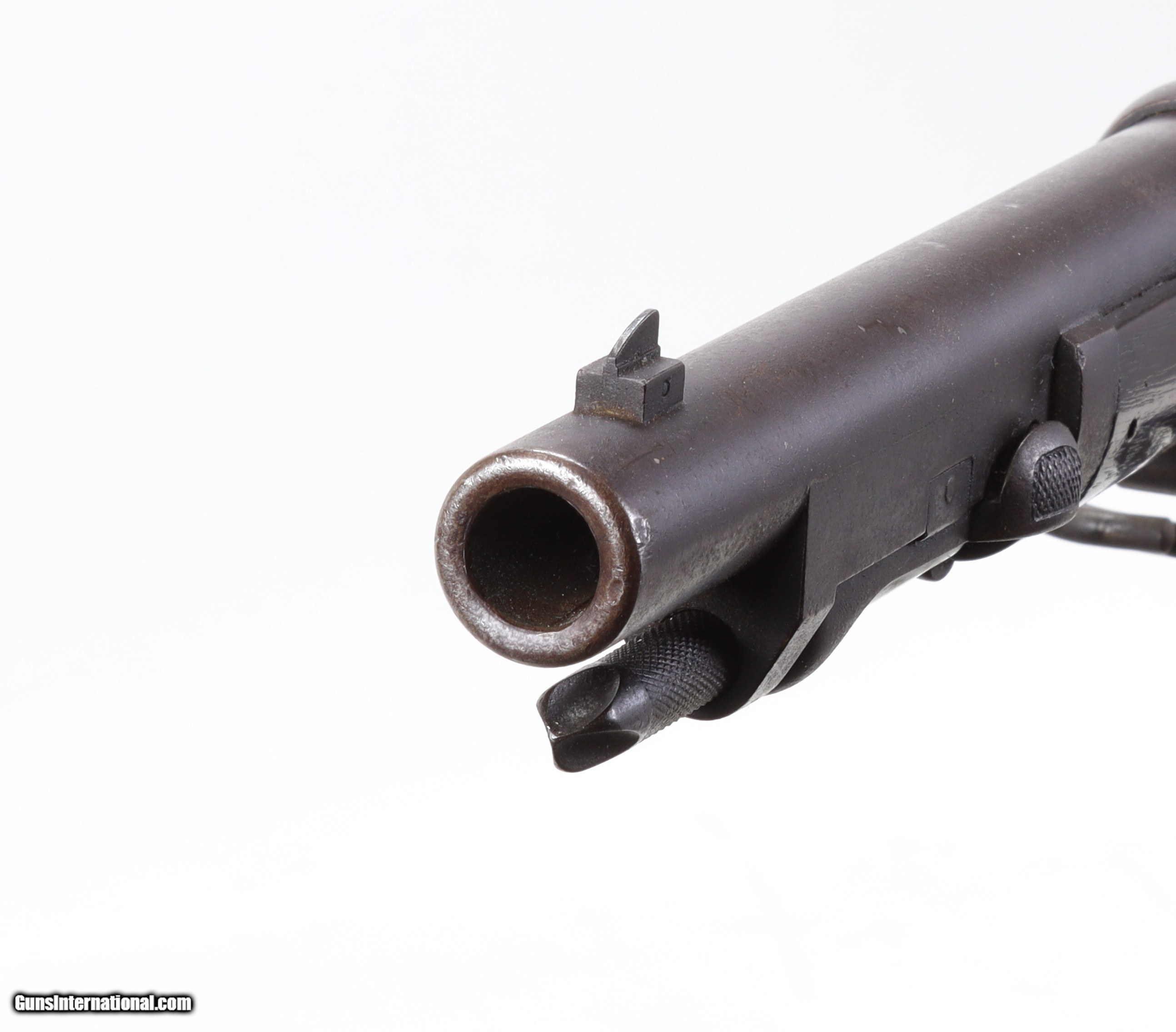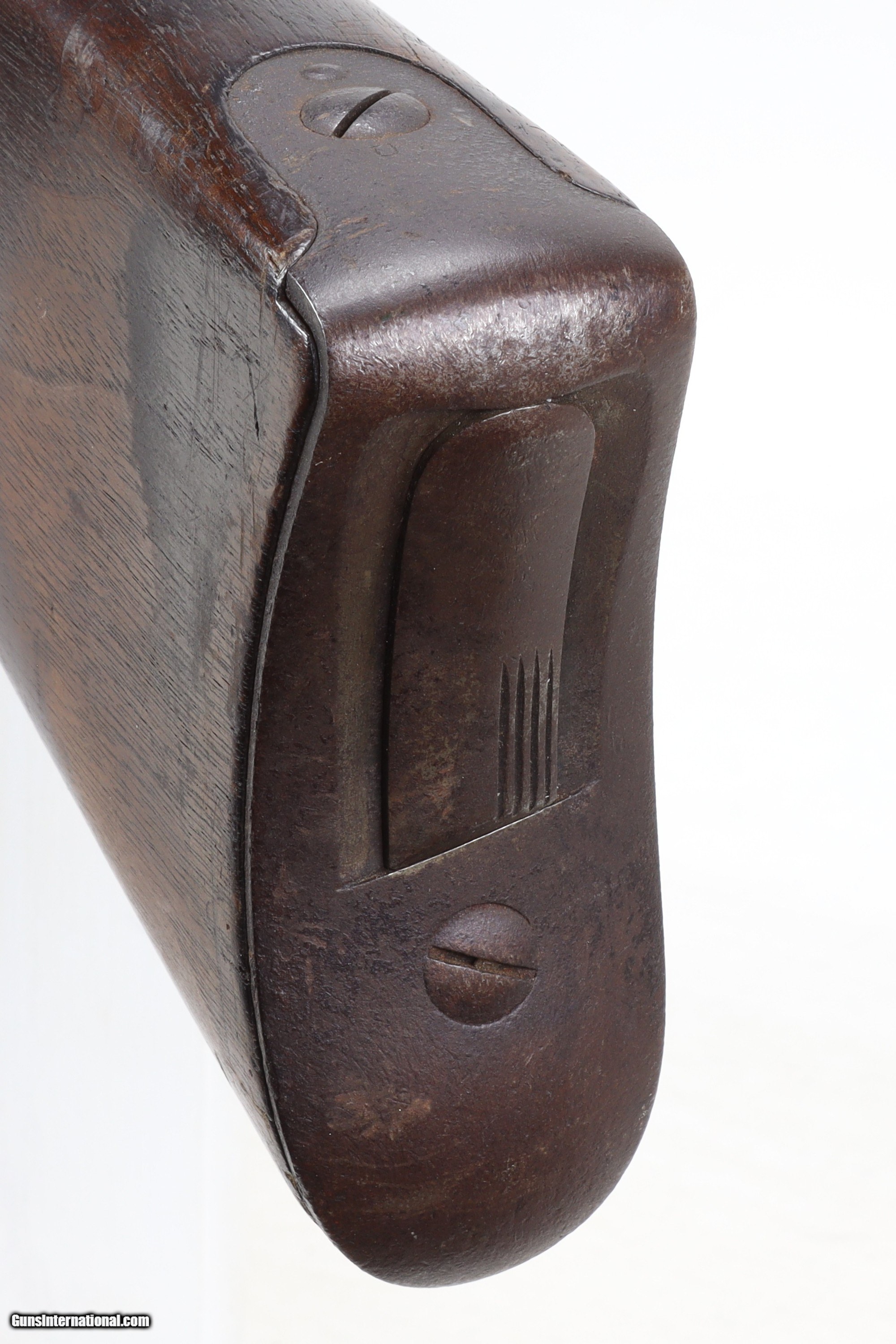 Description: Springfield Model 1878 Trapdoor Rifle in .45-70. SN #320291. Mfg. in 1891. LOP 13 1/4". 32" Barrel with an EXCELLENT Bright Bore with STRONG RIFLING. The Blued Metal is in VERY GOOD condition with a NICE PATINA and no pitting or damage. The Walnut Stock is in EXCELLENT condition for the age of the gun with some normal handling marks. Clear markings and Stock Cartouche of "SWP 1891". Buffington Rear Sight. Round Pull-out Bayonet. Small Brass Medallion with "34" attached to stock just behind lower tang, most likely a Rack Number. As an ANTIQUE, No FFL is need to purchase and can be shipped directly to buyer. Also available for INTERNATIONAL SALES / SHIPPING. Weight: 10 lbs. Trigger Pull: 6 lbs. More photos available upon request. Ships to Lower 48 W/ Insurance $85.00. SOLD Curio/Relic: Yes Antique: Yes Rifle Caliber: .45-70 Government Manufacturer: Springfield Model: 1878 Trapdoor Serial Number: 320291 Barrel Length: 32 Condition: Excellent for Age Metal Condition: VG for Age Wood Condition: VG for Age Bore Condition: Excellent LOP: 13 1/4 Finish: Blue Weight: 10 lbs Manufacture Date: 1891 |