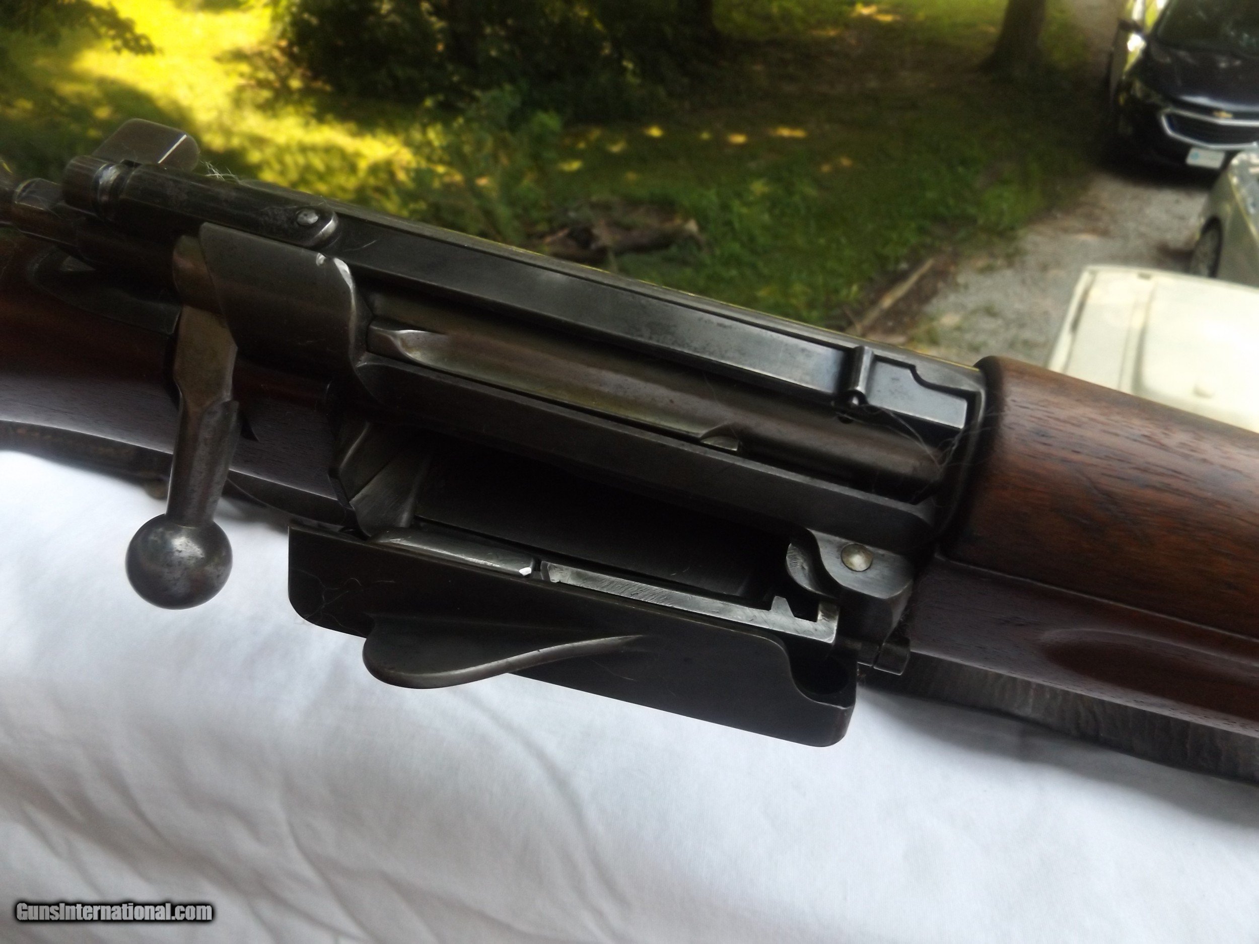 Description: This is a near mint Springfield Armory Model 1898 Krag Rifle in 30/40 Caliber. This rifle was replaced by the Model 1903 Springfield. It has the S.A. Cartouche on the stock. And the round cartouche behind the trigger guard. It is complete and includes the origional Sling. This gun may never have left the Armory, or was used to train U.S. Troops preparing for the First World War. It is very fine condition and retains the origional Blued finish. Shipping is $30.00 to the U.S. only. It would be hard to find one as nice, for your collection. SOLD Antique: Yes Rifle Caliber: .30-40 Krag Manufacturer: Springfield Armory Model: 1898 Krag Serial Number: 372028 Bore: Rifled 30 40 Chambers: 1 Ejectors: 1 Condition: Very Fine Metal Condition: Original Bluing Wood Condition: No Wear Bore Condition: Very Fine Barrels: 1 Barrel Type: Round Action: Bolt Action Triggers: 1 Stock: 1 Sights: Original Extras: Original Sling |