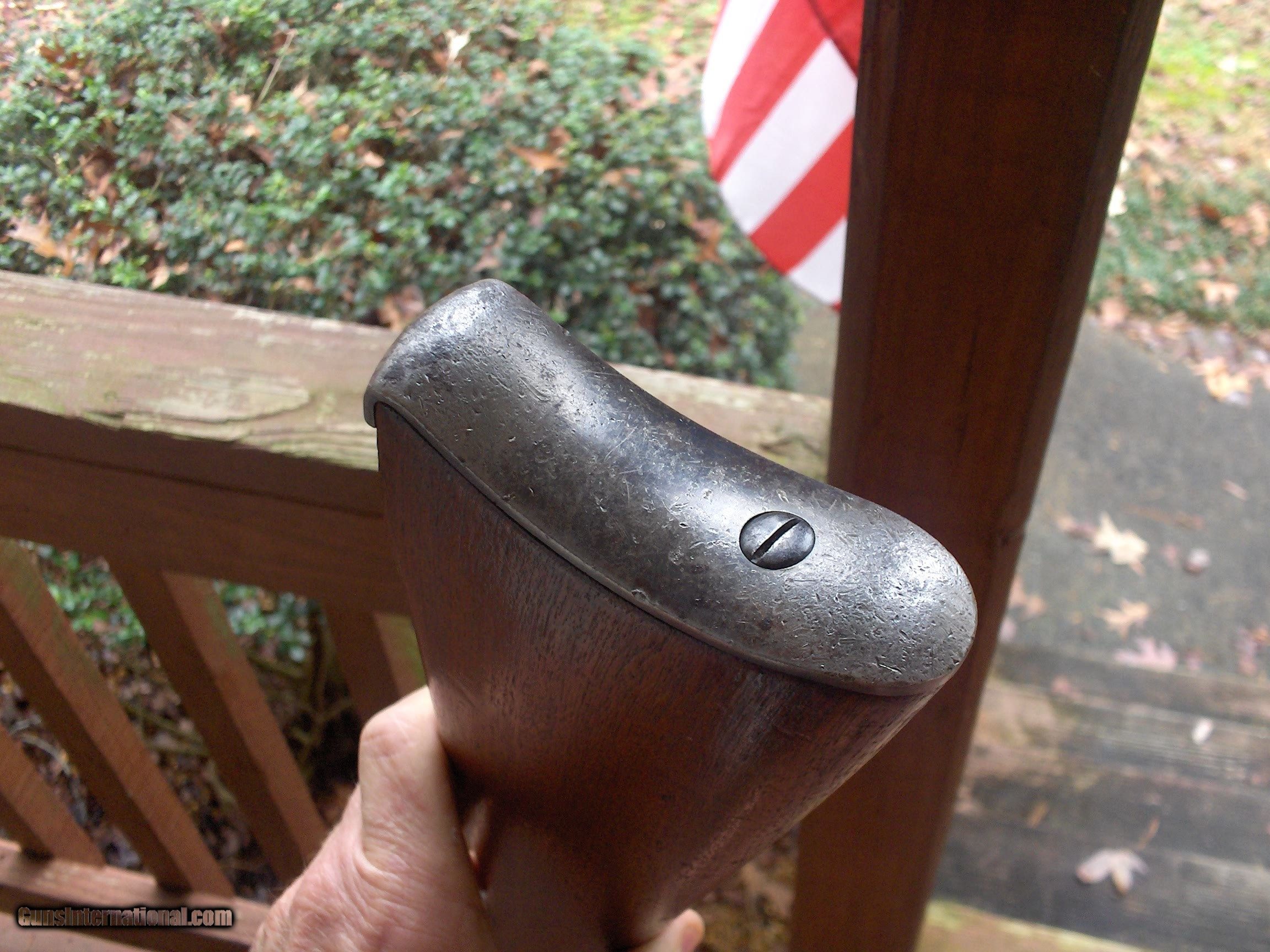 Description: For sale is one excellent condition 1884 Springfield Trapdoor in 45/70 caliber. Metal finish is a mix of original blue and brown patinea and is smooth and free of pitting other than the trigger guard. Wood is possibly refinished but is in great condition with no signifigant damage, splits, or cracks at all, only a few minor dents. Bore is very nice, bright with very good rifling and is a great shooter! Still has the stacking swivels and original cleaning rod. Has an 1879 buckhorn rear sight with taller front sight blade for a much better sight picture, looks and works great! Please examine pics and ask all needed questions. Will only require proof of being 21 years of age. Since this firearm is an antique, it therefore does not require an FFL. Will require a USPS money order or bank check for purchase. Sorry no CC. NO SALES OUTSIDE U.S! FREE SHIPPING! SOLD Antique: Yes Rifle Caliber: .45-70 Government Manufacturer: Springfield Model: Trapdoor Serial Number: 159XXX Barrel Length: 29 Condition: Very good Metal Condition: very good Wood Condition: excellent Bore Condition: excellent |