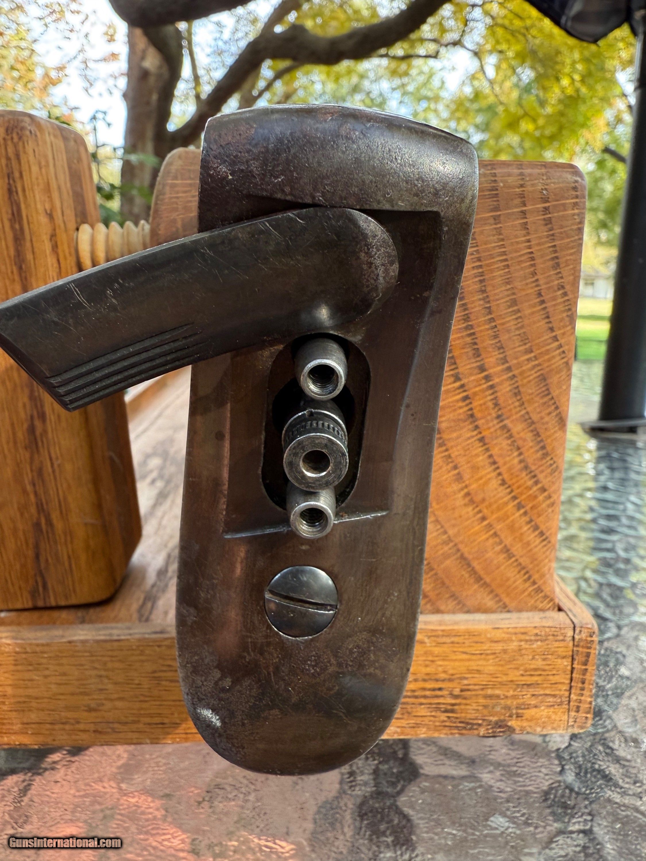Sights / Optics: The front sight is a blade pinned on top of a rectangular base set on the barrel. The rear sight is a Buffington that adjusts for windage and elevation. The rear sight is marked with a “R”. Which is incorrect. Should have a C.