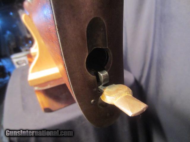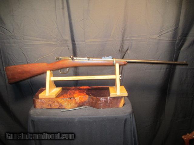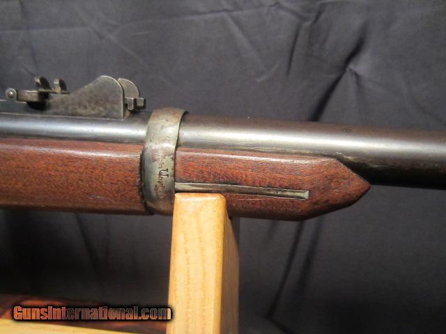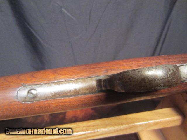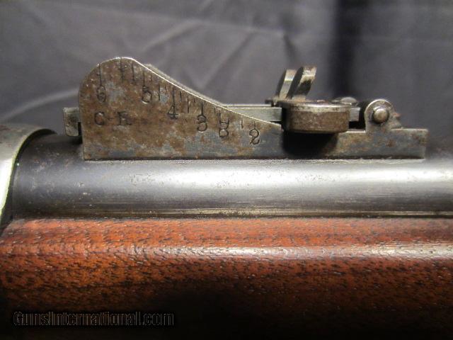 Description: SPRINGFIELD CHASE-REECE BOLT ACTION RIFLE. CALIBER 45-70 MADE BY SPRINGFIELD ARMORY 1882, MAGAZINE TUBE RACKET TYPE FEEDS THROUGH BUTT STOCK, THE ONE WE HAVE HAS THE BARREL CUT TO 24" AND SECOND BAND AND WOOD REMOVED. THACTORY BARREL BLUE 95% WOOD EXCELLENT WITH SA INSPECTION STAMP ON BUTT STOCK DATES 1884. BORE EXCELLENT MECHANICS AND FEED WORK WELL. NO RUST OR PITTING. ONLY LOSS OF BLUE ON TRIGGER GUARD AND LOWER STRAP. ONLY 750 MADE BY SPRINGFIELD FOR MILITARY TRAILS. NEED MORE INFORMATION ALWAYS BEST TO CALL OUR OFFICE 716-941-3946 SOLD Antique: Yes |