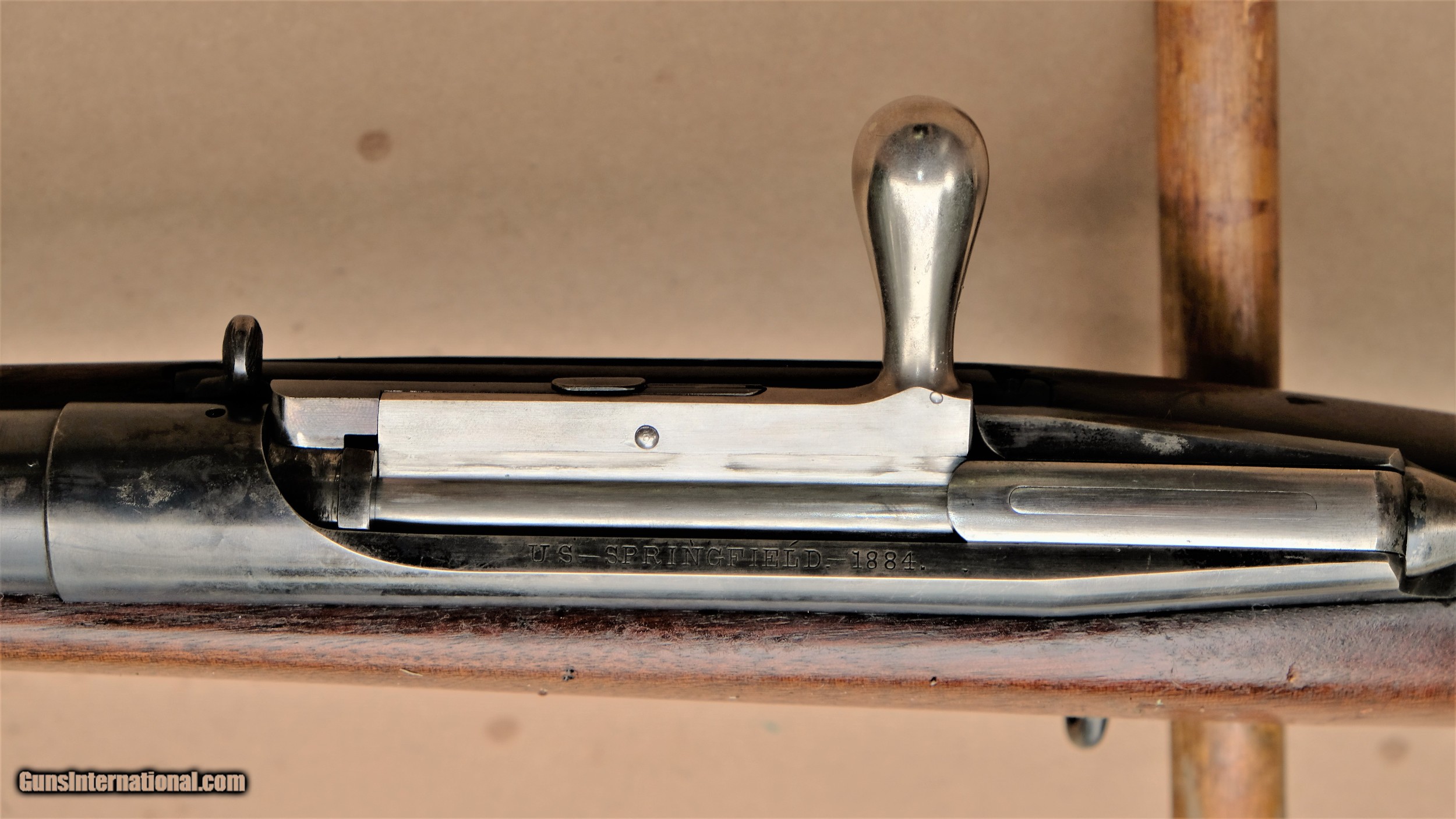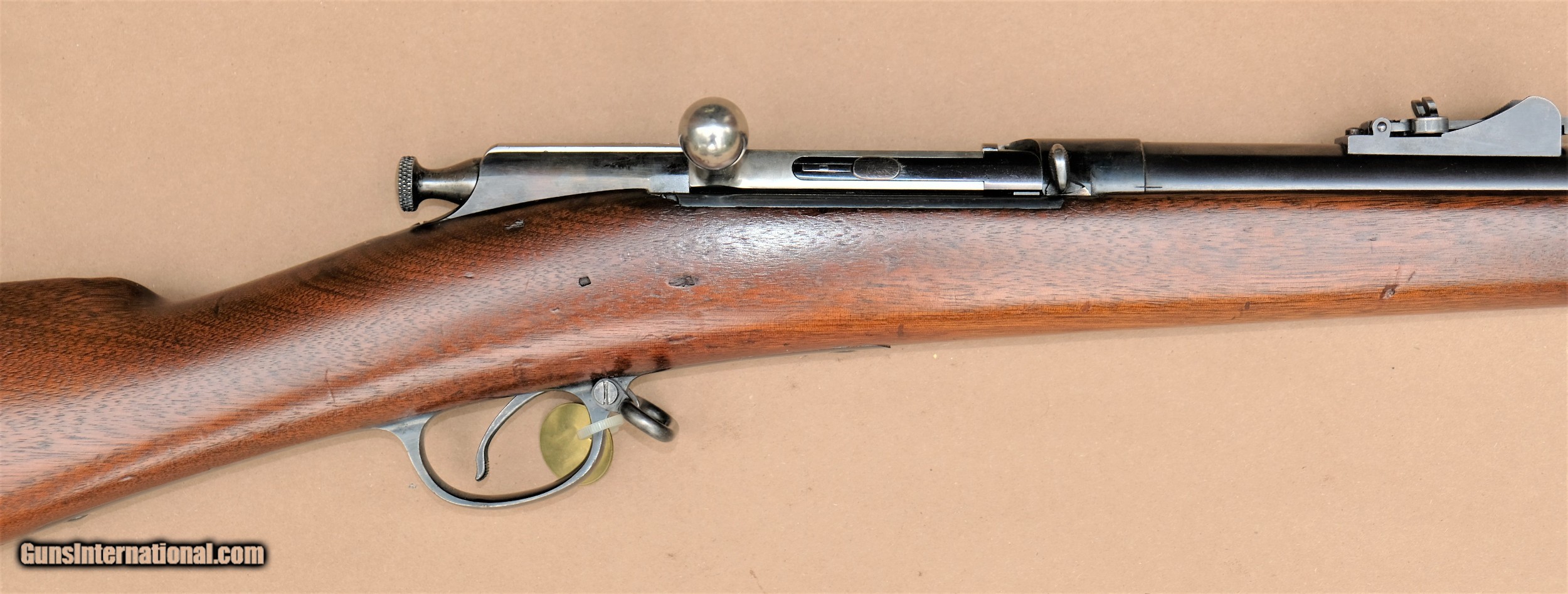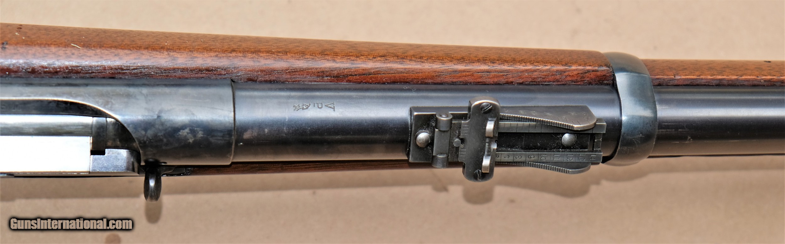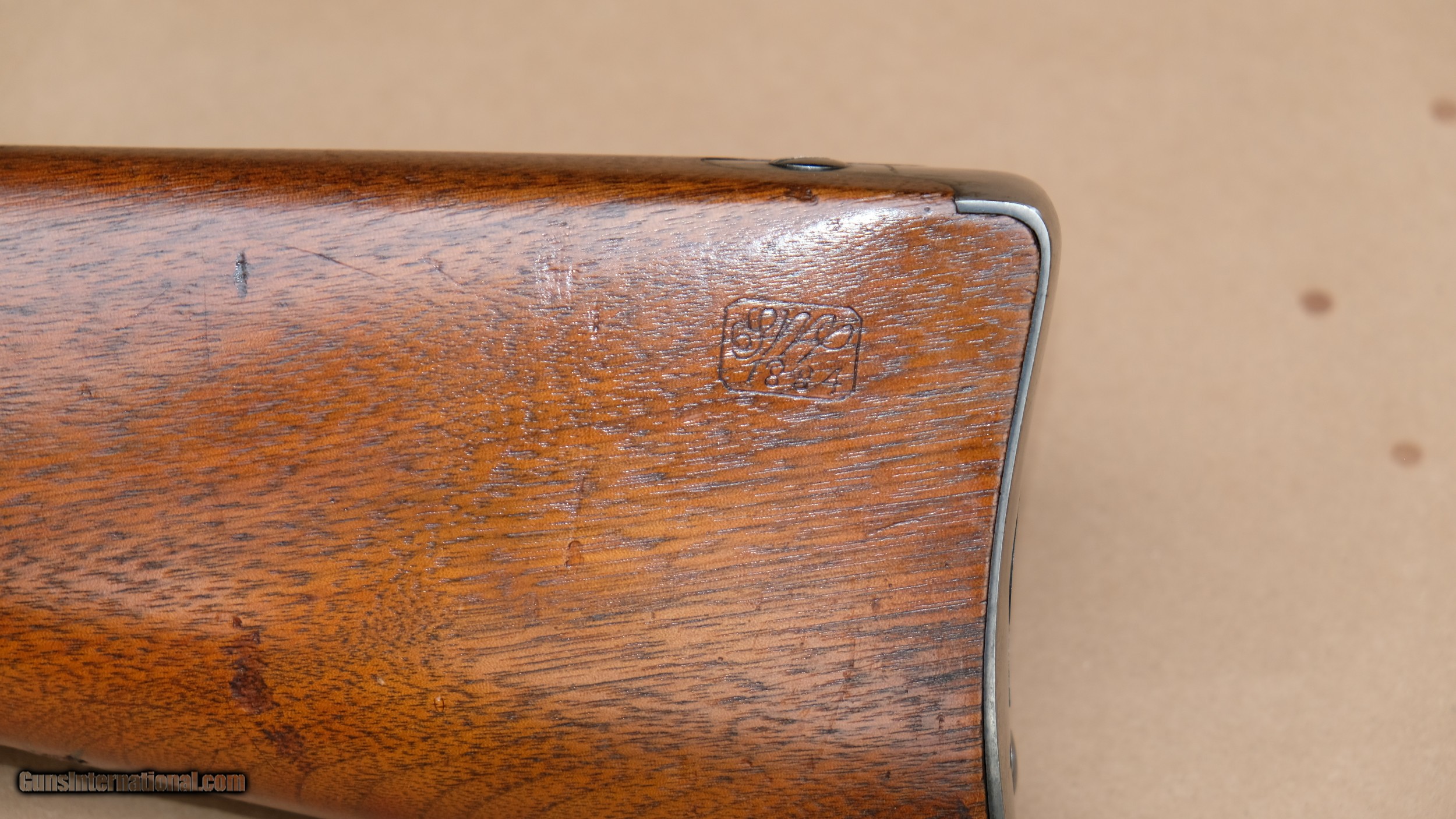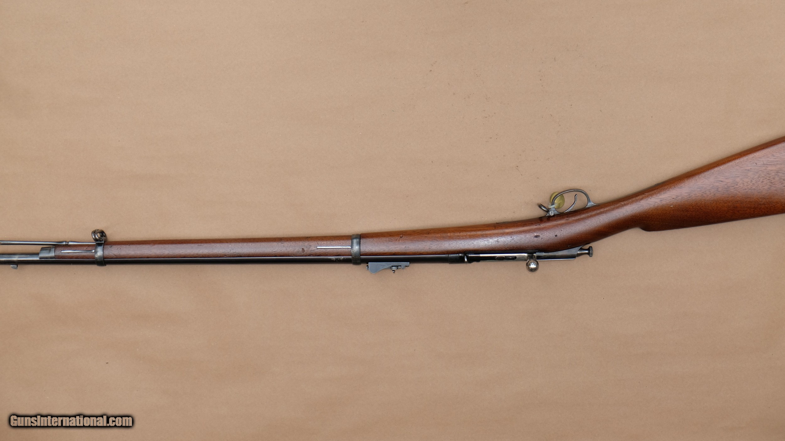 Description: The U.S. Rifle Model 1882, the Chaffee Reese, was one of the first bolt action rifles manufactured at Springfield Armory in 1884. Only a total of 753 were made for trials. The rifle has a seven round magazine that loads through the butt. A ratchet mechanism advances the cartridges with the action of the bolt. Unlike many examples, this rifle has its magazine assembly and it is in fine working order. The firearm is equipped with a cutoff to allow the arm to be used as a single shot while retaining a full magazine for emergencies. The majority of these rifles were heavily used in the west as they were trial rifles. This example is exceptional as shown by the many photographs. Of particular note is the special rear sight marked C-R, the pristine cartouche and the remaining finish on the rifle. The bolt is bright, the action case hardened in oil and the remainder of the arm rust blued. The only glitch is shown in the last photo. SOLD Antique: Yes Rifle Caliber: .45-70 Government |