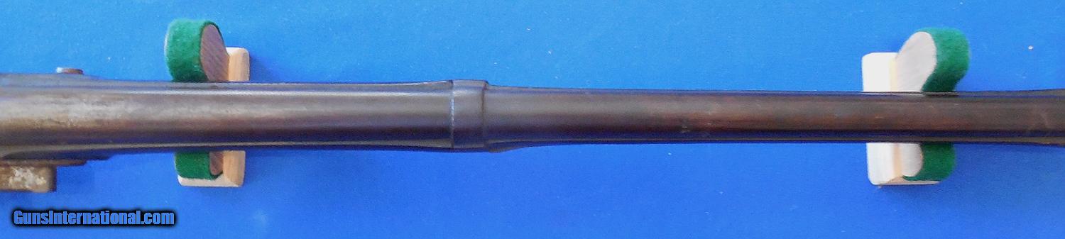 Description: Sold Pending Funds / US Springfield Armory Model 1816 Flintlock Musket, serial # None, cal. 69 smooth bore, with a 41 1/4” barrel that's turned to a brown patina. The left side of the barrel is stamped with Eagle Head proof and the lock plate is marked "SPRINGFIELD" in front of the hammer with a faint trace of the Eagle. This musket retains all three barrel bands with band springs and both sling swivels, the iron buttplate and comes with its original iron ramrod. The iron trigger guard is rounded at both ends and has a screw fastened swivel. The black walnut stock has a slight crack behind the barrel securing screw and another in the left bottom of the buttstock neither of which I would call drastic or alarming. This musket functions flawlessly, sparks nicely when trigger is pulled and the flint on the hammer hits the striker plate but considering its age I don't recommend shooting it. The overall condition as photographed and described is good - good plus. Inv.: # 22-169 SOLD Antique: Yes |