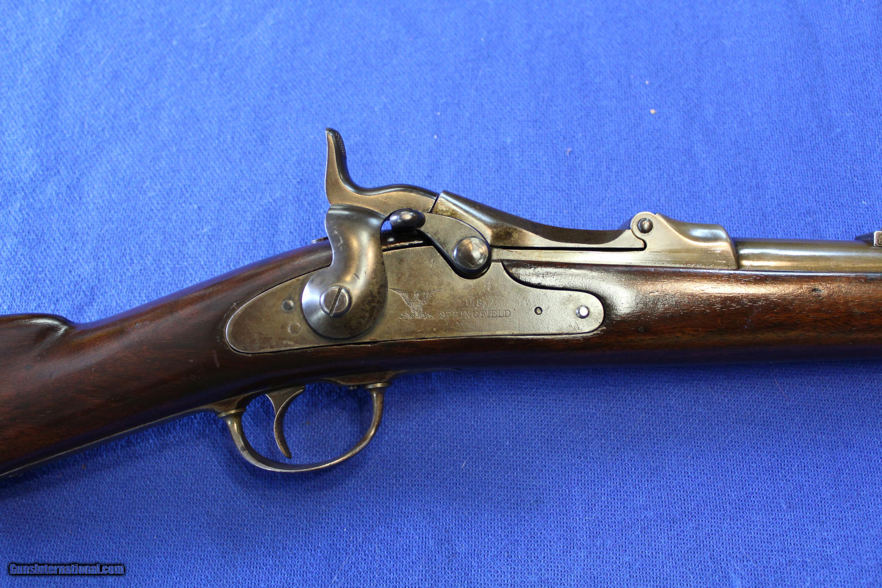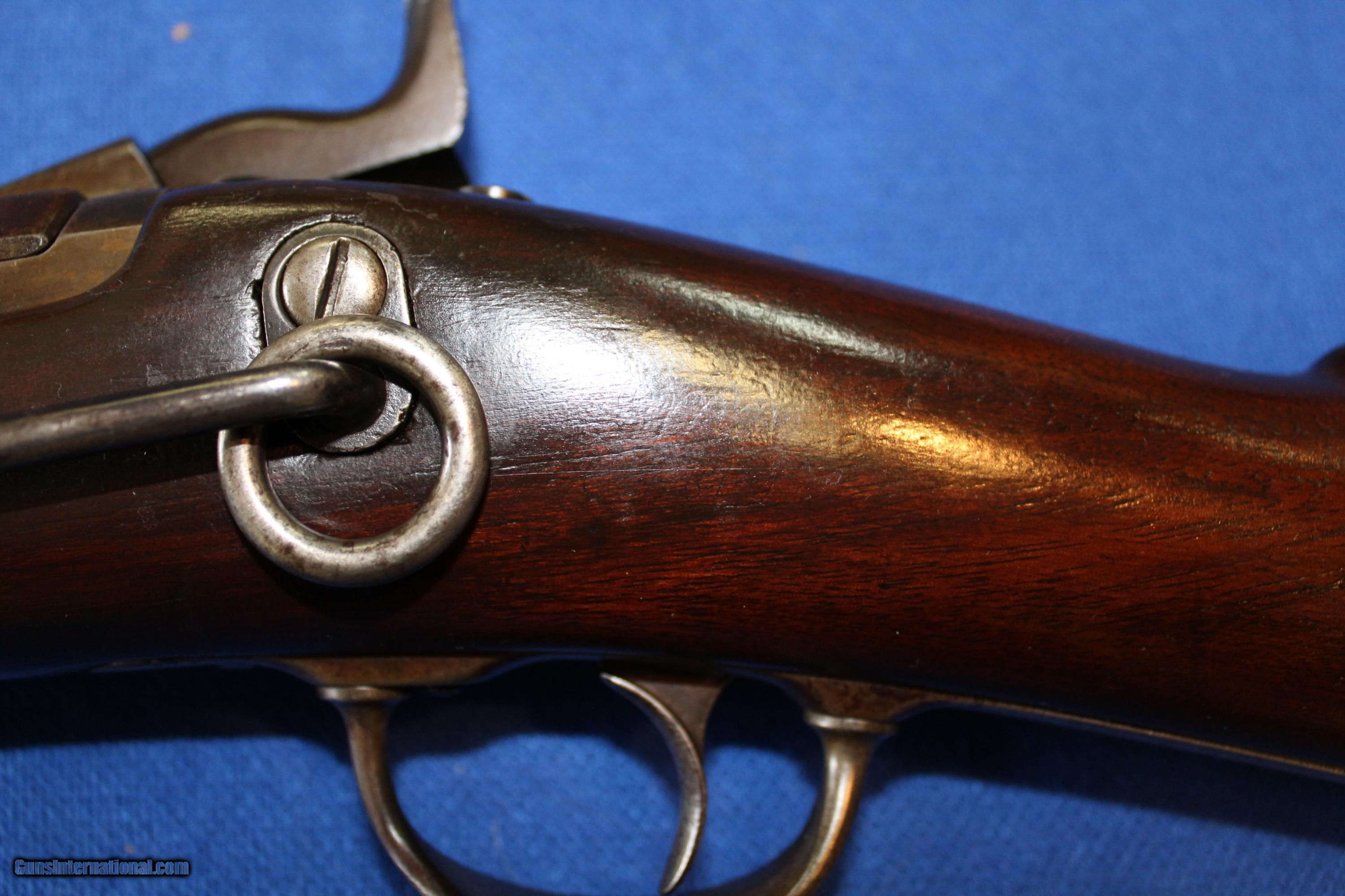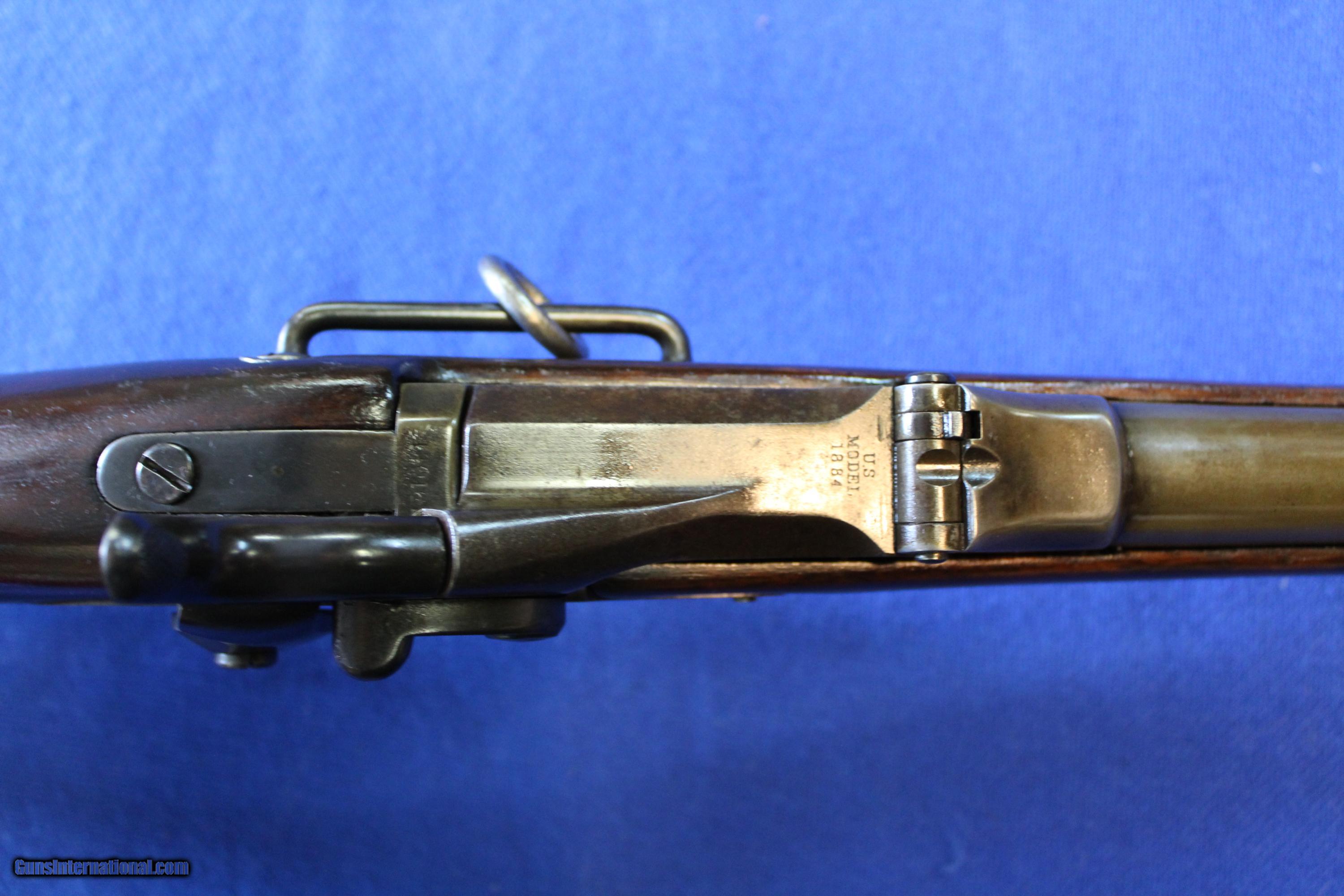 Description: Up for sale today is a US Springfield Model 1879 Trapdoor Carbine serial no. 140161 (1879 production) chambered in caliber .45-70. This excellent original carbine has an updated model 1884 rear sight, an excellent bore and shows original cartouches. An outstanding Trapdoor carbine and a great piece of American history. All Pennsylvania residents please add 6% sales tax. SOLD Curio/Relic: Yes Antique: Yes Manufacturer: US Springfield Model: 1879 Trapdoor Carbine Serial Number: 140161 Caliber Info: .45-70 Government Condition: Excellent original Metal Condition: Excellent original Wood Condition: Excellent original Bore Condition: Excellent |