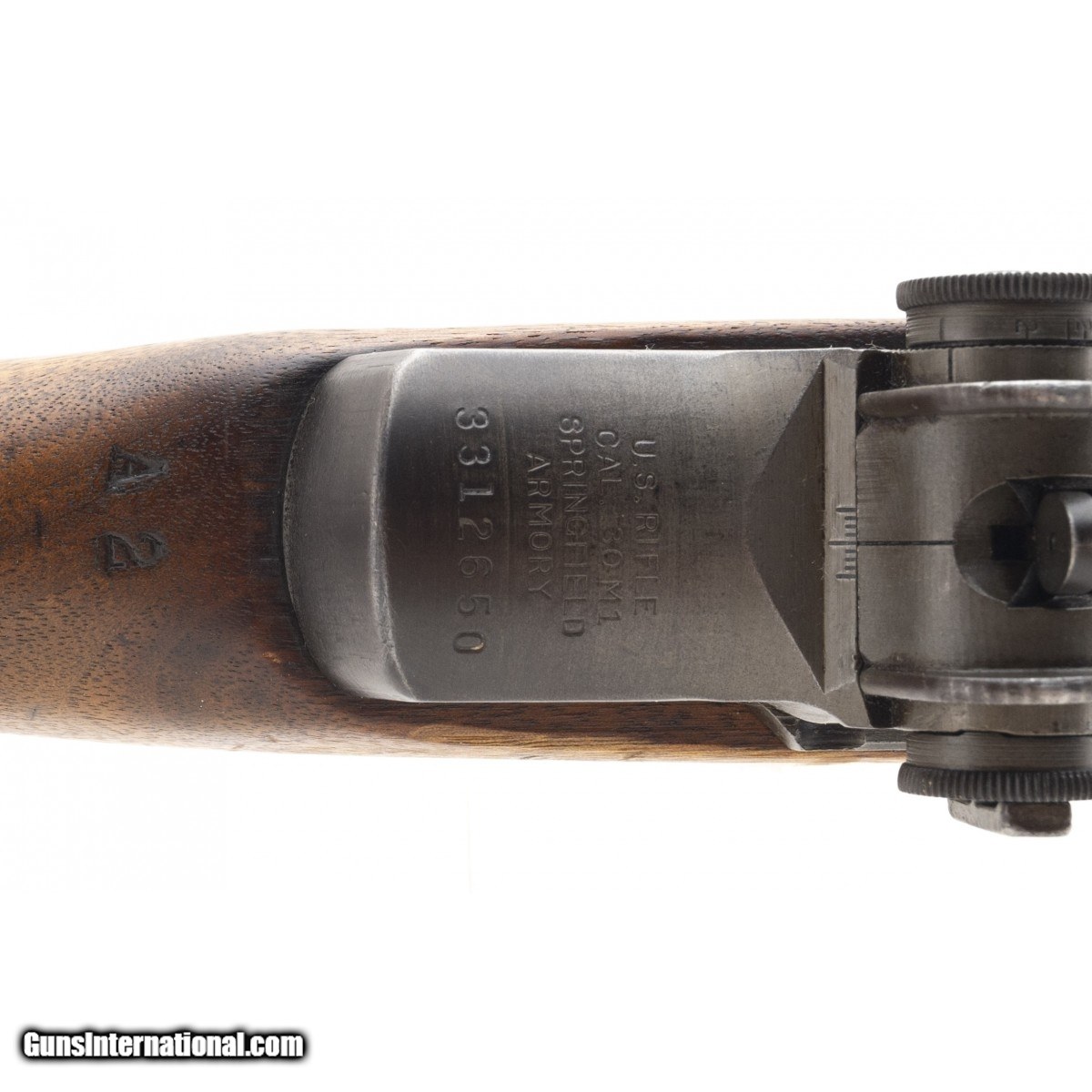 Description: " US WWII era military rifle. Barrel is dated 1944. Bore is excellent. Stock has nice cartouches. Early style long fork and uncut op rod. Very good overall condition. A popular US military rifle. SOLD Curio/Relic: Yes |