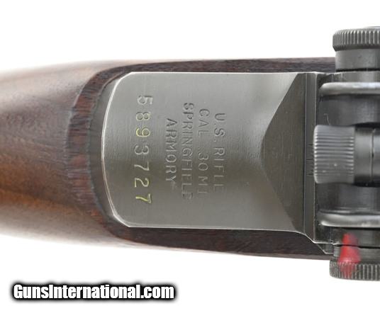 Description: "Springfield M1 Garand National Match .30-06 caliber rifle. 24" Barrel with bright bore. This gun has everything expected of a National Match rifle: NM (National Match) barrel, NM gas cylinder, NM 062 front sight, NM rear sight assembly, 7790722-SA NM op rod, numbered to the gun trigger group, and properly bedded stock. The SA (Springfield Armory) 7791035 barrel is dated 2/63 (Feb 1963). Overall condition is excellent with even dark parkerized finish. Stocks are excellent. Butt plate has a nicely struck defense acceptance stamp and circled P proof stamp. The bottom of the pistol grip has a yellow painted “6". The stock also has a DCM decal. Action functions correctly. This is a super circa 1963 M1 National Match rifle. SOLD Curio/Relic: Yes |