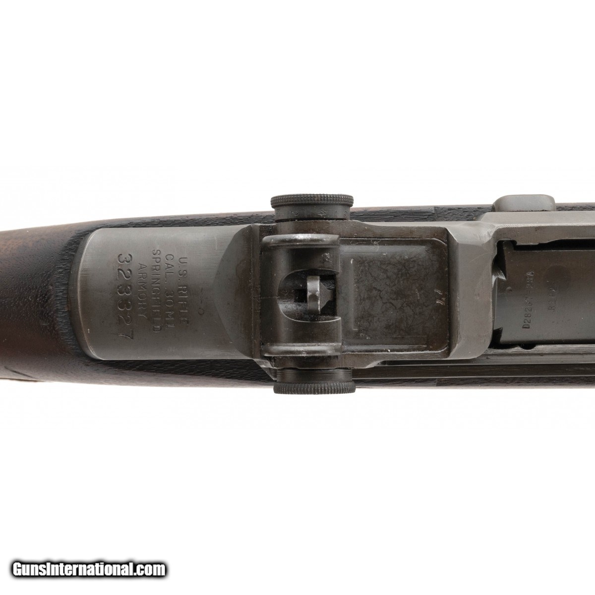 SN: 323327. Manufactured in 1941, .30 M1 with a 23.98"" barrel. The bore is excellent. The barrel is dated 1941 and marked with crown over BNP. All parts marked Springfield, has Type 1 rear sights, short fork follower rod and unmodified operating rod. The stock is marked with a ""P"" under the grip and Ordnance Wheel and Springfield cartouche on the left side. Overall excellent condition. Comes with period correct leather sling. -consignment