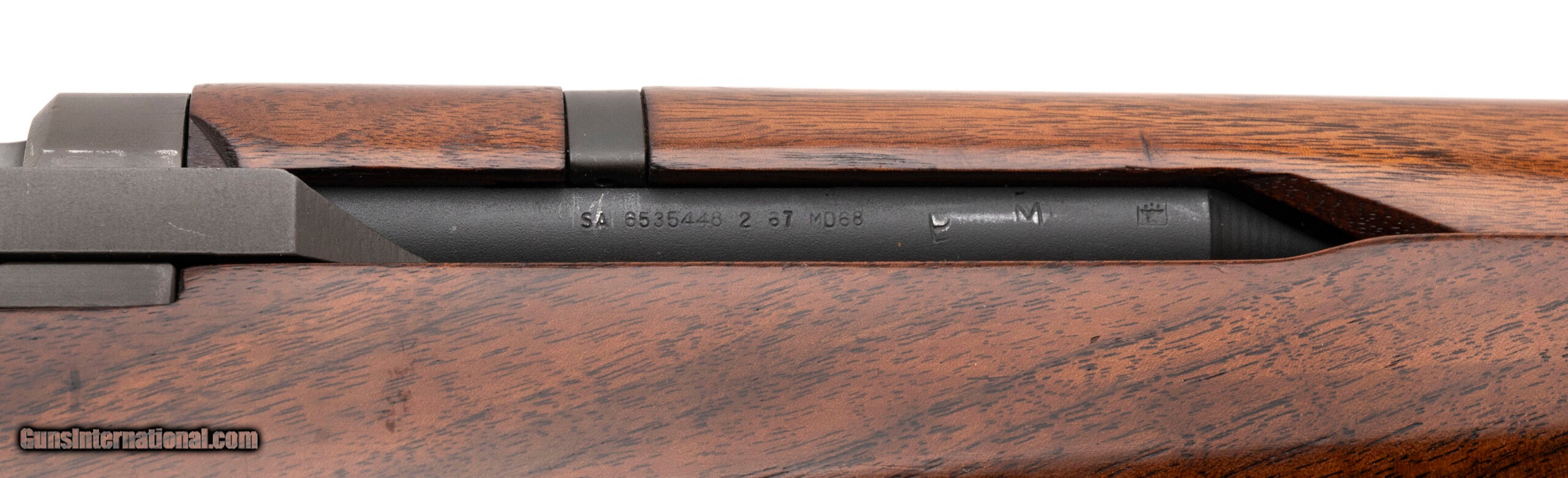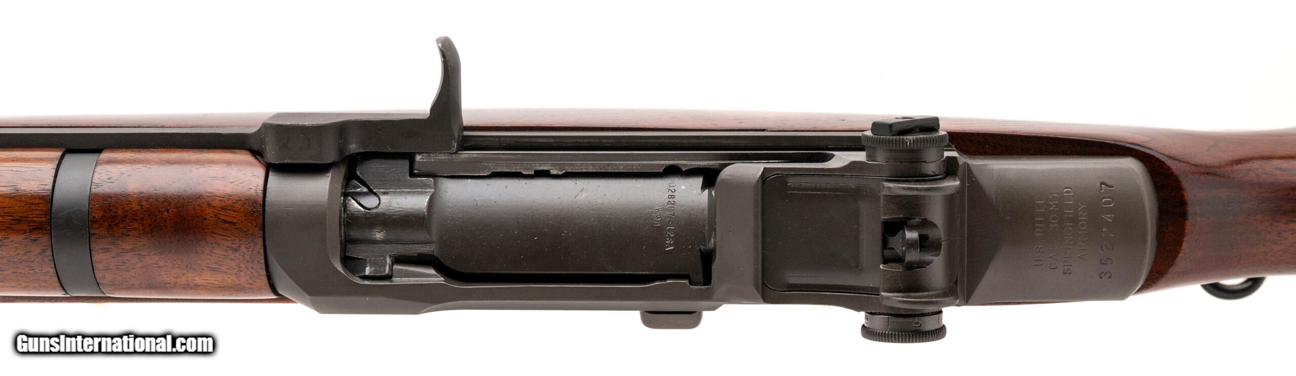 Description: "SN: 3522407. Made in January 1945 with a 24-inch barrel chambered for the .30-06 cartridge. This rifle is equipped with a February 1967 dated Springfield barrel that has an excellent bore with sharp visible rifling. The USGI wood furniture is in excellent condition & all three pieces are matching in color & condition, but they have been varnished. Rifle is equipped with a National Match front sight, the ""lock-bar"" rear sight assembly, a poppet valve gas cylinder lock screw & a reproduction M1907 leather sling. SOLD Curio/Relic: Yes |