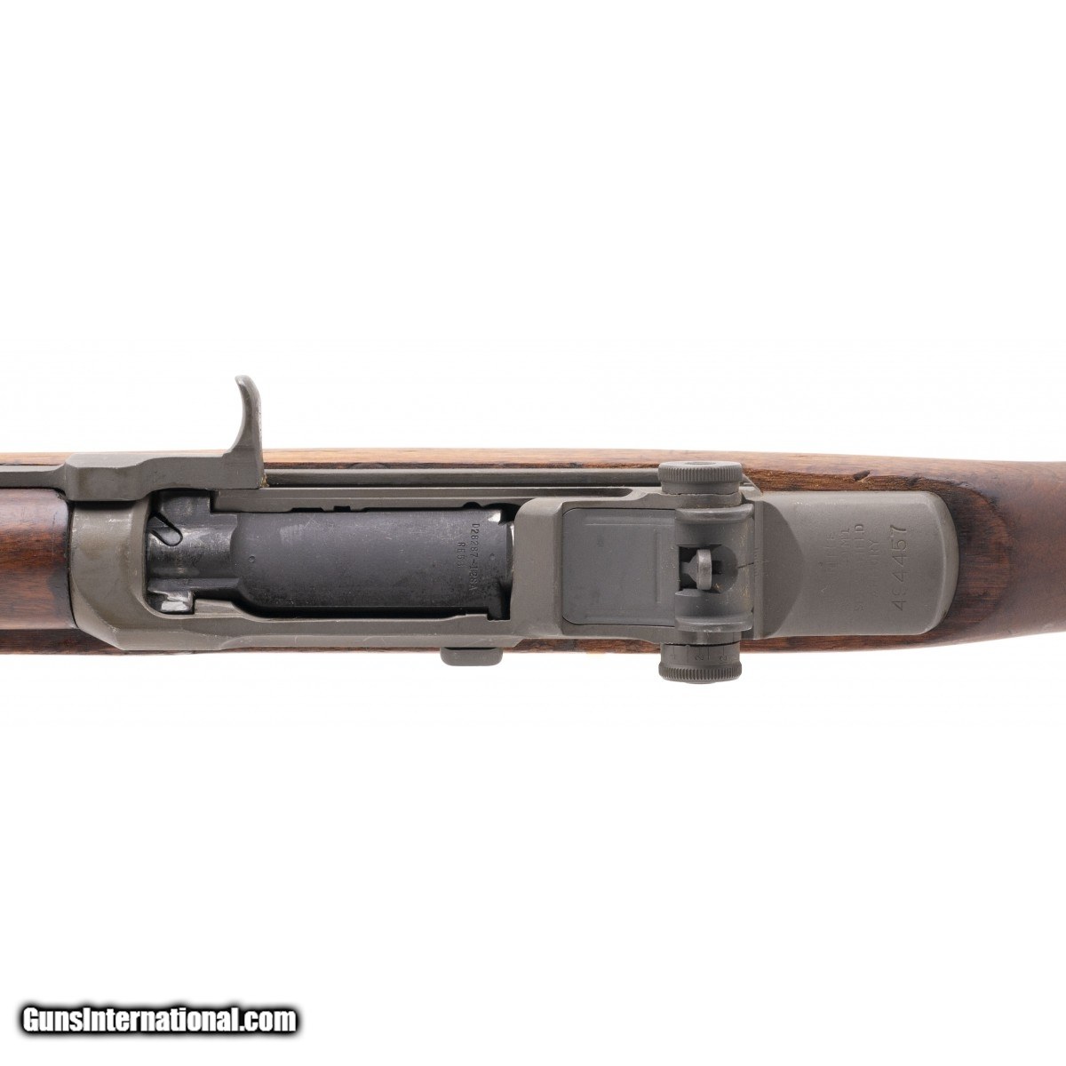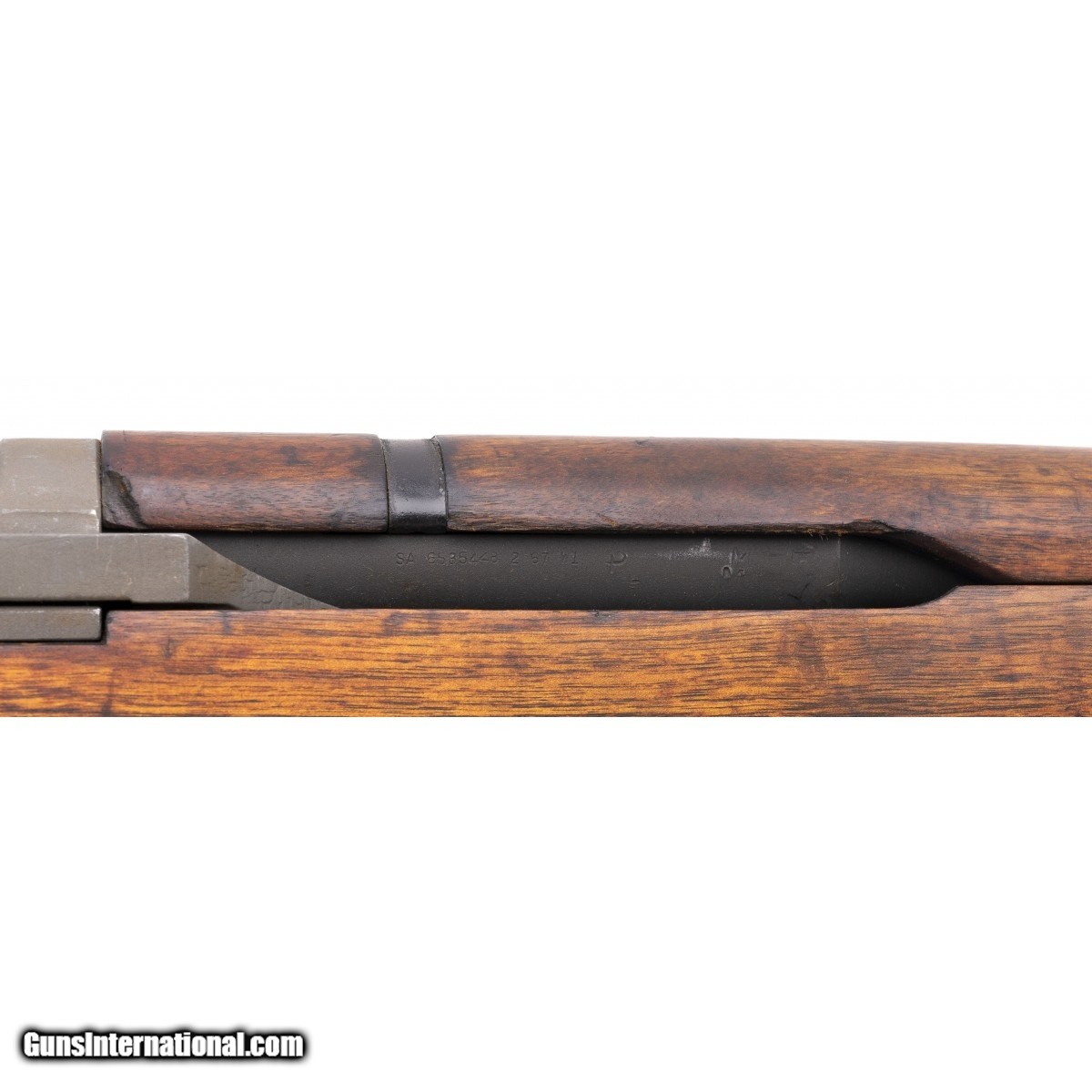 Serial No. 494457, made February 1942, .30-06, 24"" round barrel dated 2-67, bore is good with some light surface frosting noted in the grooves, rifling remains strong. Op-rod has been cut, all parts are ""SA"" marked. Stock has expected nicks, dings and scratches visible with light sanding also having been done. Action is smooth and functions correctly. Consignment