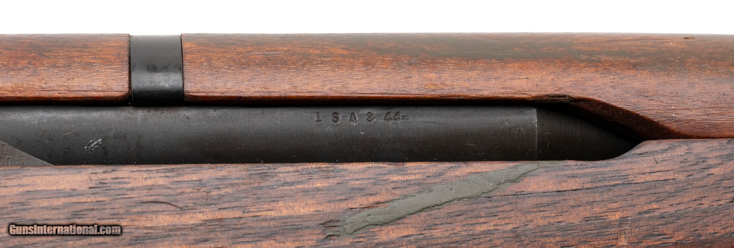 Description: "Serial No.2663239, made March of 1944, .30-06, 25" round barrel marked “S-A 3-44". Bore is bright and shiny with strong rifling noted. Receiver and barrel looked to have been together since March of 1944, op-rod has been cut. All marked parts are stamped with “SA". Stock is good with light handling marks noted. Action is smooth and functions correctly. SOLD Curio/Relic: Yes |
