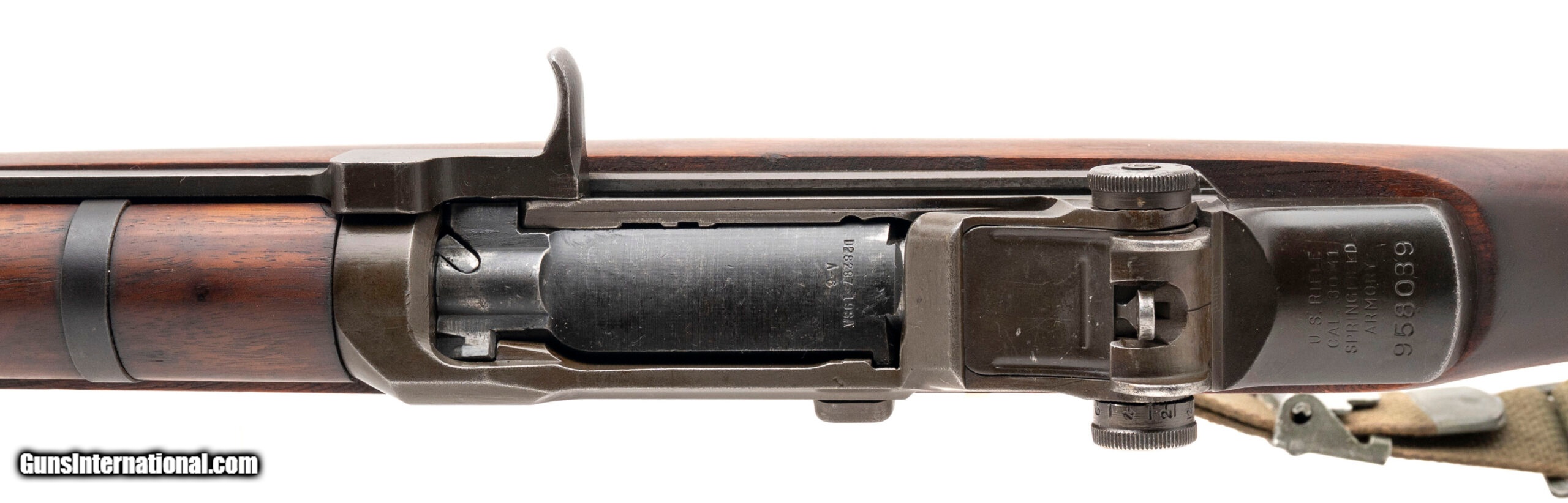 Description: "Serial No. 958089, made November 1942, .30-06, 24" round barrel marked “HRA D6535448 10-52 RS17 P M". Bore is good with light frosting visible in the grooves, rifling remains strong. Op-rod has been cut, all other parts are marked “SA". Stock is in excellent condition. Rifle comes with South Korean sling, SOLD Curio/Relic: Yes |