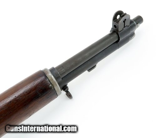 Springfield M1 Garand .30-06 caliber rifle. WWII production. Barrel is dated 1945. Bore has strong rifling with an area of pitting. Wood is very good with minor dents and dings. There is an Arsenal repair at the floor plate. Receiver is import marked. Good overall condition.
