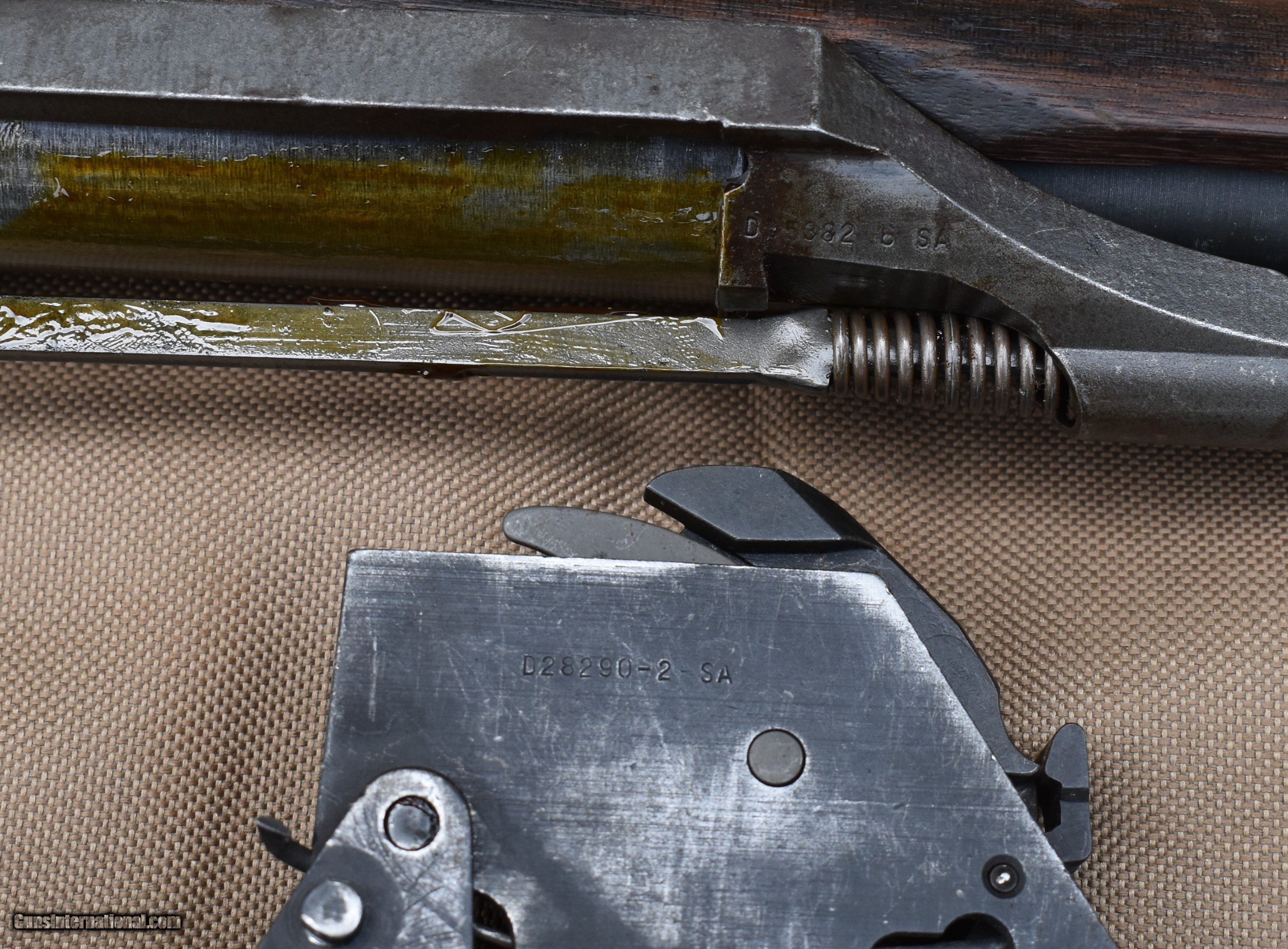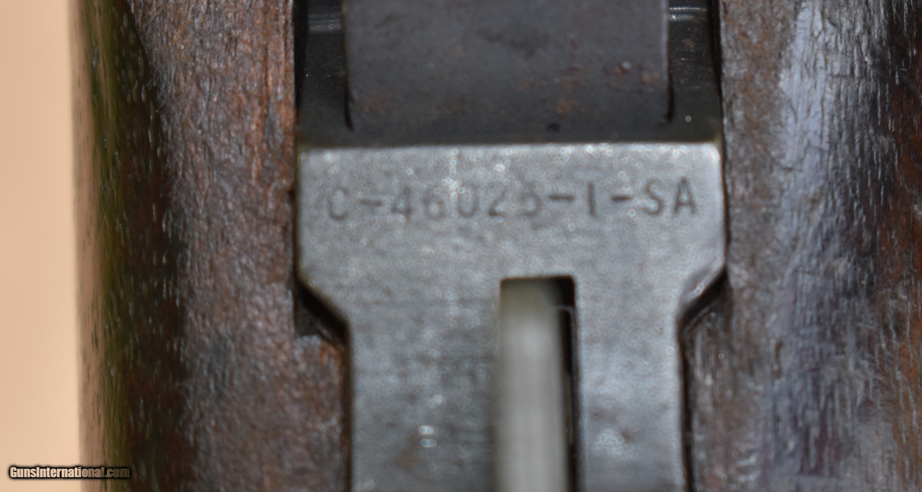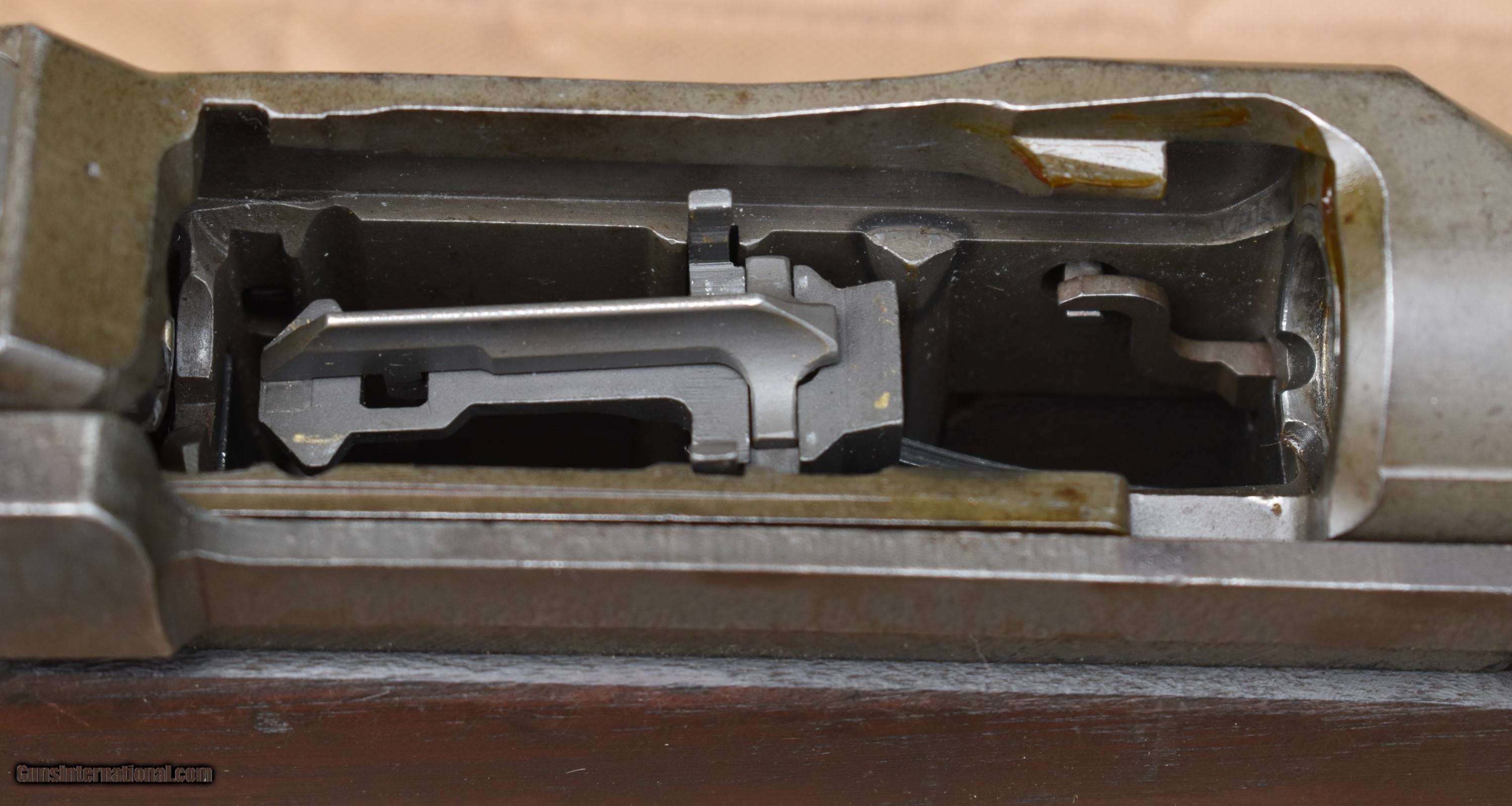 Description: Here is a nice Springfield M1 Garand original built in December 1938. 4 digit serial number 6450. Has been converted to gas port. It does have the 7th round modification. It has a nice olive finish. There is very light pitting in a couple place as seen in pics. Here is the breakdown: Serial number: 6450, December 1938 Barrel: B.SID.51 1955(Italian), ME=3, TE=3, bright bore Bolt: D28287-12SA Heat lot RE6B Op Rod: D35382 6 SA cut Type 2 lockbar rear sight Trigger guard: milled C-46025-1-SA Trigger housing: D28290-2-SA Hammer: C46008-1 Safety: SA-11 Follower: unmarked Bullet guide: stamped Follower Rod: Long fork Follower Arm: no bevel Gas cylinder lock: chamfered Gas plug: O Gas cylinder: wide base Stock: AAP cartouche(Augusta Arsenal) with small ordnance wheel on the grip, P-no circle, no serif FREE SHIPPING IN THE LOWER 48. Must ship to a FFL or C&R. Payments: Check, MO, Bank check, all held to clear. $2350 SOLD |