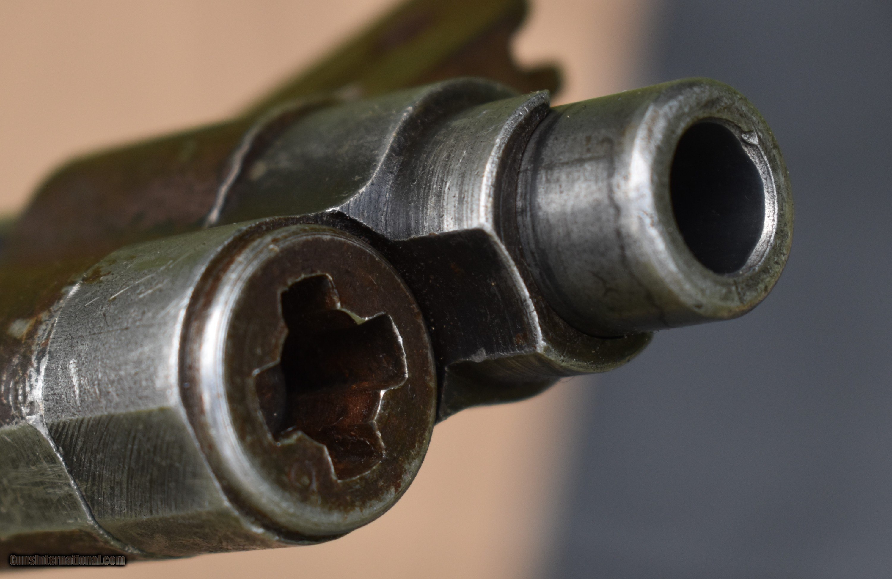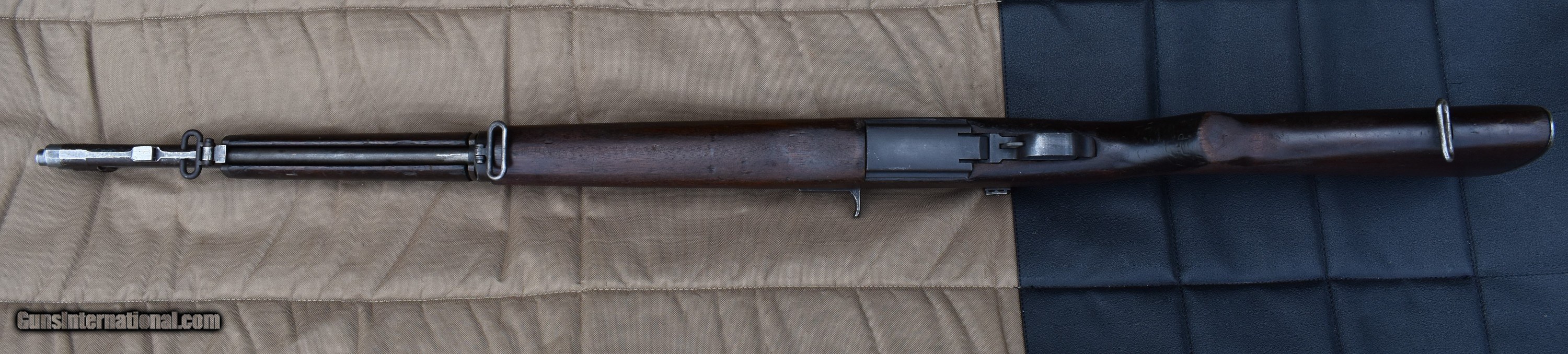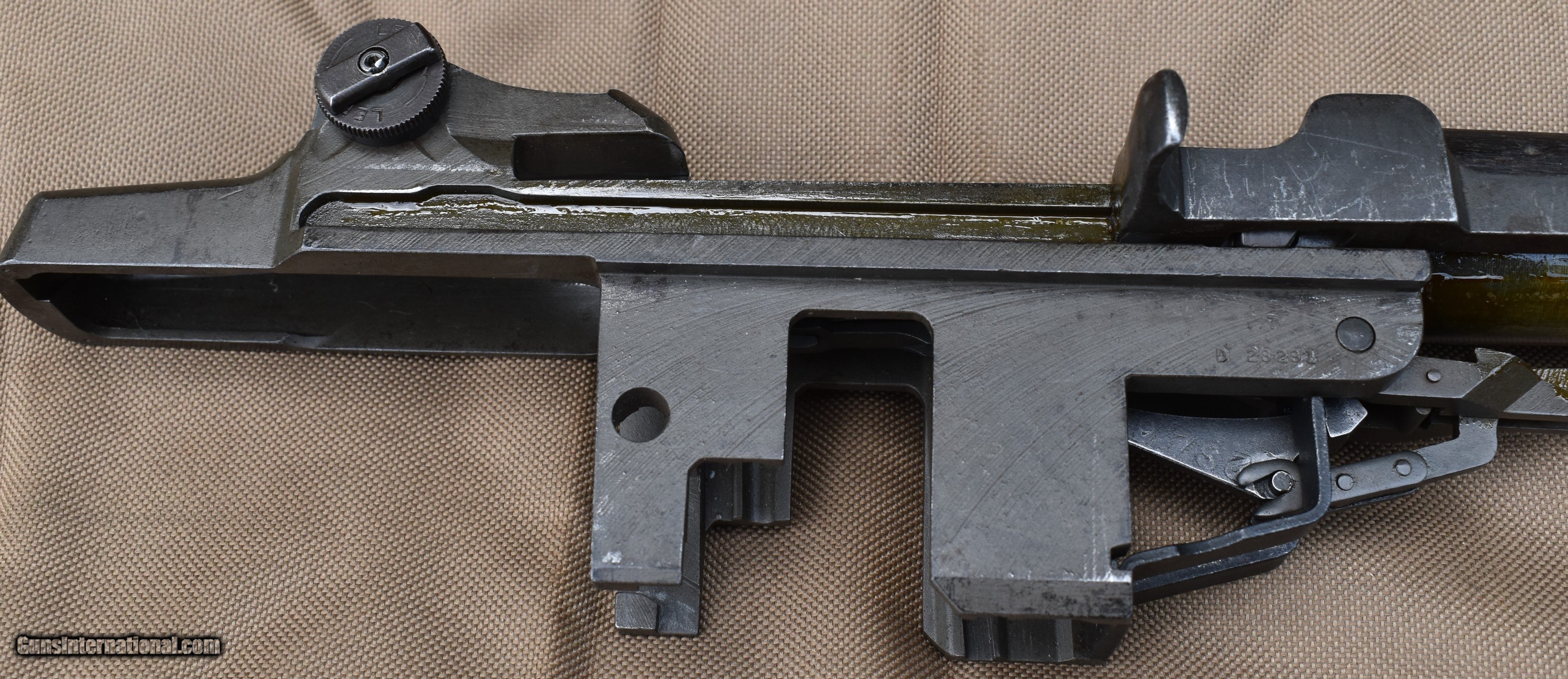 Description: Here is a nice Springfield M1 Garand original built in December 1938. 4 digit serial number 6450. Has been converted to gas port. It does have the 7th round modification. It has a nice olive finish. There is very light pitting in a couple place as seen in pics. Here is the breakdown: Serial number: 6450, December 1938 Barrel: B.SID.51 1955(Italian), ME=3, TE=3, bright bore Bolt: D28287-12SA Heat lot RE6B Op Rod: D35382 6 SA cut Type 2 lockbar rear sight Trigger guard: milled C-46025-1-SA Trigger housing: D28290-2-SA Hammer: C46008-1 Safety: SA-11 Follower: unmarked Bullet guide: stamped Follower Rod: Long fork Follower Arm: no bevel Gas cylinder lock: chamfered Gas plug: O Gas cylinder: wide base Stock: AAP cartouche(Augusta Arsenal) with small ordnance wheel on the grip, P-no circle, no serif FREE SHIPPING IN THE LOWER 48. Must ship to a FFL or C&R. Payments: Check, MO, Bank check, all held to clear. $2350 SOLD |
