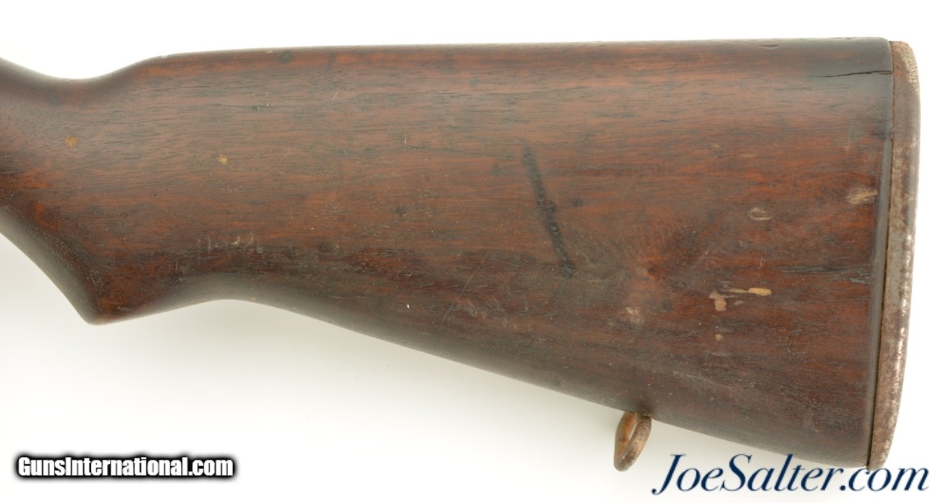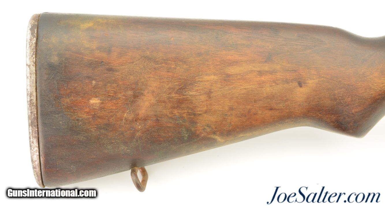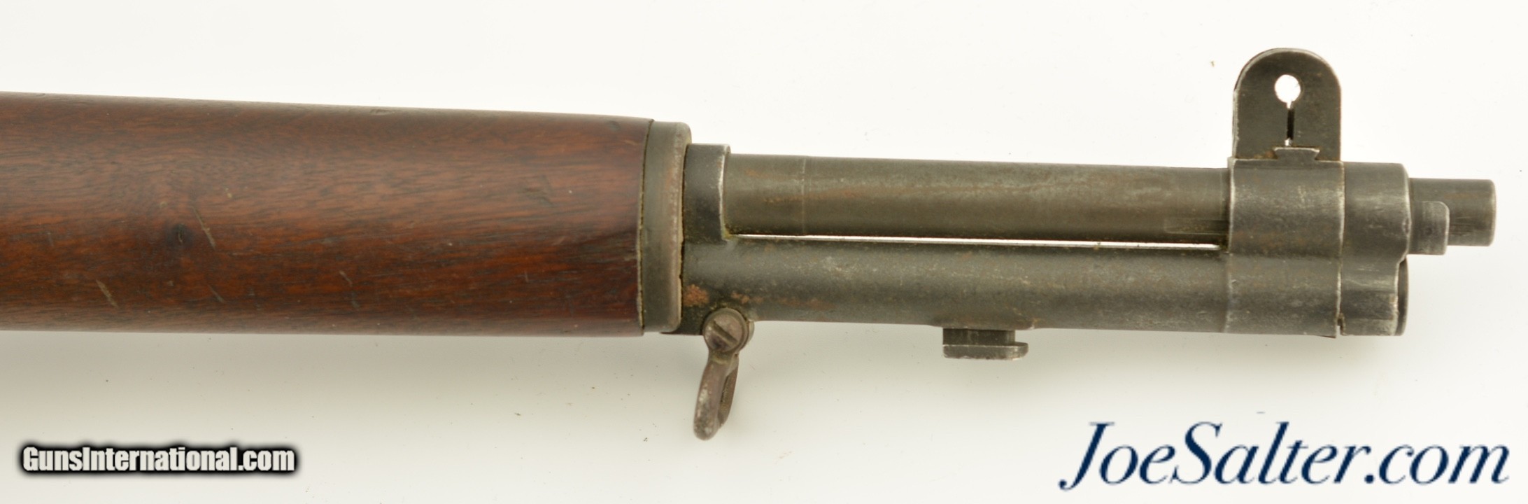Description: Serial #4276669, .30-06, 24" barrel with an excellent, bright bore. This is a 1953-made, Springfield Armory rifle (with 1953-dated Marlin barrel) that has retained 60-70% of the original parkerized finish that has silvering on the high edges and bearing surfaces. Additionally, the exposed portion of the trigger-group housing, the WRA-made op-rod, sling swivels, and buttplate have light-moderate areas of surface oxidation as well. The stock and handguards have numerous small handling marks and blemishes scattered throughout the added military oil finish, and there is a fairly large area of discoloration on the right side of the buttstock and pistol-grip. The gas tube and lock have deep tool and grinding marks, while the gas screw is no longer present. A replacement gas cylinder, lock, and screw assembly is included with the rifle, however. This is an about very good Garand overall, that only needs a bit of TLC to be brought back to fighting trim. FFL or C&R SOLD |
