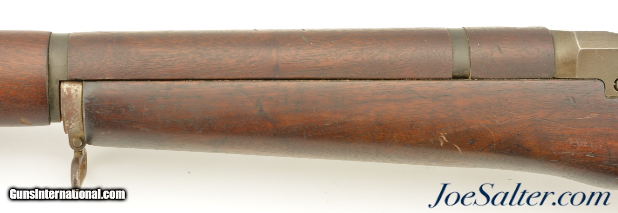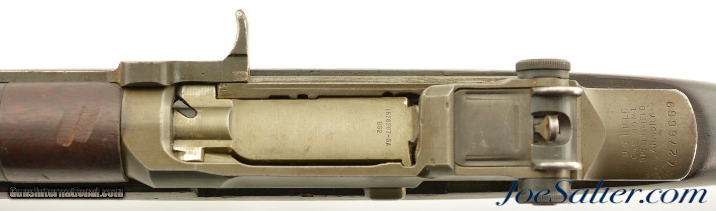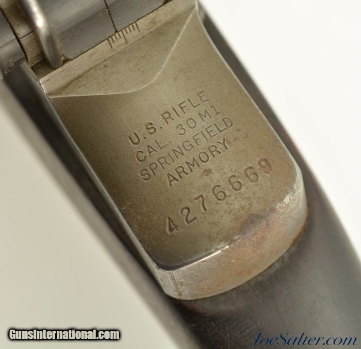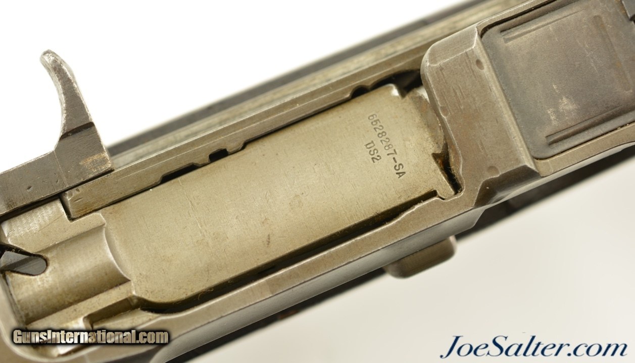 Description: Serial #4276669, .30-06, 24" barrel with an excellent, bright bore. This is a 1953-made, Springfield Armory rifle (with 1953-dated Marlin barrel) that has retained 60-70% of the original parkerized finish that has silvering on the high edges and bearing surfaces. Additionally, the exposed portion of the trigger-group housing, the WRA-made op-rod, sling swivels, and buttplate have light-moderate areas of surface oxidation as well. The stock and handguards have numerous small handling marks and blemishes scattered throughout the added military oil finish, and there is a fairly large area of discoloration on the right side of the buttstock and pistol-grip. The gas tube and lock have deep tool and grinding marks, while the gas screw is no longer present. A replacement gas cylinder, lock, and screw assembly is included with the rifle, however. This is an about very good Garand overall, that only needs a bit of TLC to be brought back to fighting trim. FFL or C&R SOLD |
