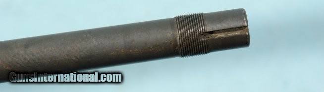 Description: PRE WW2 SPRINGFIELD U.S. M1 OR M-1 GARAND GAS TRAP .30-06 STRIPPED RIFLE WITH NEW REPRO GAS TRAP BARREL, CIRCA 1940. USGI issued gas -trap receiver serial numbered "458XX" with repro 22"(gas tap bbl length) new barrel marked "Repro 1996" on top of barrel. Early receiver re-parkerized but markings still crisp and not fading. Drawing number "D 28291-1" on leg of receiver correct. Has rear sight intact but no bolt nor other parts besides Op Rod Catch and Follower Arm which are attached to each other. NO signs of pitting or extraneous issues. Looks like someones unfinished attempt at restoring a "Gas Trap" Garand to it's former config. Repro Gas Trap cut barrels are not cheap and Pre-War Garands are hard to find considering they made 7 million of them. SOLD Curio/Relic: Yes Rifle Caliber: .30-06 Springfield |