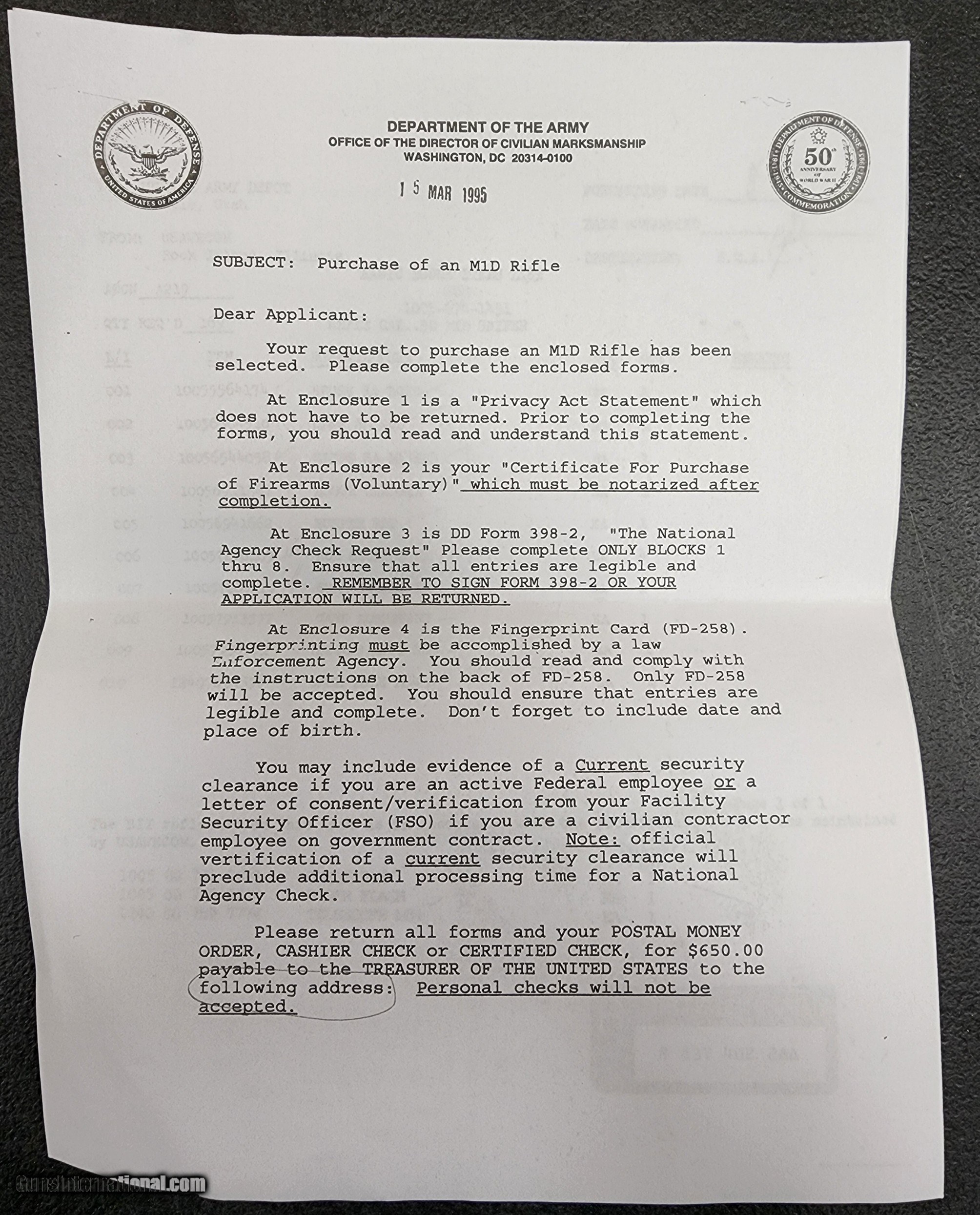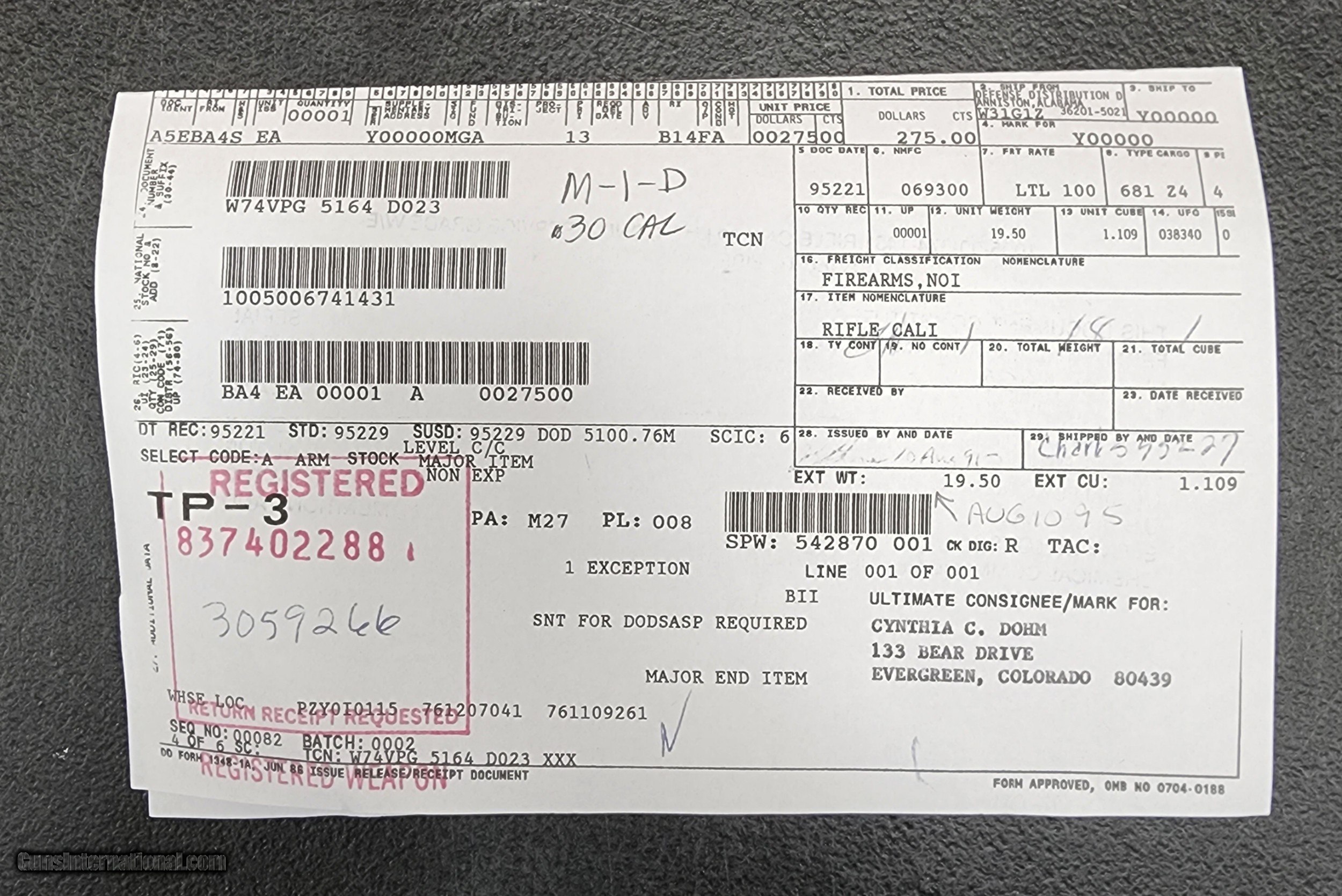 Sold Springfield Armory M1D Semi Rifle .30-06