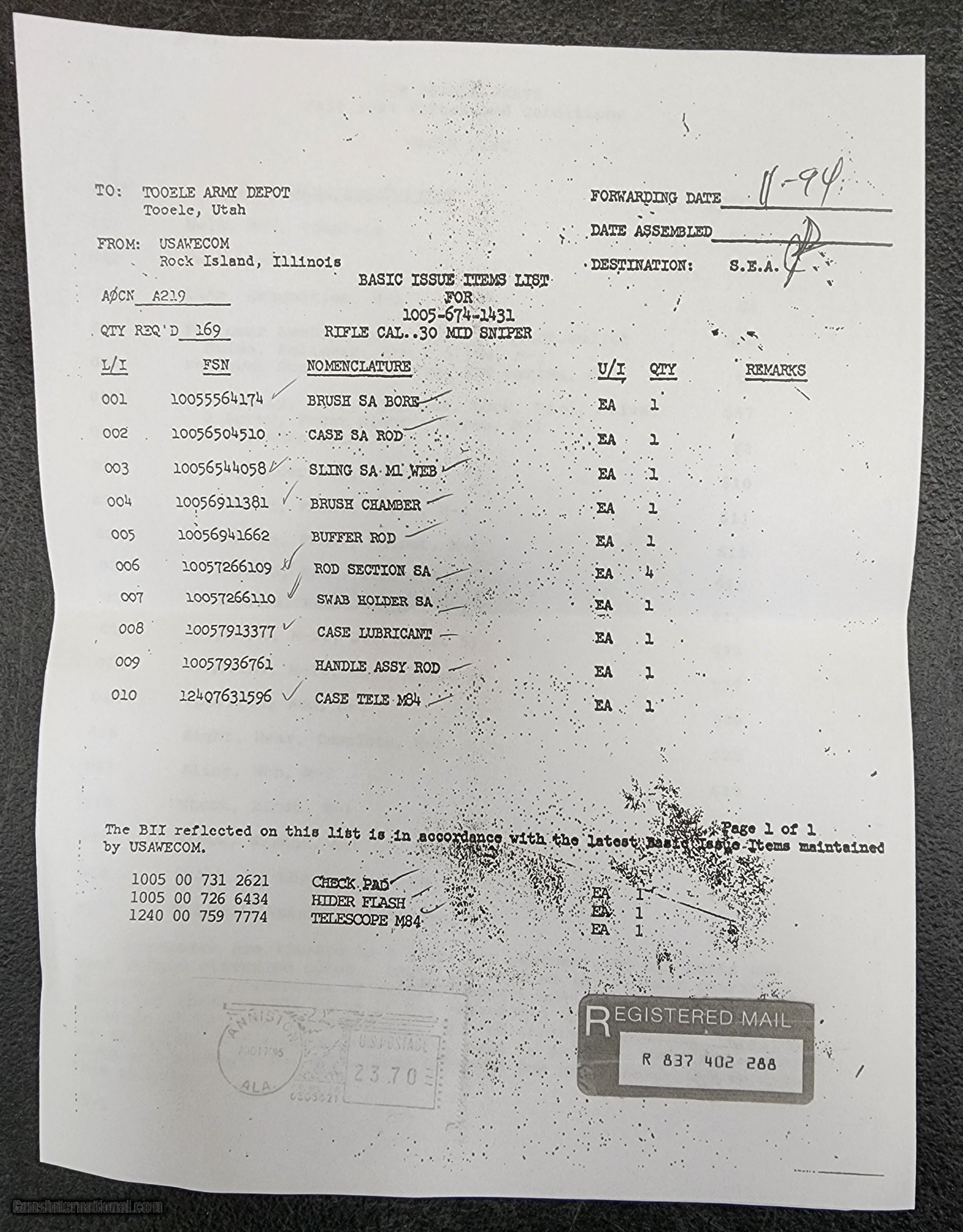 Description: Excellent plus overall condition. "S-A-8-52" M1D barrel, "SA" stock, and M84 scope (in opened packaging). Includes DCM paperwork and shipping box, flash hider, M15 grenade launcher sight, leather cheek piece, and oiler. • Free Shipping, No Credit Card Fees. • Lay-a-way available for this firearm. • 1/3 Down, a 1/3 in 30 Days 1/3 in 60 Days. SOLD Curio/Relic: Yes Manufacturer: Springfield Armory Model: M1D Serial Number: 3059266 Barrel Length: 24 |
