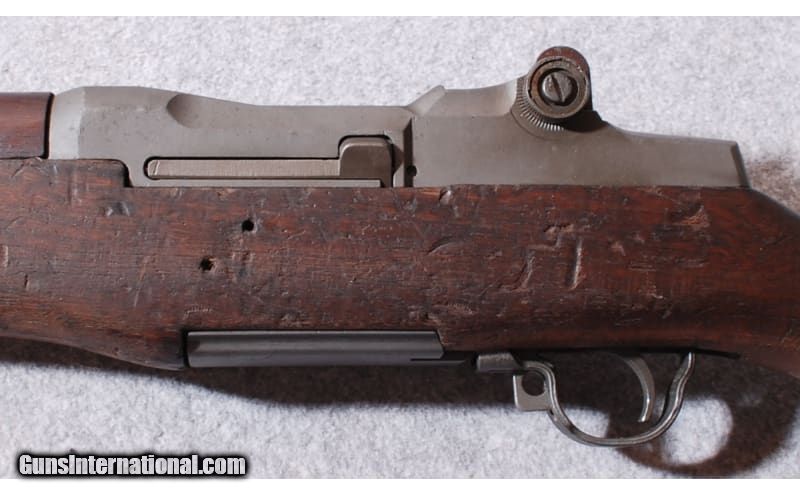 Description: The M1 Rifle was adopted in 1936 and used in one form or another through The Vietnam War. This example shows the wear and tear of most military arms, but the metal parts have been arsenal reconditioned and seem in very good condition. .30-06 Springfield SOLD Curio/Relic: Yes Chambers: .30-06 Springfield Metal Condition: "Pits, rust, scratches, and dings. Wood Condition: It looks like it has been through a war. Bore Condition: "Some evidence of rust, but otherwise shiny, rifling is sharp. Barrels: 24" S.A. 11-49 Triggers: Factory Stock Dimensions: 13" Length of Pull Fore End: Wood Butt Pad: Checkered Steel Weight: 9lbs Sights: "Adjustable aperture rear, blade front Item Location: Rapid City, SD |