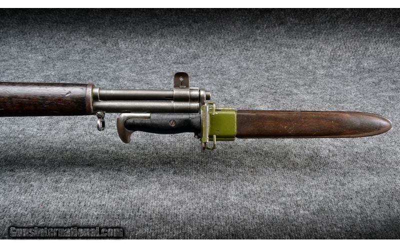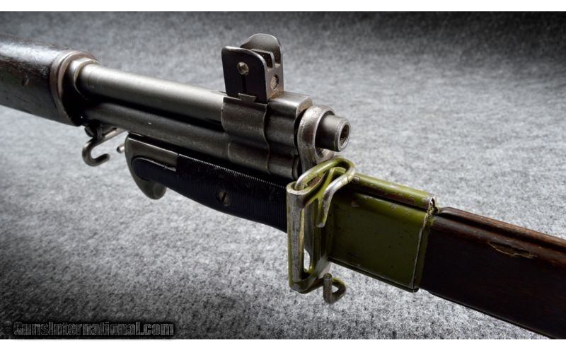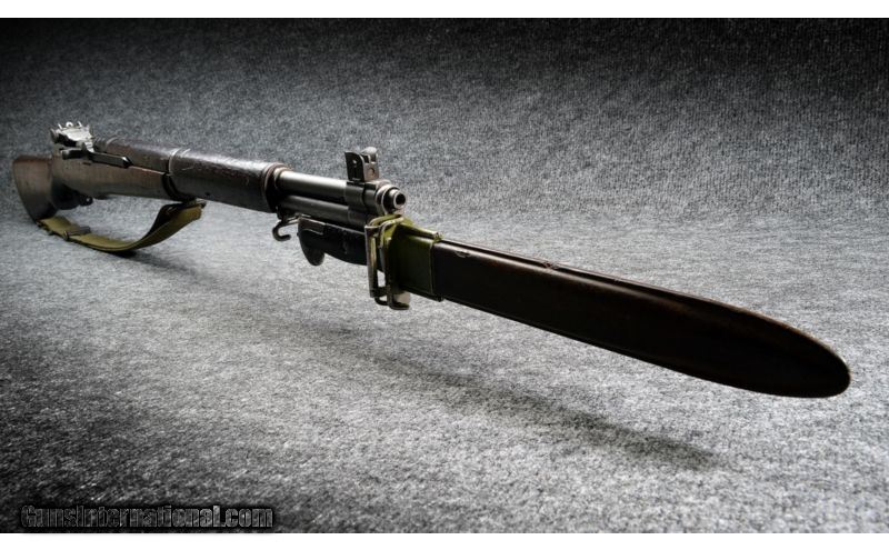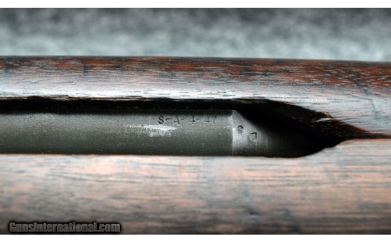 Description: "The greatest battle implement ever devised" is how General George S. Patton described the M1 service rifle issued to U.S. troops during WWII. Named after its maker, John Garand, the M1 Garand quickly earned its reputation as the best service rifle of World War II. An 8 shot, clip-fed, gas-operated semi-automatic design was the first General Issue rifle of its type. This semi-automatic design gave U.S. troops a faster firing rifle and a significant advantage over their enemies. This particular M1 Garand has a 1944 dated receiver and a 1947 barrel, not uncommon, since after the war many M1s were repaired or rebuilt. This M1 has its finish worn or faded from most of the metal with light pitting throughout; it also has multiple marks, dings, and dents in the walnut GI issued style stock and a split in the upper forend, but personally I think this wear gives the rifle a more hardened, authentic, battle-proven look. It comes with a GI style OD sling and a Danish bayonet and scabbard. Own a significant piece of world history through this juggernaut of WWII collectibles. SOLD Curio/Relic: Yes Manufacturer: Receiver dated 1944, Barrel dated 1947 Caliber Info: .30-06 Springfield Chambers: Semi-auto Metal Condition: Fair- Finish mostly worn or faded from metal, light pitting throughout Wood Condition: Fair- Multiple marks, dings, and dents, split upper forend Bore Condition: Good- Some pitting present, sharp rifling Barrels: 24 inch Triggers: 5.5 lb Stock: GI type walnut stock, Serifed P proof mark Stock Dimensions: 13 inch LOP Fore End: GI type walnut upper and lower Butt Pad: Metal butt plate with trap door Weight: 10 lb, 3 oz Sights: Adjustable rear battle sight, post blade with winged front Extras: Danish bayonet and scabbard, GI style sling Item Location: Gainesville, VA |