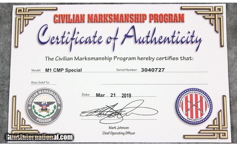Description: Civilian Marksmanship Program M1 Garand. The model is a CMP Special which consists of a new production stock and handguard set with CMP cartouche, a new production barrel and newsling. Receiver and most other parts are refinished USGI, but some parts may be new manufacture. .30-06 Springfield SOLD Metal Condition: Very Good/Good condition Wood Condition: Excellent Condition Bore Condition: Excellent Condition Barrels: 24" Barrel Weight: 10 lbs. Item Location: Chattanooga, TN |