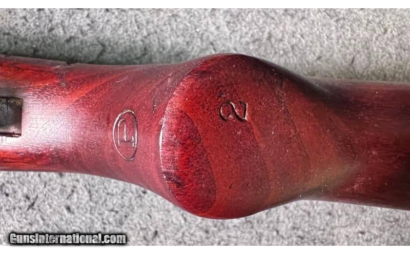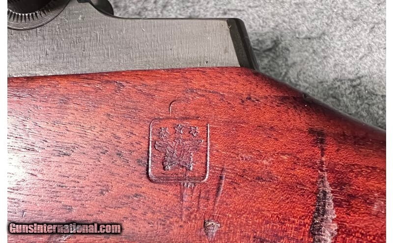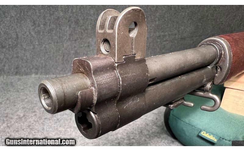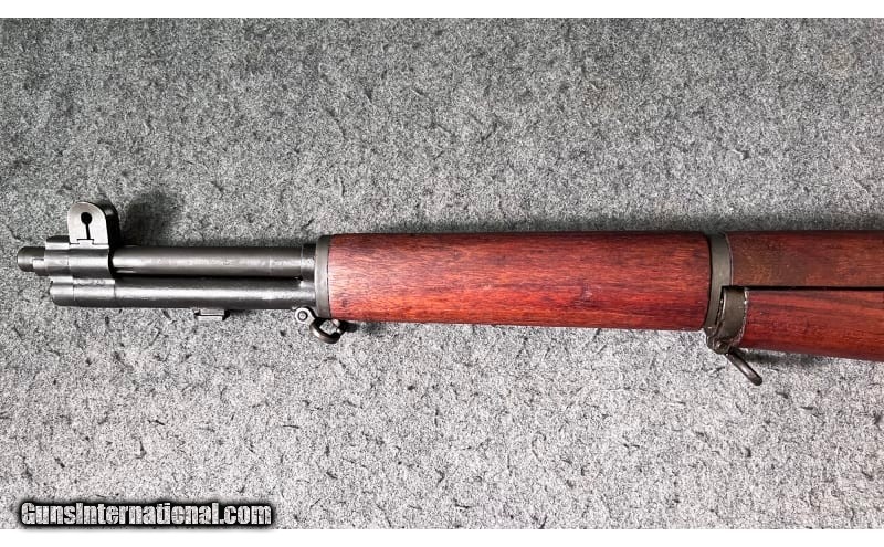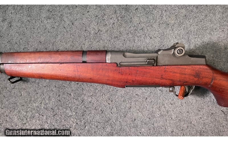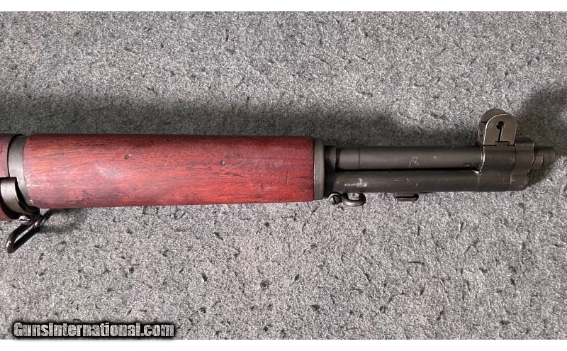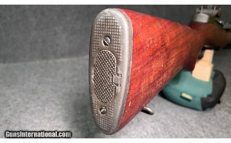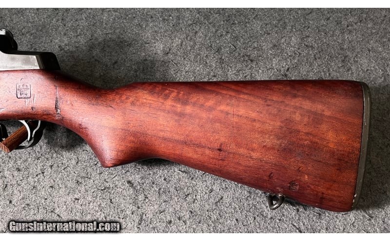 Description: This 1955 semi auto rifle is a Springfield Armory M1 Garand chambered in .30-06 Springfield. It has a fixed blade with protective sides front sight, an adjustable rear aperture peep sight, a smooth curved trigger, and a checkered steel butt plate with a trap door for cleaning supplies [cleaning kit not included]. The underside of the pistol grip is marked with a Circle-P and with a "2" at the center of the cap. The barrel has no apparent markings visible. The left side of the butt stock is stamped with an eagle emblem with several stars. The metal finish is in very good to excellent condition, with some loss around the sharp edges of the muzzle end. The wood condition is very good, with numerous marks, dings, and scrapes, but no cracks or chips are observable. The M1 Garand or M1 rifle is a semi-automatic rifle that was the service rifle of the U.S. Armed Forces during World War II and the Korean War. The rifle is chambered for the .30-06 Springfield cartridge and is named after its Canadian-American designer, John Garand. It was the first standard-issue autoloading rifle for the United States. By most accounts, the M1 rifle performed well. General George S. Patton called it "the greatest battle implement ever devised". The M1 replaced the bolt-action M1903 Springfield as the U.S. service rifle in 1936, and was itself replaced by the selective-fire M14 rifle on March 26, 1958. .30-06 Springfield SOLD Curio/Relic: Yes Metal Condition: "Metal finish is in very good to excellent condition, with some loss around the sharp edges of muzzle end Wood Condition: "Wood condition is very good, with numerous marks, dings, and scrapes, but no cracks or chip observable Bore Condition: "Bore is somewhat dull, but shows excellent rifling intact Barrels: 24 inch barrel Triggers: Smooth curved trigger Stock Dimensions: "13 inch LOP, overall length 43½ inches Butt Pad: Checkered steel butt plate with a trap door for cleaning supplies [not included] Weight: 10 lbs 7 oz Sights: "Fixed blade with protective sides front sight, adjustable rear aperture peep sight Item Location: Wichita, KS |