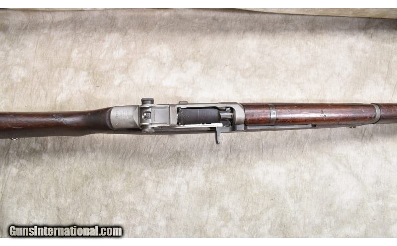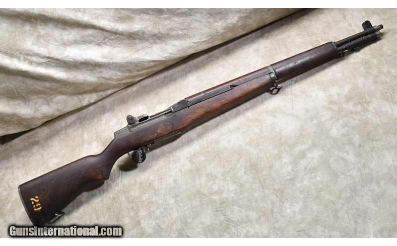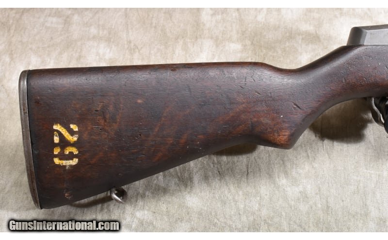 Description: Good shooter featuring clean metal, usable barrel, good stock, and it was made in 1945. .30-06 Springfield SOLD Curio/Relic: Yes Chambers: 8 rounds Metal Condition: "Good. Most metal is better than good, gas tube shows a lot of scratches. Wood Condition: "Good. Many scratches,, nicks and dents, as well as a couple of mysterious holes on the left side. Bore Condition: Dark and a bit rough. Barrels: 24 inch Triggers: Factory trigger. Stock Dimensions: 13 inch LOP Fore End: Full-length military stock with heat shield. Butt Pad: Steel plate with storage port. Weight: 9 lb - 6 oz Sights: Post and peep military sights Item Location: Rogers |