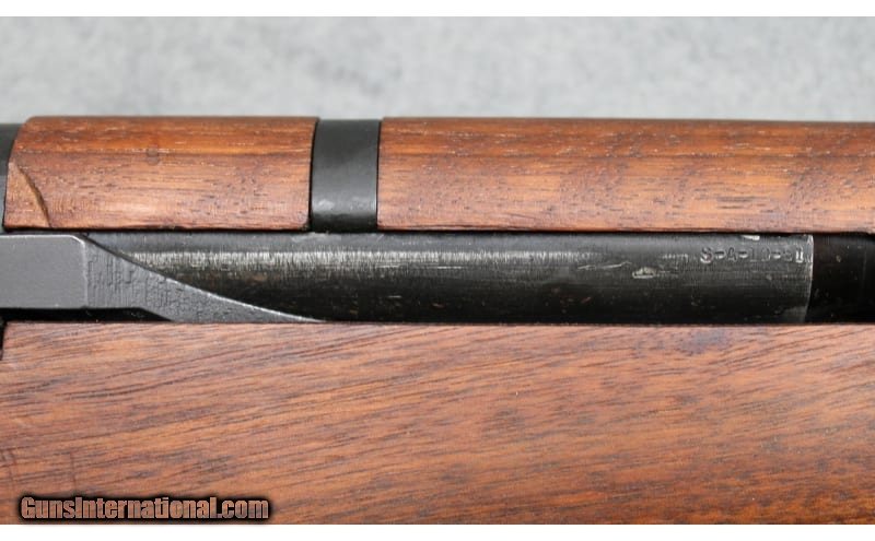 Description: U.S. Springfield Armory M1 Garand semiautomatic rifle chambered in .30-06 Springfield. November 1943 production receiver and "SA 10-51" dated barrel along with an "SA" bolt and "IHC" operating rod. Multiple manufacturer mixed small parts. Unmarked reproduction stock. Comes with a reproduction M1907 pattern leather sling. .30-06 Springfield SOLD Curio/Relic: Yes Metal Condition: "Refinished Good with Handling Marks, Pitting, and Finish Wear Wood Condition: Reproduction Very Good with Minor Handling Marks Bore Condition: Bright And Clear with No Pitting Barrels: 24 inch Item Location: Fort Worth, TX |