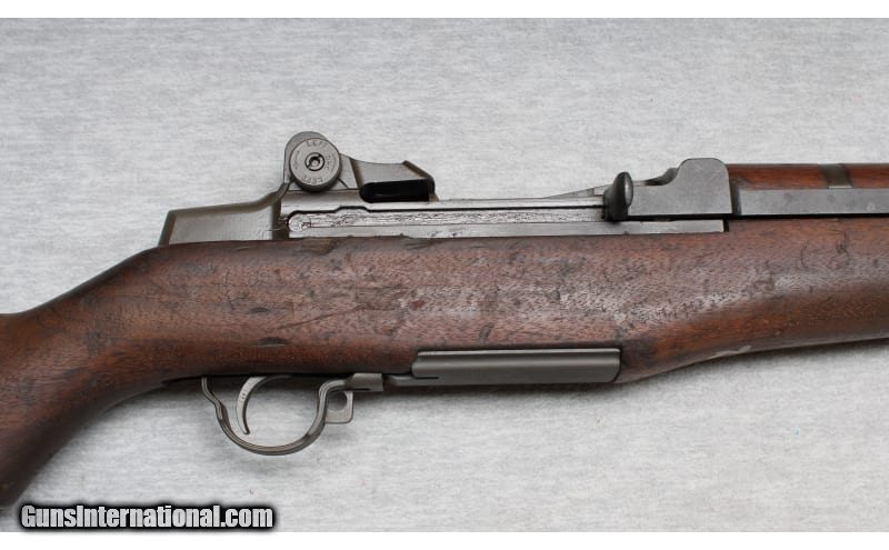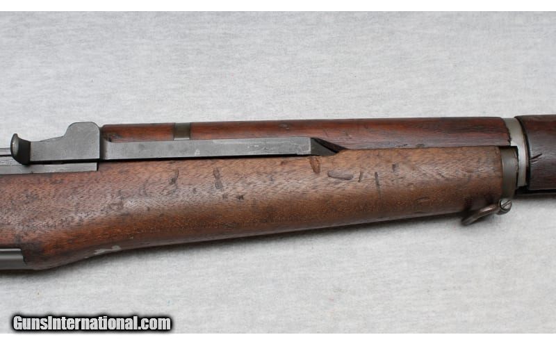 Description: Very good condition metal, good condition wood that shows considerable battle wear. Springfield Model U.S. Rifle M1 Garand is a right-hand semi-auto U.S. Military rifle in .30-06 Springfield. It has a 24-inch barrel. A blade front sight with protective sides and an adjustable aperture rear sight. The butt stock is a smooth hardwood pistol grip. The forearm is smooth two-piece hardwood. HRA Barrel dated 1-53. MW: 2+, TE: 8. .30-06 Springfield SOLD Curio/Relic: Yes Chambers: Semi auto Metal Condition: Very good Wood Condition: Good Bore Condition: Bright Barrels: 24 Triggers: Standard military trigger Stock Dimensions: 13" LOP Fore End: Wood handguards Butt Pad: Metal butt plate Sights: Standard military adjustable iron sights Item Location: La Vista, NE |