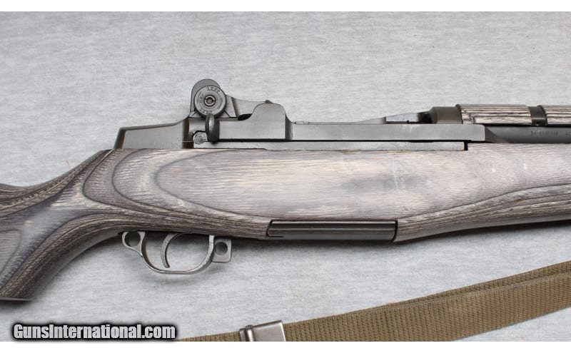 Description: Excellent condition, light finish wear, few small scratches. Grey laminated aftermarket hardwood stock, 24" SA barrel dated 10-63 The M1 Garand or M1 rifle is a semi-automatic rifle that was the service rifle of the U.S. Army during World War II and the Korean War. The rifle is chambered for the .30-06 Springfield cartridge and is named after its Canadian-American designer, John Garand. It was the first standard-issue autoloading rifle for the United States. By most accounts, the M1 rifle performed well. General George S. Patton called it "the greatest battle implement ever devised". The M1 replaced the bolt-action M1903 Springfield as the U.S. service rifle in 1936, and was itself replaced by the selective-fire M14 rifle on March 26, 1958. .30-06 Springfield SOLD Chambers: Semi auto Metal Condition: Excellent Wood Condition: Excellent Bore Condition: Bright Barrels: 24 Triggers: Standard military trigger Stock Dimensions: 13" LOP Fore End: Wood hand guards Butt Pad: Metal butt plate Sights: Adjustable military iron sights Item Location: La Vista, NE |