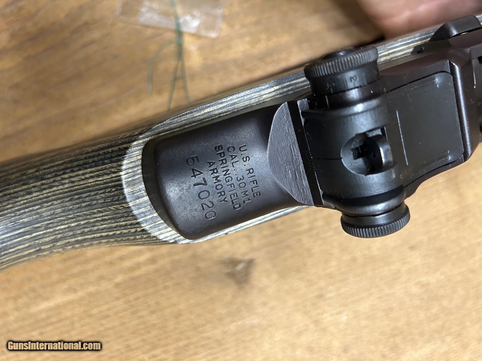 Description: 1942 Springfied Armory M1 Garand 30-06, S/N 547020, 24 inch barrel, Great condition, aftermarket green laminated stock, SA marked trigger housing, SA marked hammer, barrel date 4/56. SOLD Rifle Caliber: .30-06 Springfield Manufacturer: Springfield Armory Model: M1 Garand Serial Number: 547020 Barrel Length: 24 inches |