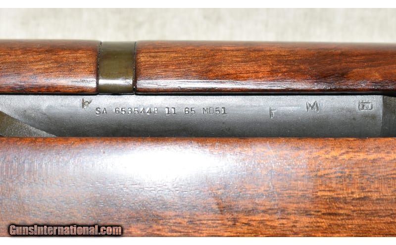 Description: The Serial Number of this rifle puts manufacture date 03/1945. The barrel is also Springfield manufacture from 11/1965. The metal is in very good shape with few defects. The wood looks really good, with few defects, but it has been sanded and refinished with a glossy lacquer. It will make a great display piece or shooter. .30-06 Springfield SOLD Curio/Relic: Yes Chambers: 8 rounds Metal Condition: Very good. Wood Condition: Very good Bore Condition: Shiny and bright.. Barrels: "24 inches, Springfield 11/1965 Triggers: Factory trigger. Stock Dimensions: LOP: 13 inches Fore End: "Wood one-piece stock, wood heat shield. Butt Pad: Steel plate with storage post. Weight: 10 lb - 1 oz Sights: Military guarded post and peep. Item Location: Rogers |